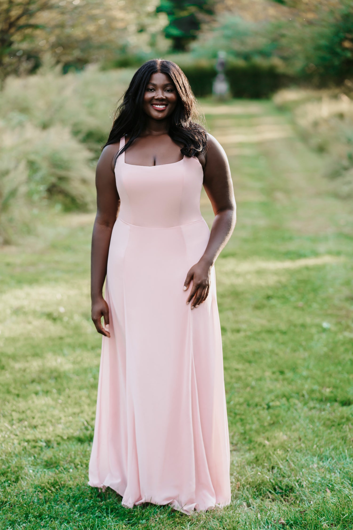 The Allure Bridesmaids 1695 gown is a simple, elegant, and timeless addition to our bridesmaids collection. Dreamy chiffon softens the clean lines of this A-line silhouette, featuring a subtly squared neckline. The vast range of colors lets you find the perfect option to match your theme and help your wedding party shine. Visit your closest retailer today to see the Allure Bridesmaids 1695 dress options for yourself and find the perfect gowns for your big day. Read Less