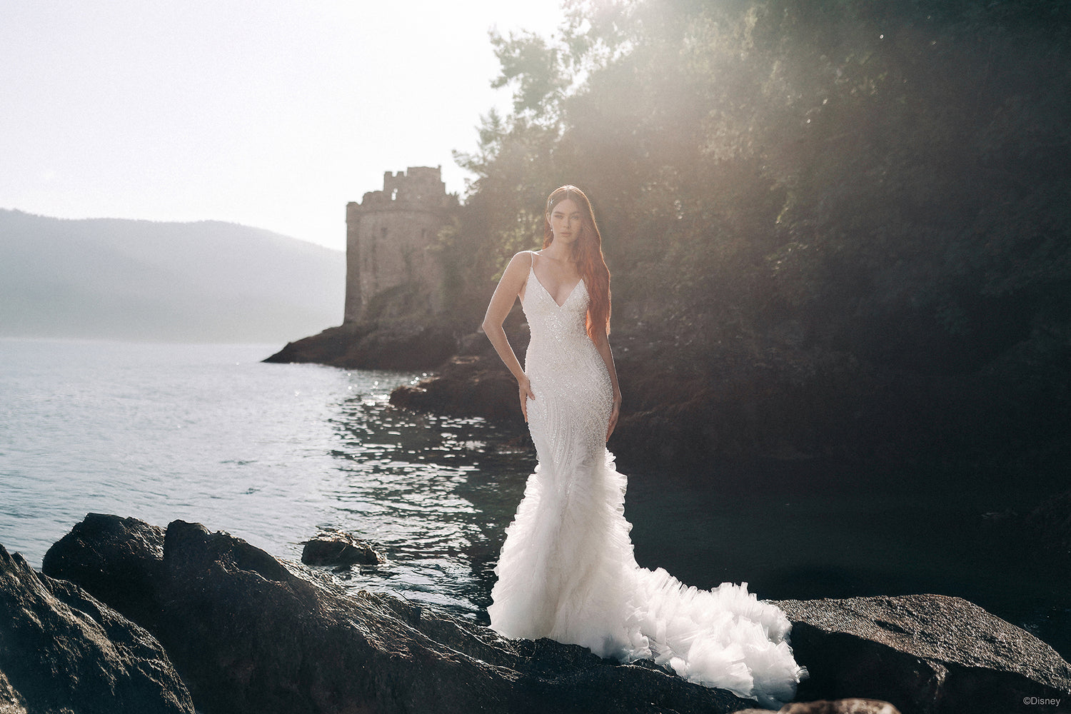 Dive into the Disney Fairy Tale Weddings Ariel Collection, featuring ocean-inspired details,...