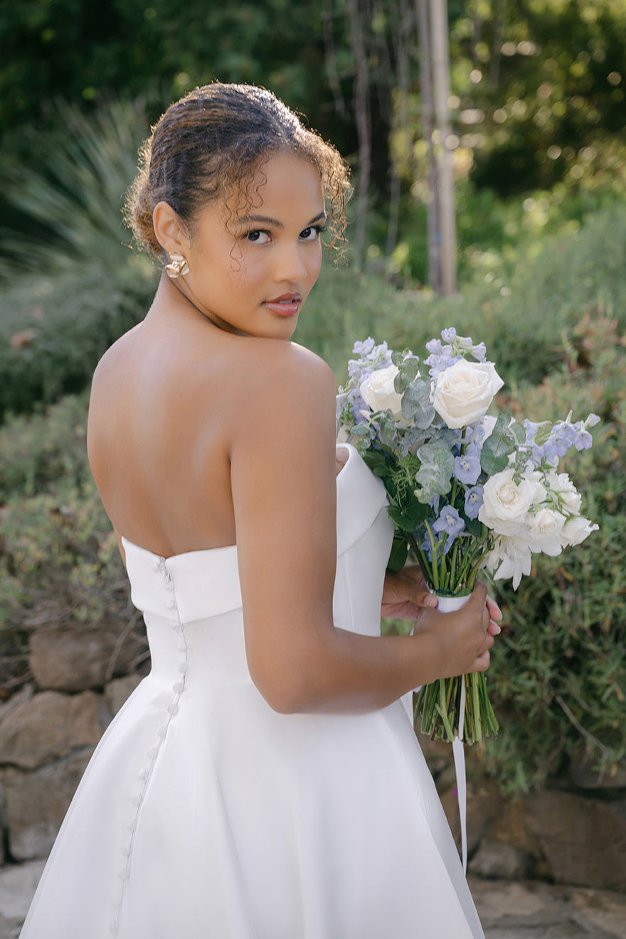 Soft and romantic in Periwinkle, Style R3715 is a strapless Mikado ballgown with a clean straight neckline, structured bodice, and full skirt that creates an elegant, timeless silhouette. Crafted in luminous Mikado, this gown is also available in Sea Glass and classic Ivory for a modern... Read More