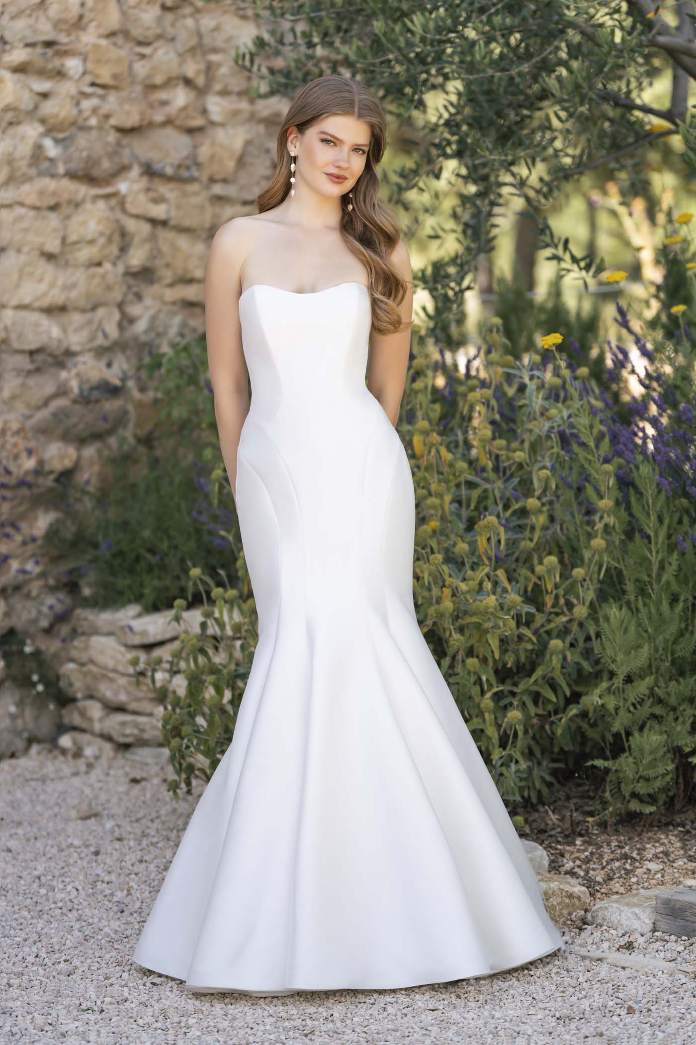 Elegant and understated, this chic Mikado sheathgown features a subtle strapless sweetheart neckline.