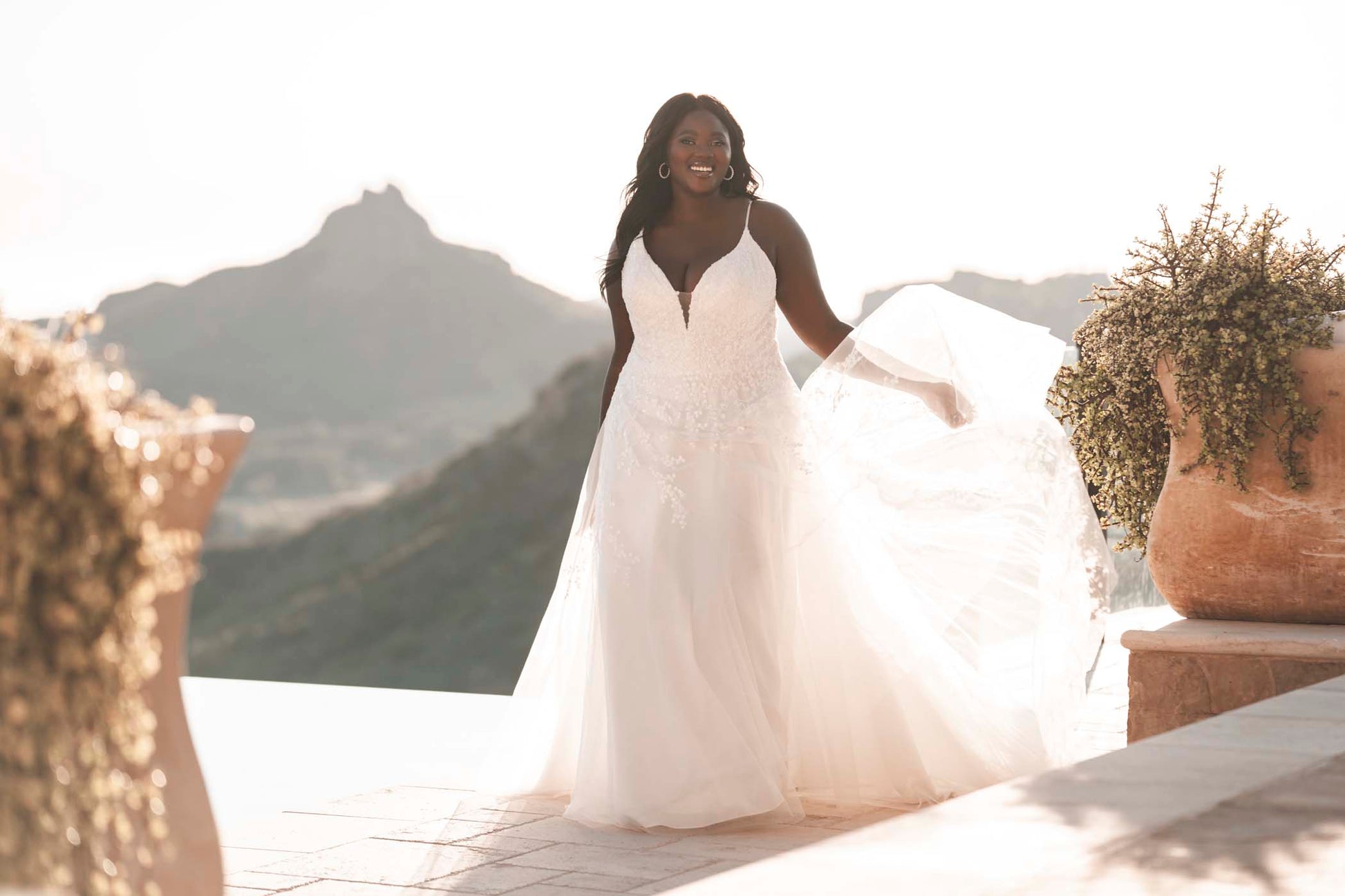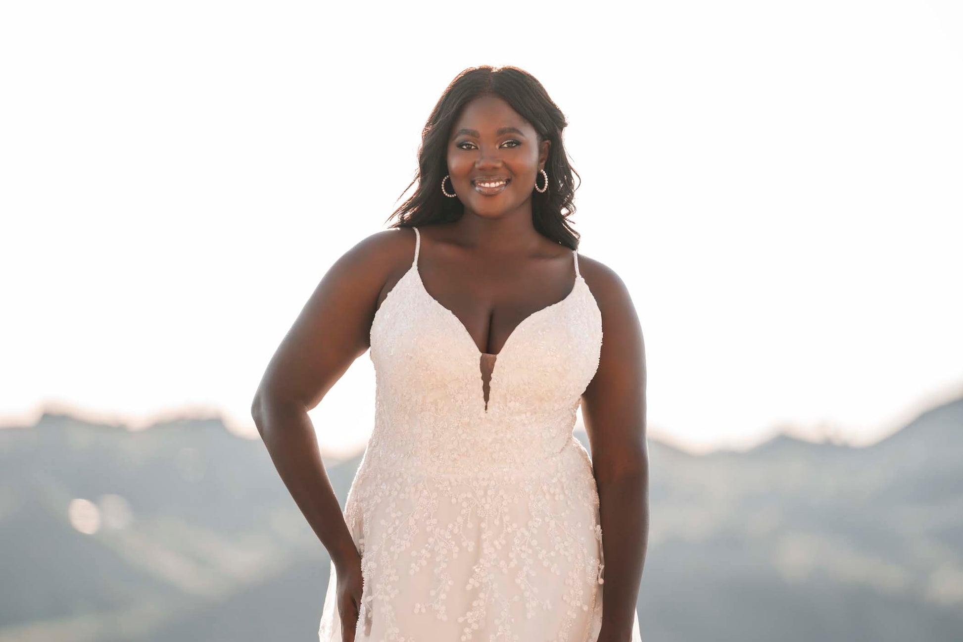 Before you schedule a bridal appointment or order your dress, it’s important to know that wedding dress size charts will vary based on country and designer, and even by silhouette. Wedding size charts often to not follow the typical measurements of ready-to-wear sizes, so don’t be alarmed if you measure a size different than your usual dress size. Please consult with an authorized Allure Bridals retailer before ordering your dress to guarantee the perfect fit for your wedding day.