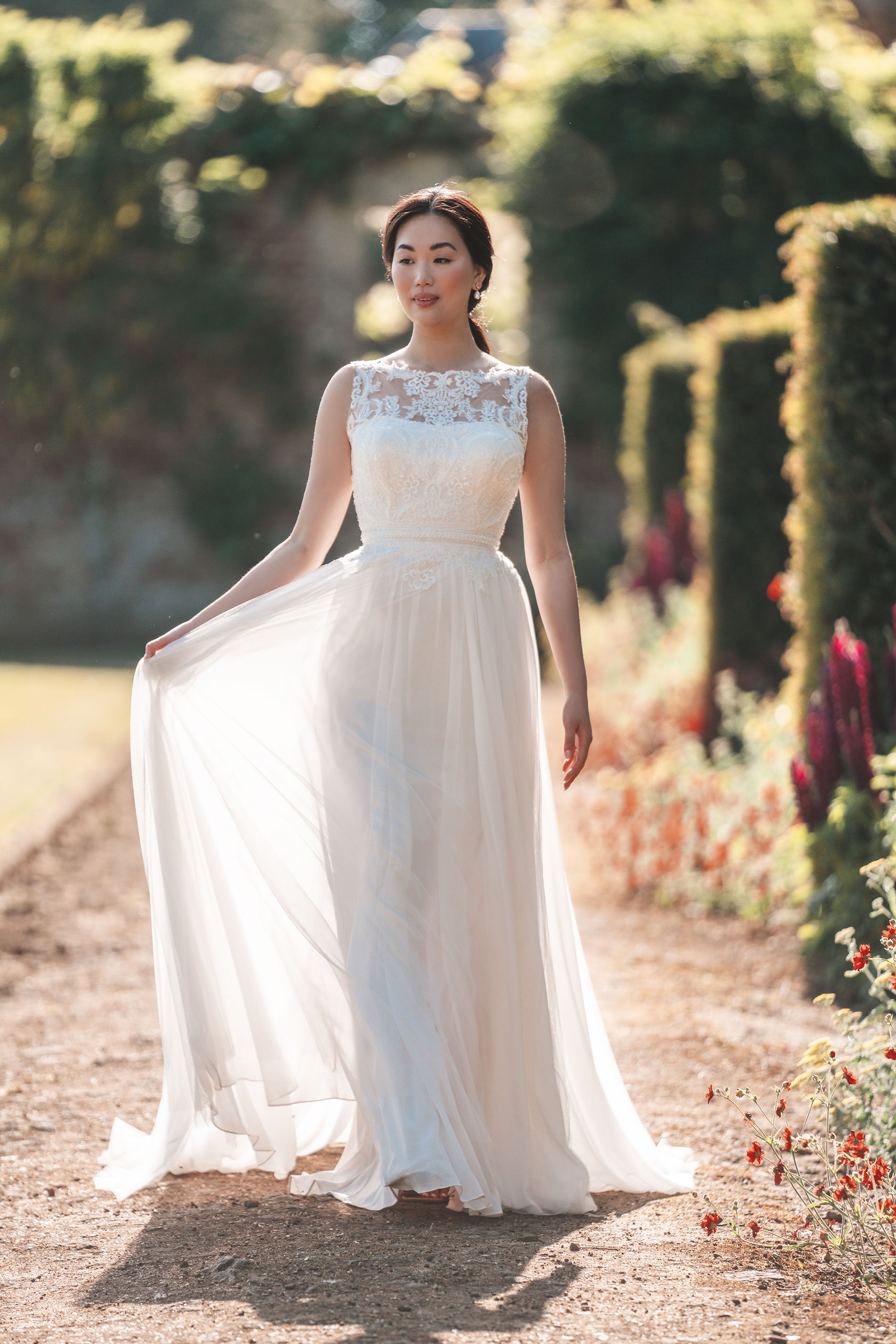Before you schedule a bridal appointment or order your dress, it’s important to know that wedding dress size charts will vary based on country and designer, and even by silhouette. Wedding size charts often to not follow the typical measurements of ready-to-wear sizes, so don’t be alarmed if you measure a size different than your usual dress size. Please consult with an authorized Allure Bridals retailer before ordering your dress to guarantee the perfect fit for your wedding day.
