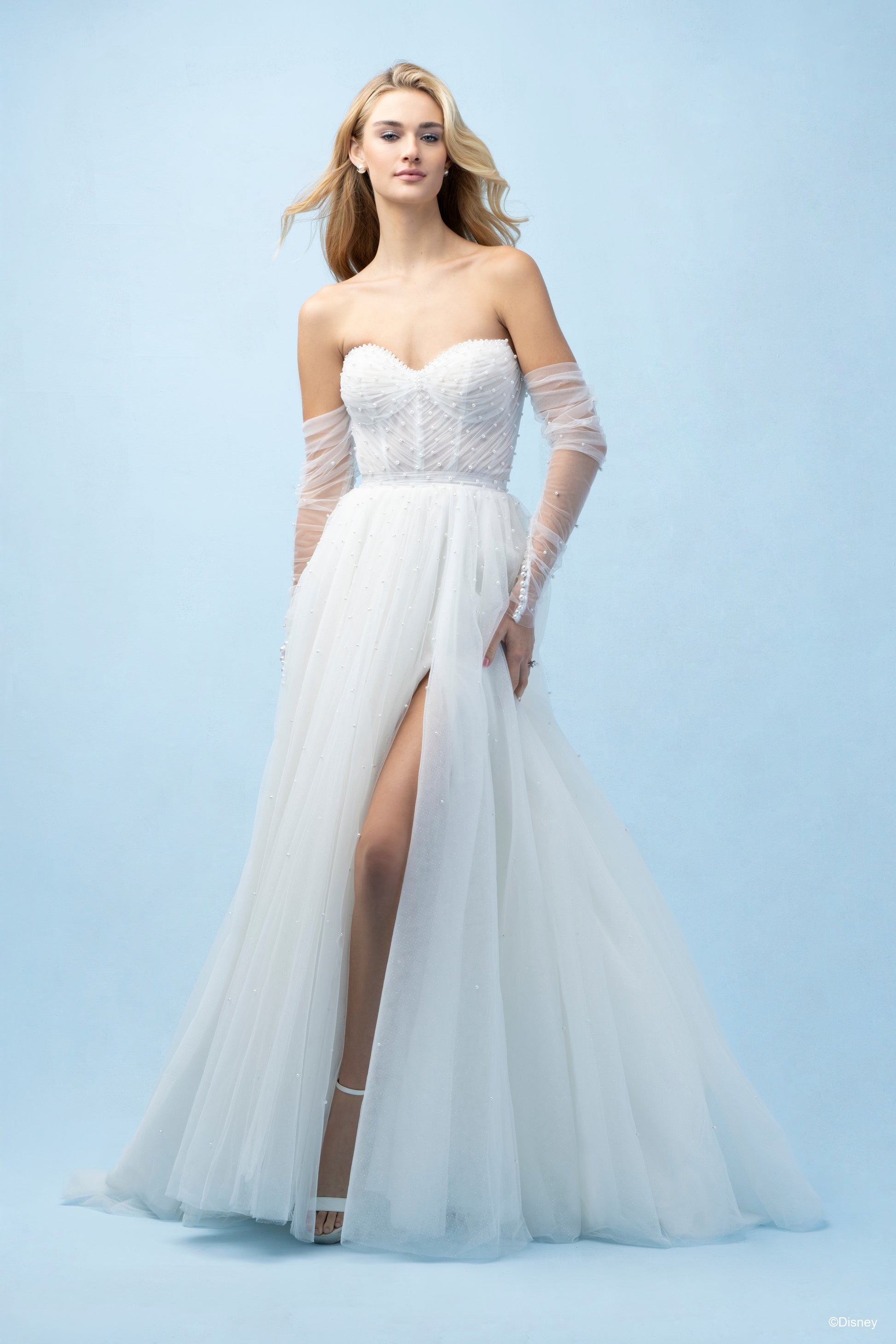 Add an extra layer of enchantment to your Ariel-inspired gown with these detachable, gathered long sleeves. Crafted from delicate tulle and adorned with shimmering pearl embellishments, these sleeves echo the gentle ebb and flow of ocean waves. Perfect for brides seeking a versatile, romantic look, these sleeves allow you to transform your style from ceremony to reception, bringing Ariel’s story of courage and love to life with every graceful movement. Read Less