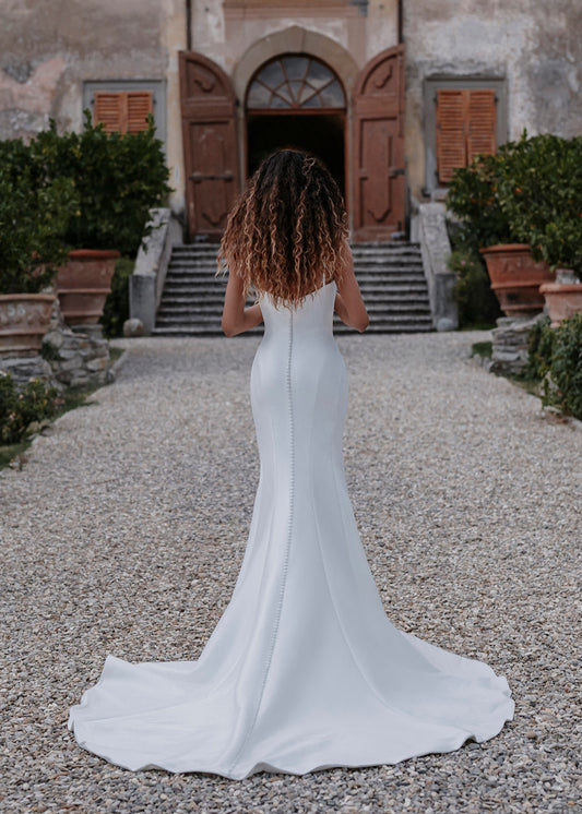 Stretch Mikado ensures Lalia's simple silhouette is both striking and comfortable.