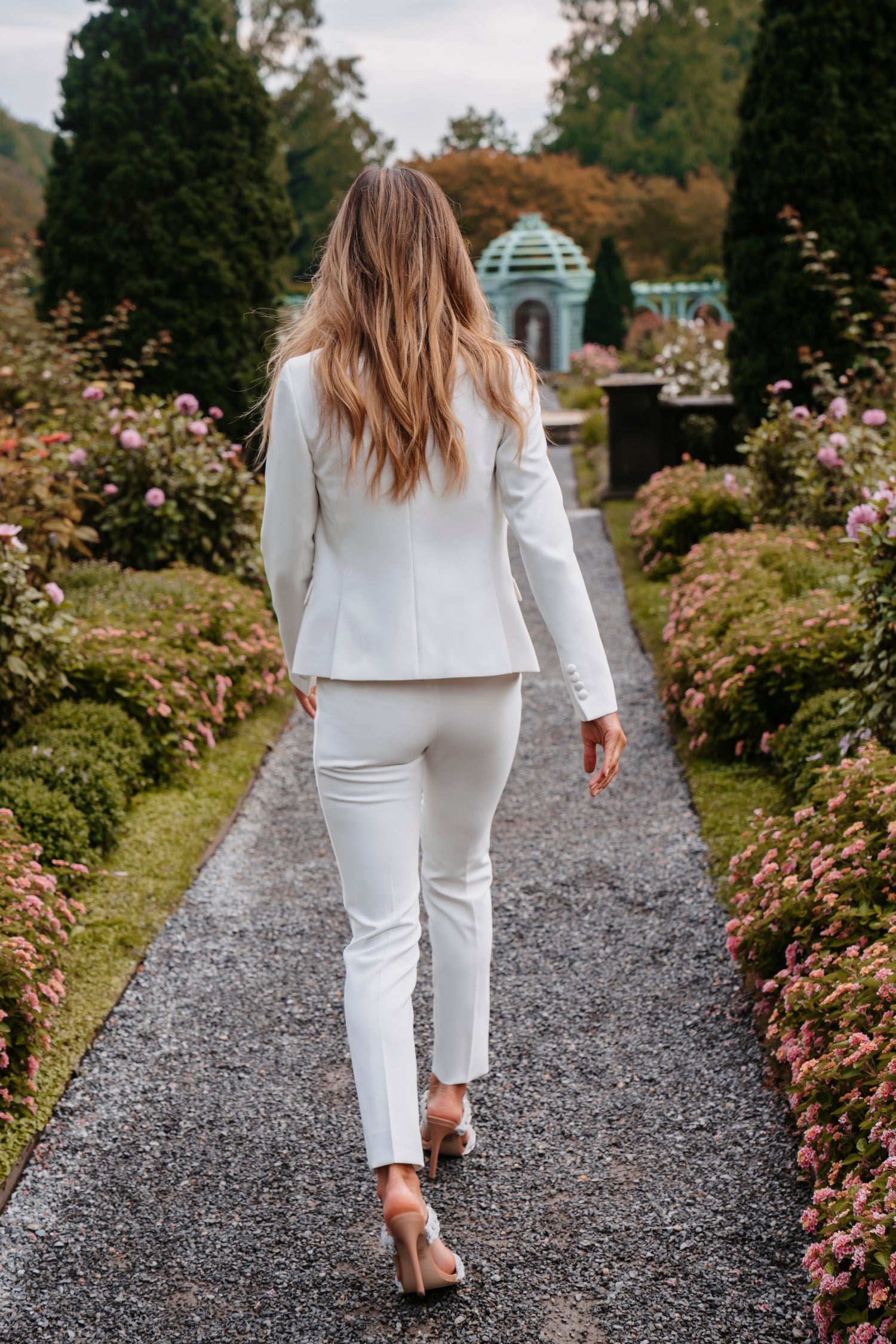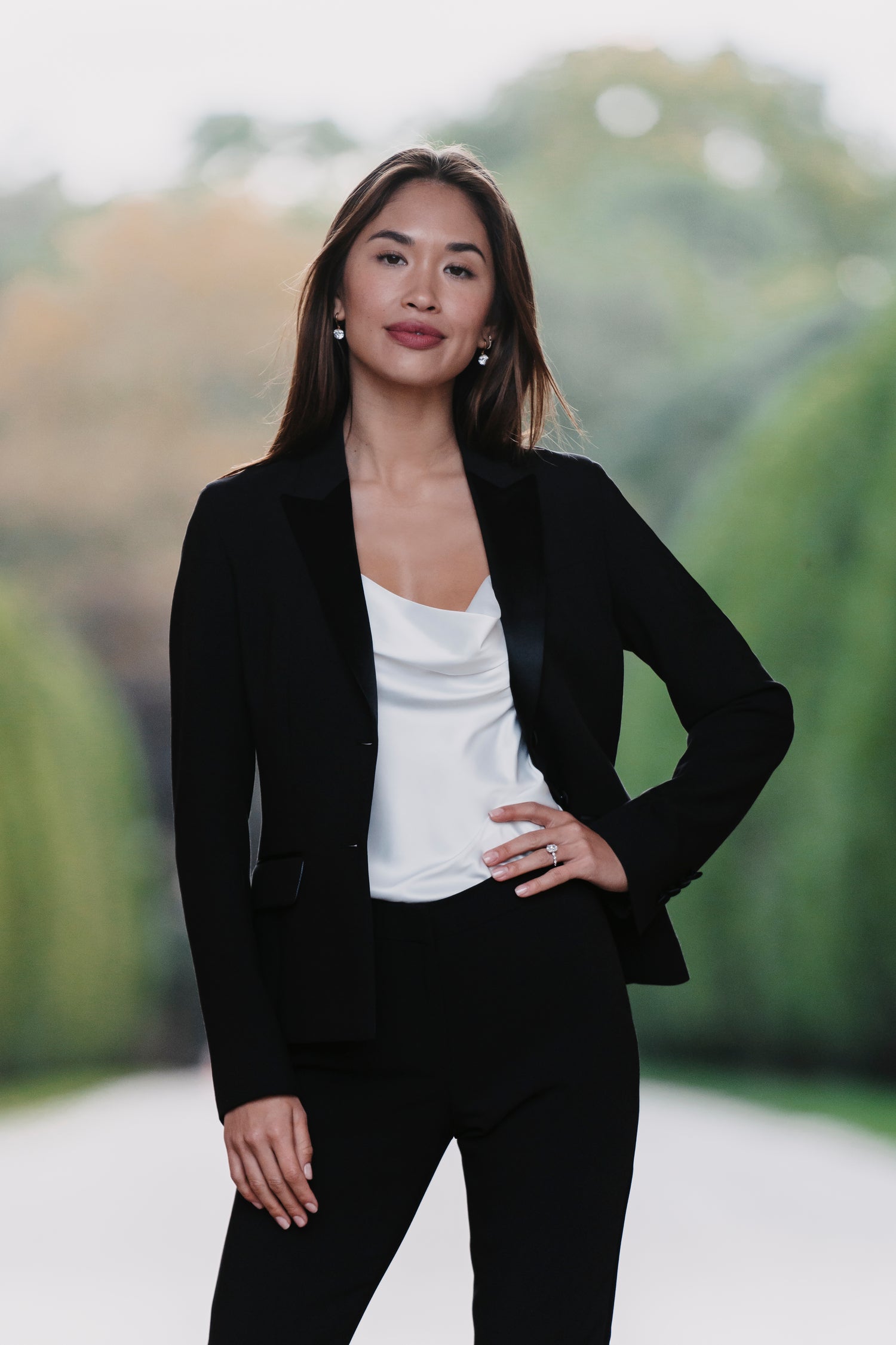 While many brides wear a dress for all their wedding-centric events, it isn’t the only clothing option. After all, this is your day, and you should wear an outfit that you love! Our women’s cropped tuxedo jacket is classy and stylish, giving you that bridal-ready look. From the rehearsal dinner to engagement photos to the after-party and the aisle, this tuxedo pant, jacket, and paired with our corset top is sure to make a statement. Use our Find a Retailer page to view this women’s cropped tuxedo jacket in-person and to try it on! Read Less