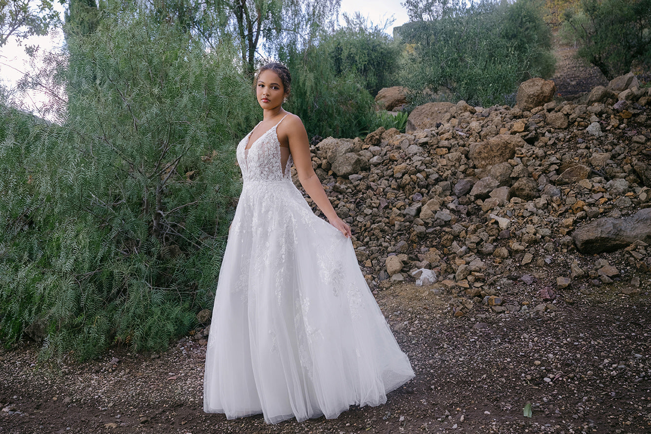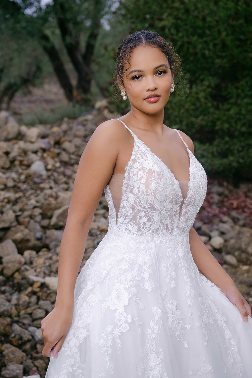 Bevor Sie einen Anprobetermin für das Brautkleid vereinbaren oder Ihr Kleid bestellen, ist es wichtig zu wissen, dass die Größentabellen für Hochzeitskleider je nach Land und Designer sowie sogar je nach Silhouette variieren. Die Größentabellen für Hochzeitskleider folgen oft nicht den typischen Maßangaben der Konfektionsgrößen, also seien Sie nicht alarmiert, wenn Sie eine andere Größe messen als Ihre gewohnte Kleidergröße. Bitte konsultieren Sie einen autorisierten Einzelhändler von Allure Bridals, bevor Sie Ihr Kleid bestellen, um die perfekte Passform für Ihren Hochzeitstag zu garantieren.