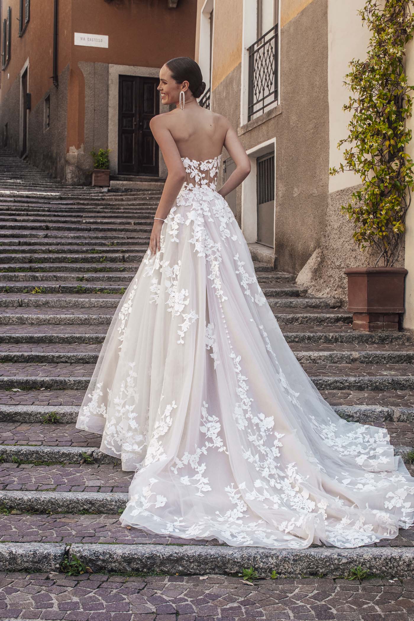 Finished with a pair of removable puffed tulle sleeves, Harper is an absolute dream dress, with lace overlaid against a sparkling tulle skirt. This Madison James MJ1005 gown is also available with detachable sleeves MJ1005SL sold separately. Shop both gown and detachable sleeves when you search for your local Madison James retailer today. Read Less