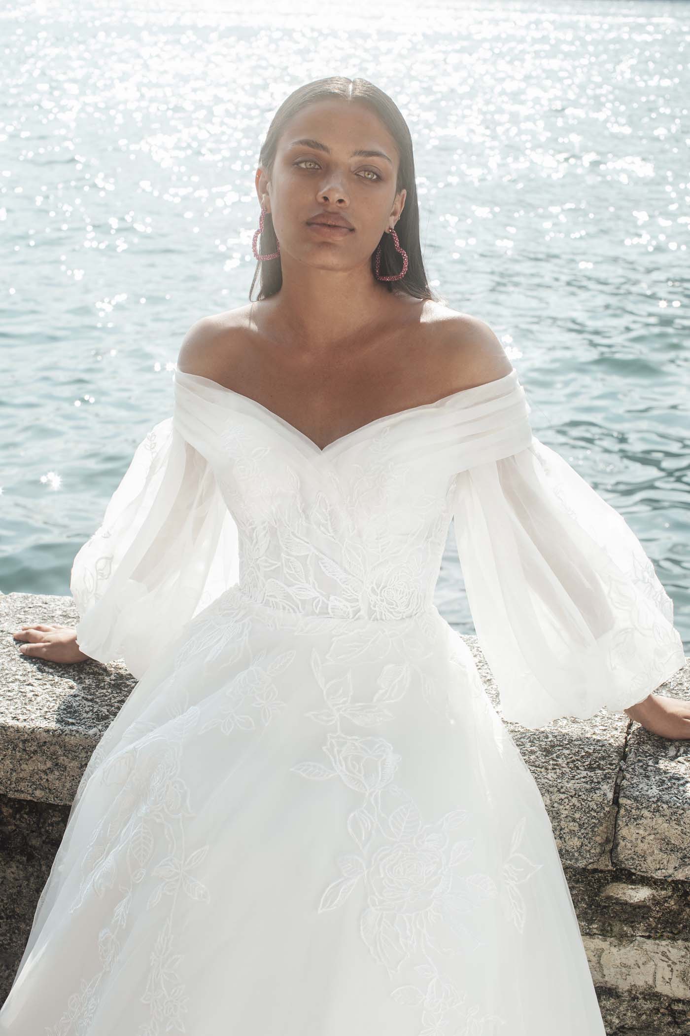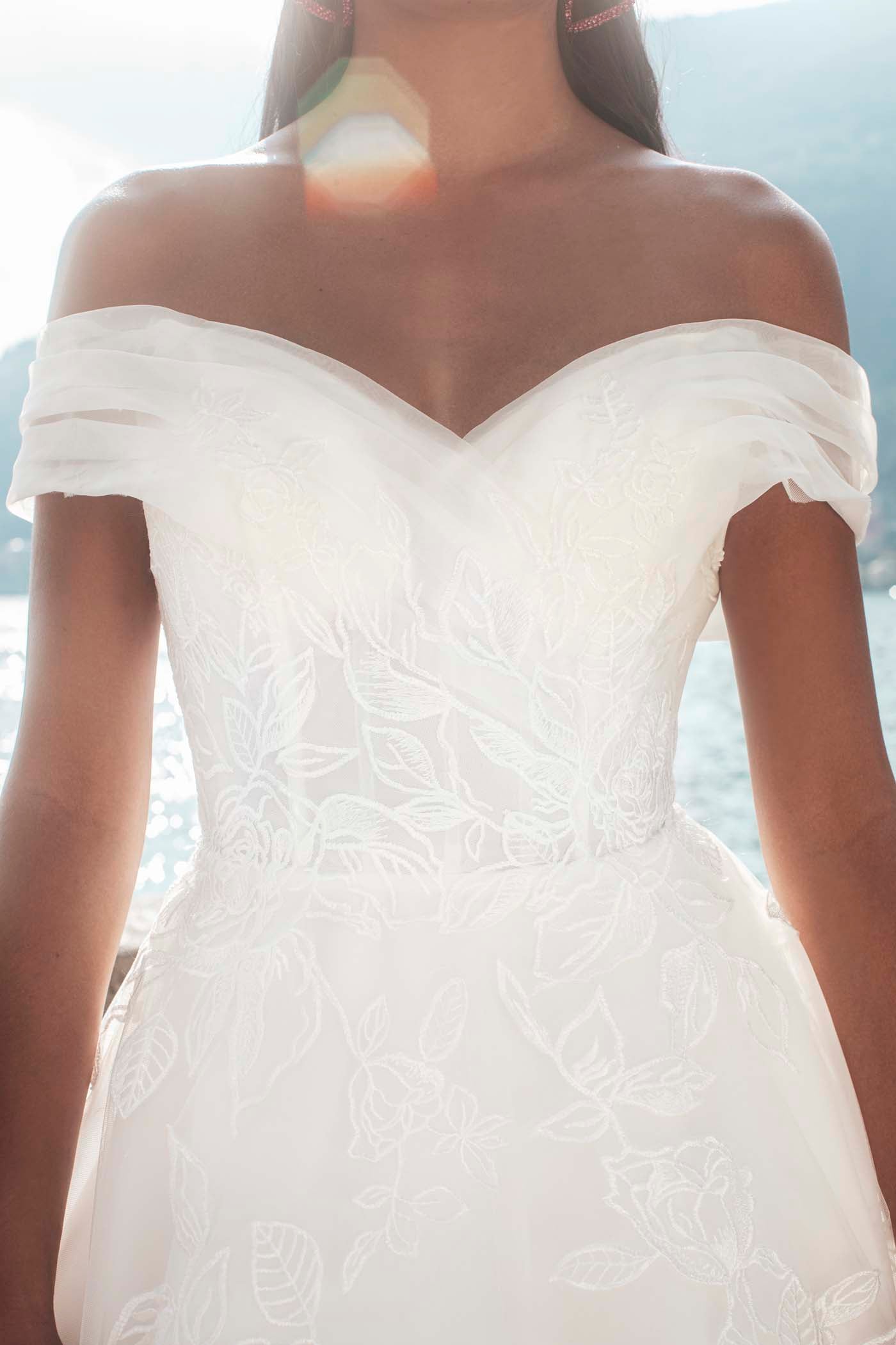 Stunning, voluminous tulle, alternating with sheer organza, gives a peek at the matte lace trailing down Haylee's off-shoulder ballgown silhouette. Detachable organza sleeves are a gorgeous addition. This Madison James MJ1008 gown is also available with detachable sleeves MJ1008SL sold separately. Shop both gown and detachable sleeves when you search for your local Madison James retailer today. Read Less