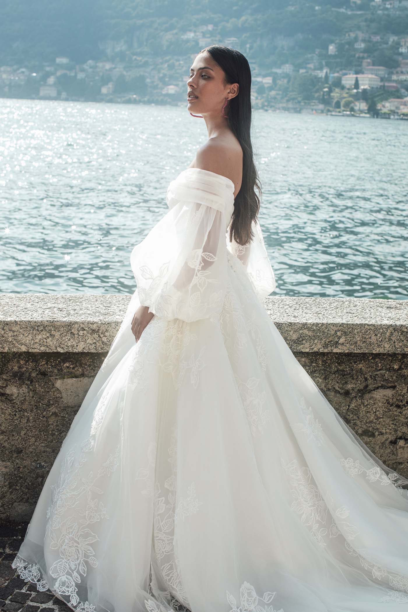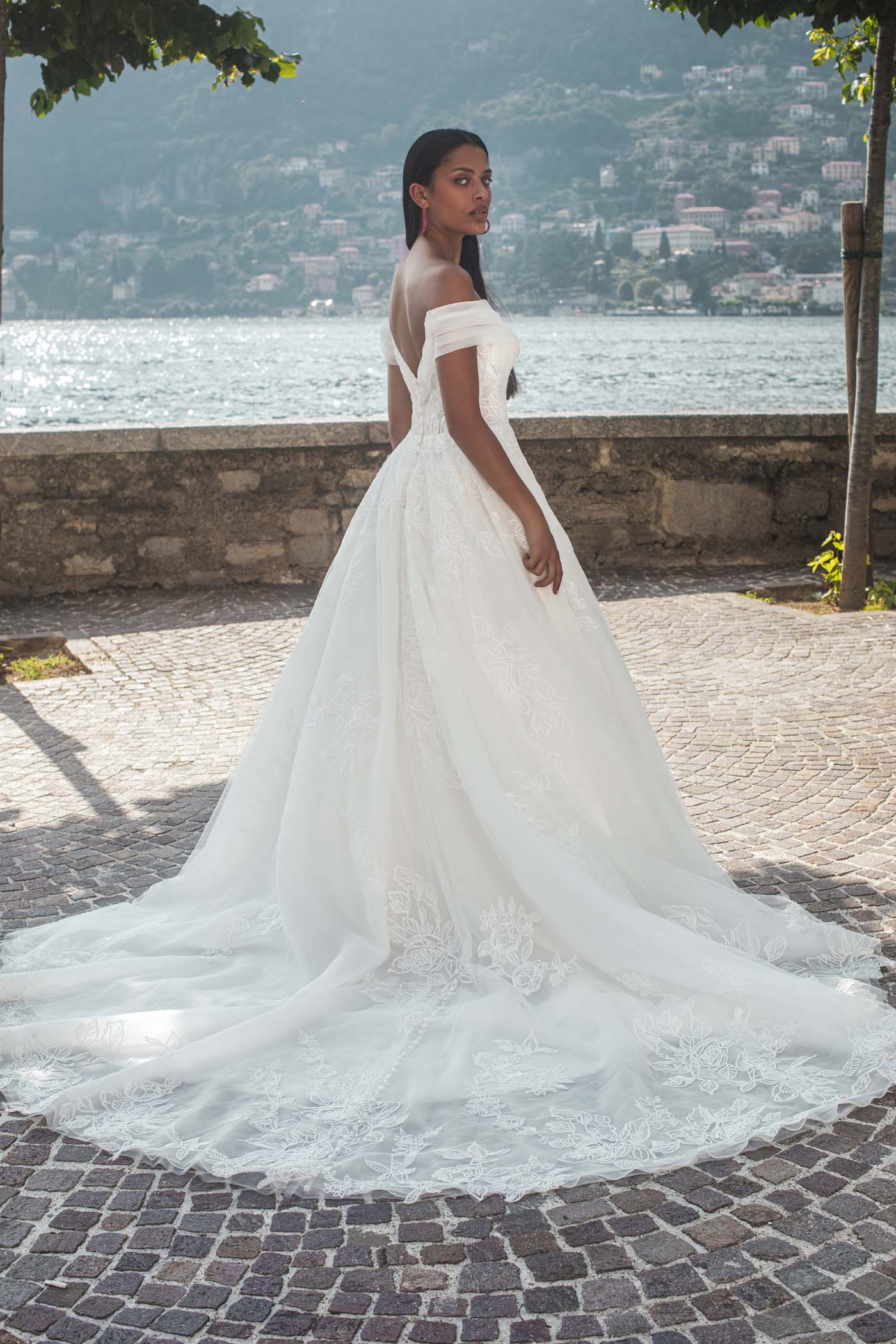 Stunning, voluminous tulle, alternating with sheer organza, gives a peek at the matte lace trailing down Haylee's off-shoulder ballgown silhouette. Detachable organza sleeves are a gorgeous addition. This Madison James MJ1008 gown is also available with detachable sleeves MJ1008SL sold ... Read More