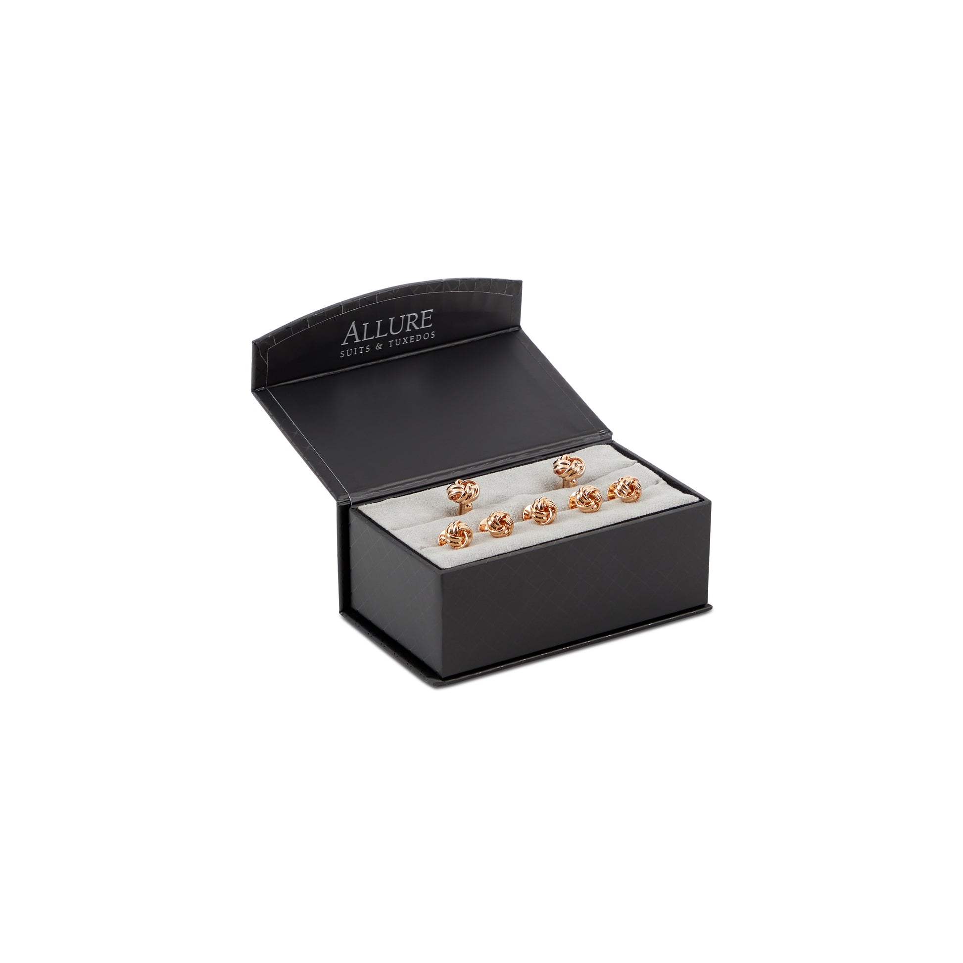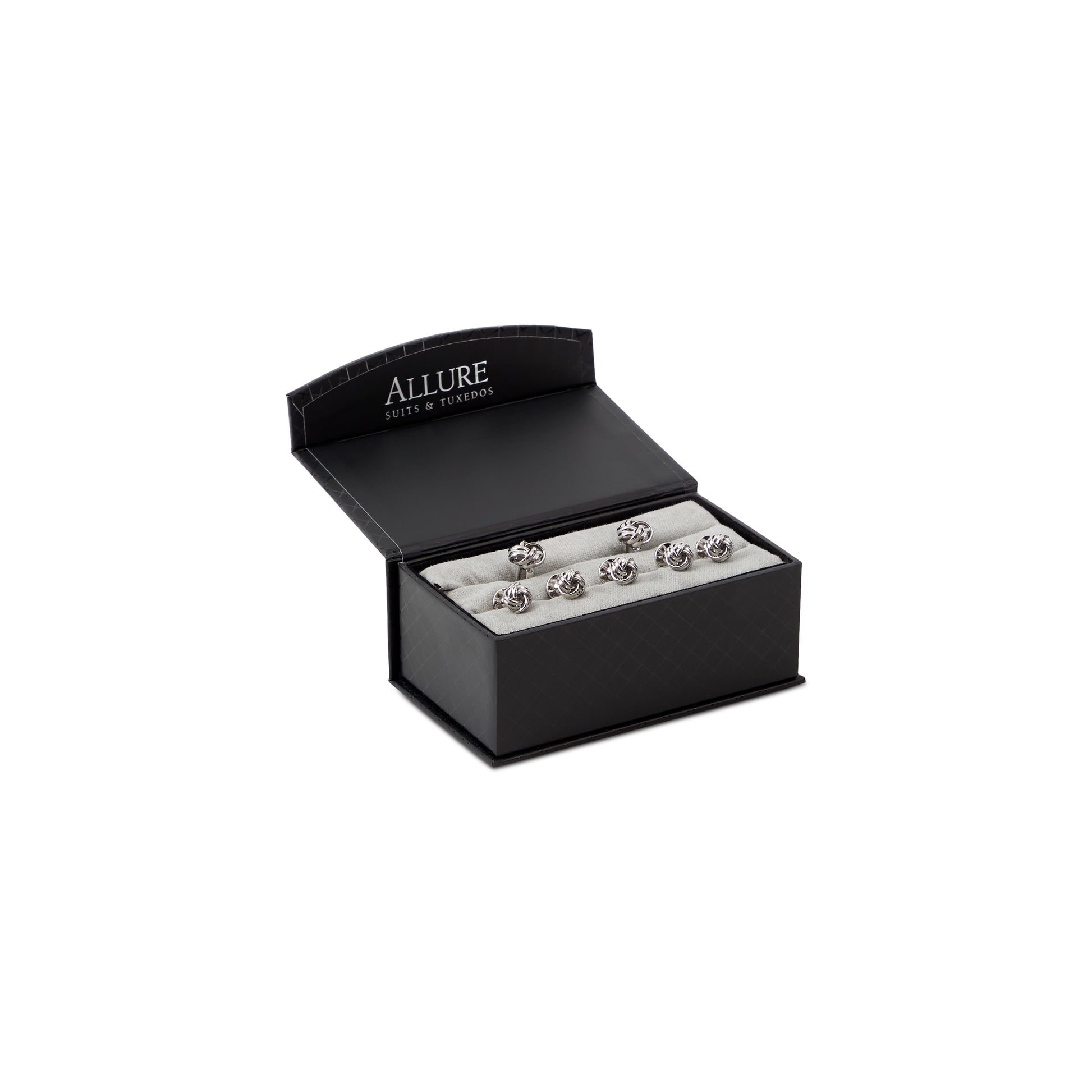 These Knot Cufflinks, available in both silver and gold finishes, feature a timeless and elegant design that adds a refined touch to any outfit. The intricate knot shape exudes sophistication, making them perfect for both formal and semi-formal occasions. Also offered in a 5-Stud Cufflink Set, they provide a coordinated and polished look for those who appreciate classic style with a modern twist. Read Less