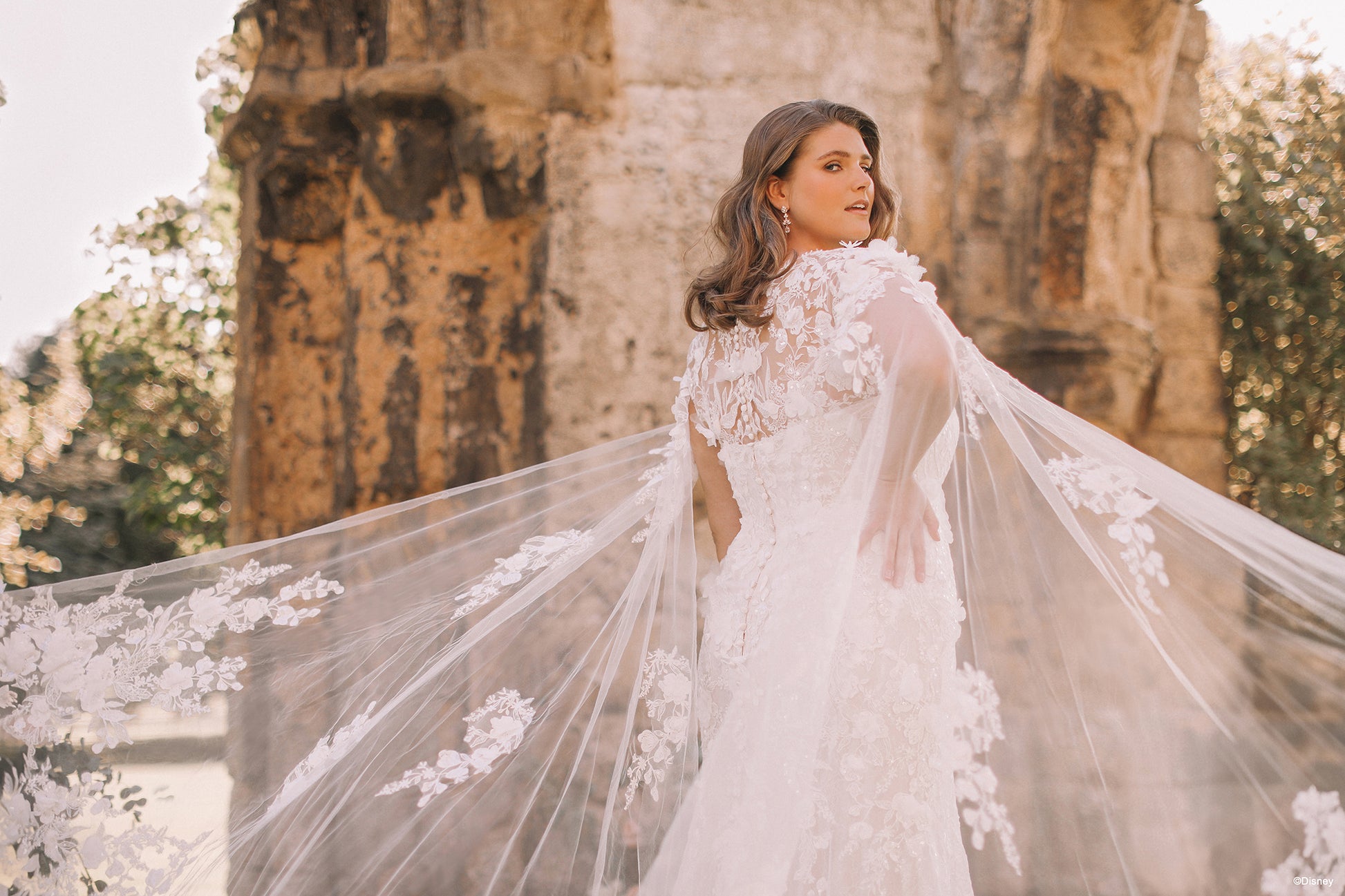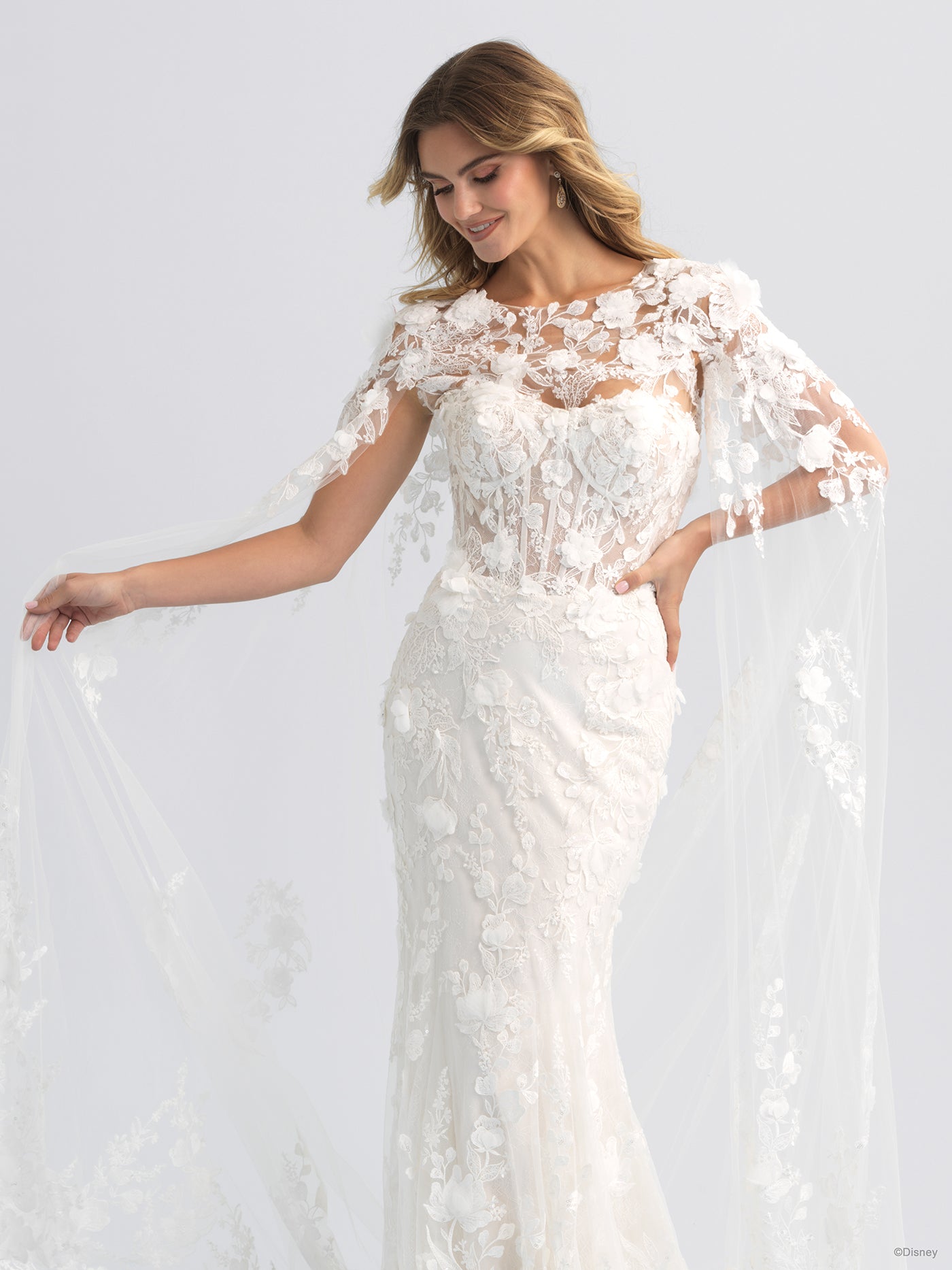 A detachable train of floral lace, inspired by Disney's Aurora.