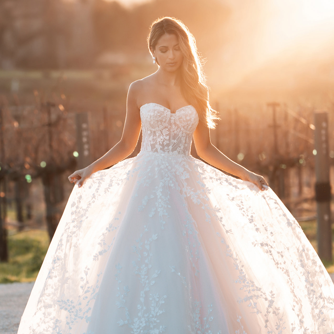 Before you schedule a bridal appointment or order your dress, it’s important to know that wedding dress size charts will vary based on country and designer, and even by silhouette. Wedding size charts often to not follow the typical measurements of ready-to-wear sizes, so don’t be alarmed if you measure a size different than your usual dress size. Please consult with an authorized Allure Bridals retailer before ordering your dress to guarantee the perfect fit for your wedding day.