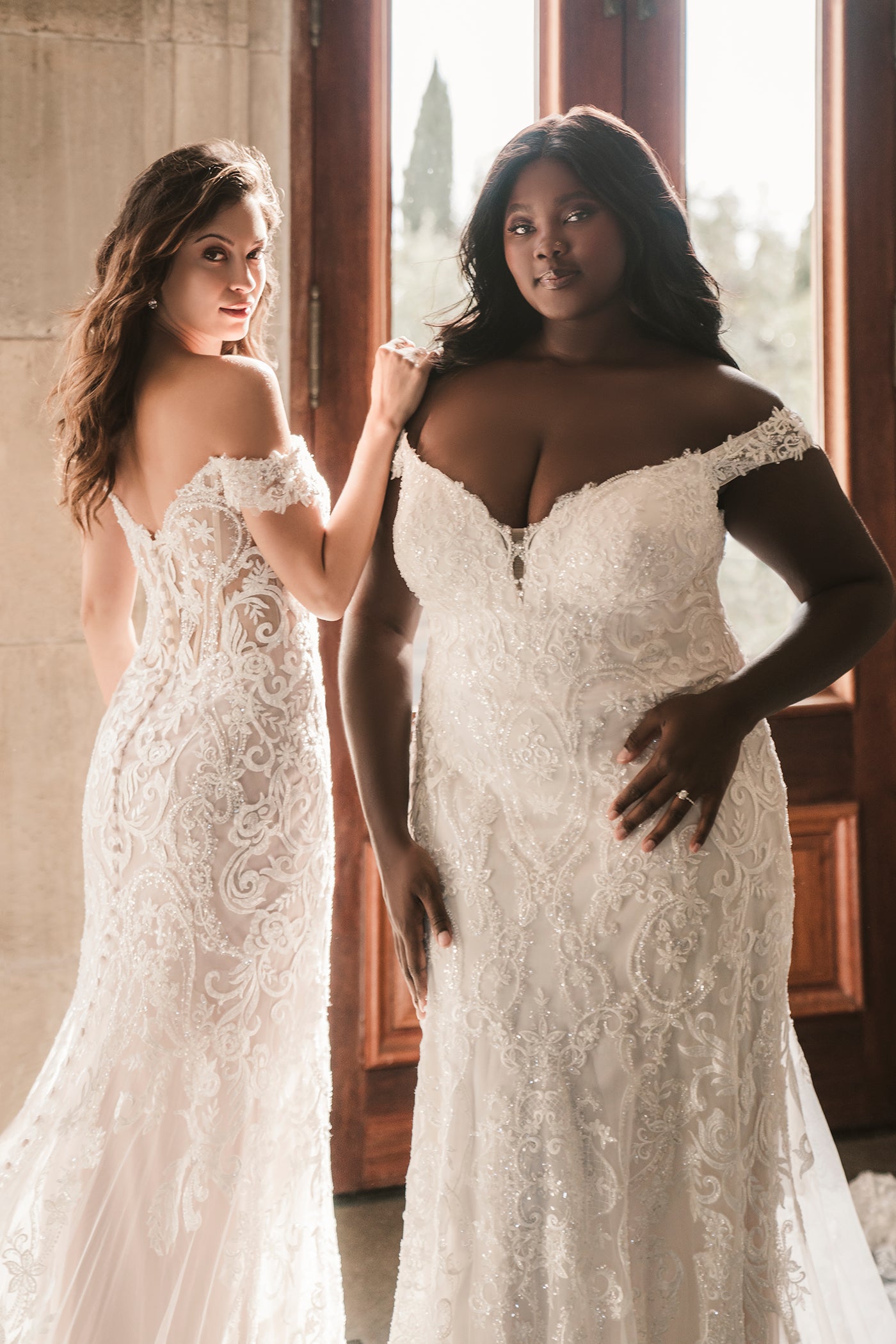 Before you schedule a bridal appointment or order your dress, it’s important to know that wedding dress size charts will vary based on country and designer, and even by silhouette. Wedding size charts often to not follow the typical measurements of ready-to-wear sizes, so don’t be alarmed if you measure a size different than your usual dress size. Please consult with an authorized Allure Bridals retailer before ordering your dress to guarantee the perfect fit for your wedding day.