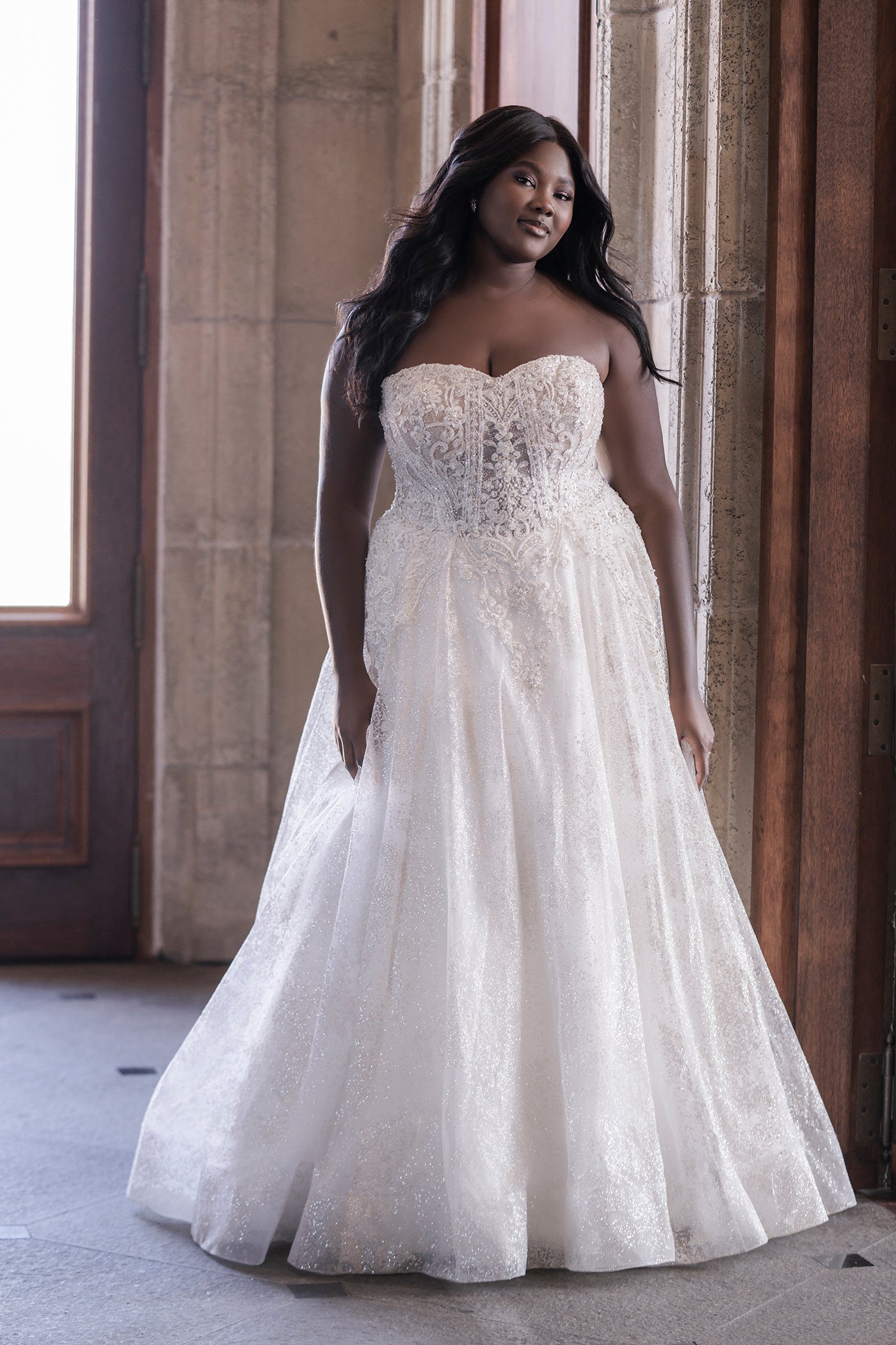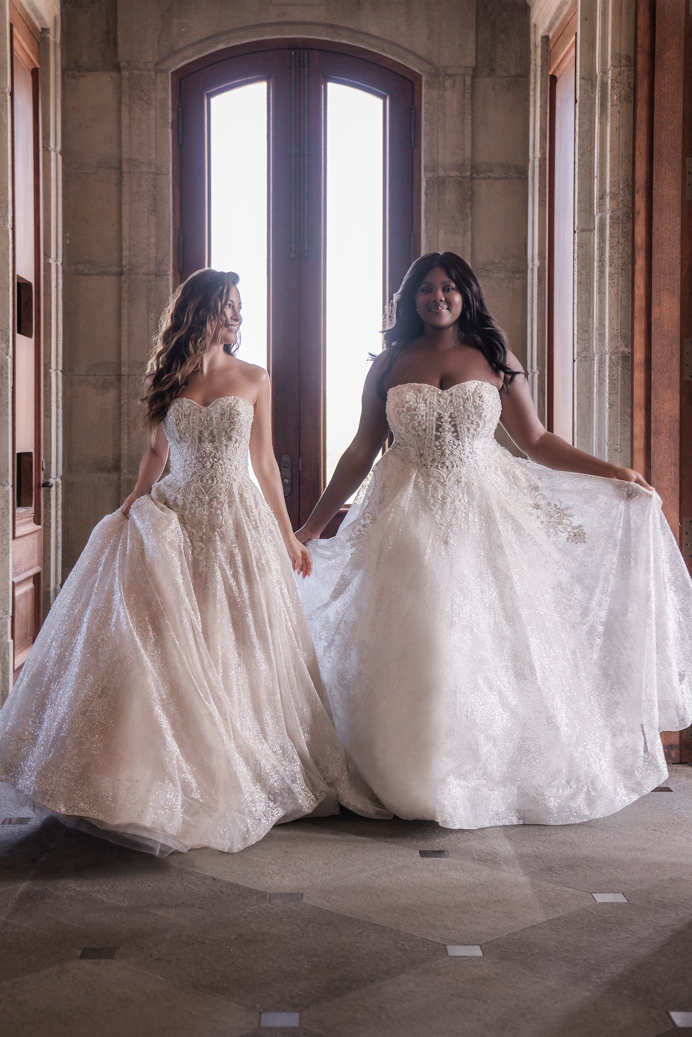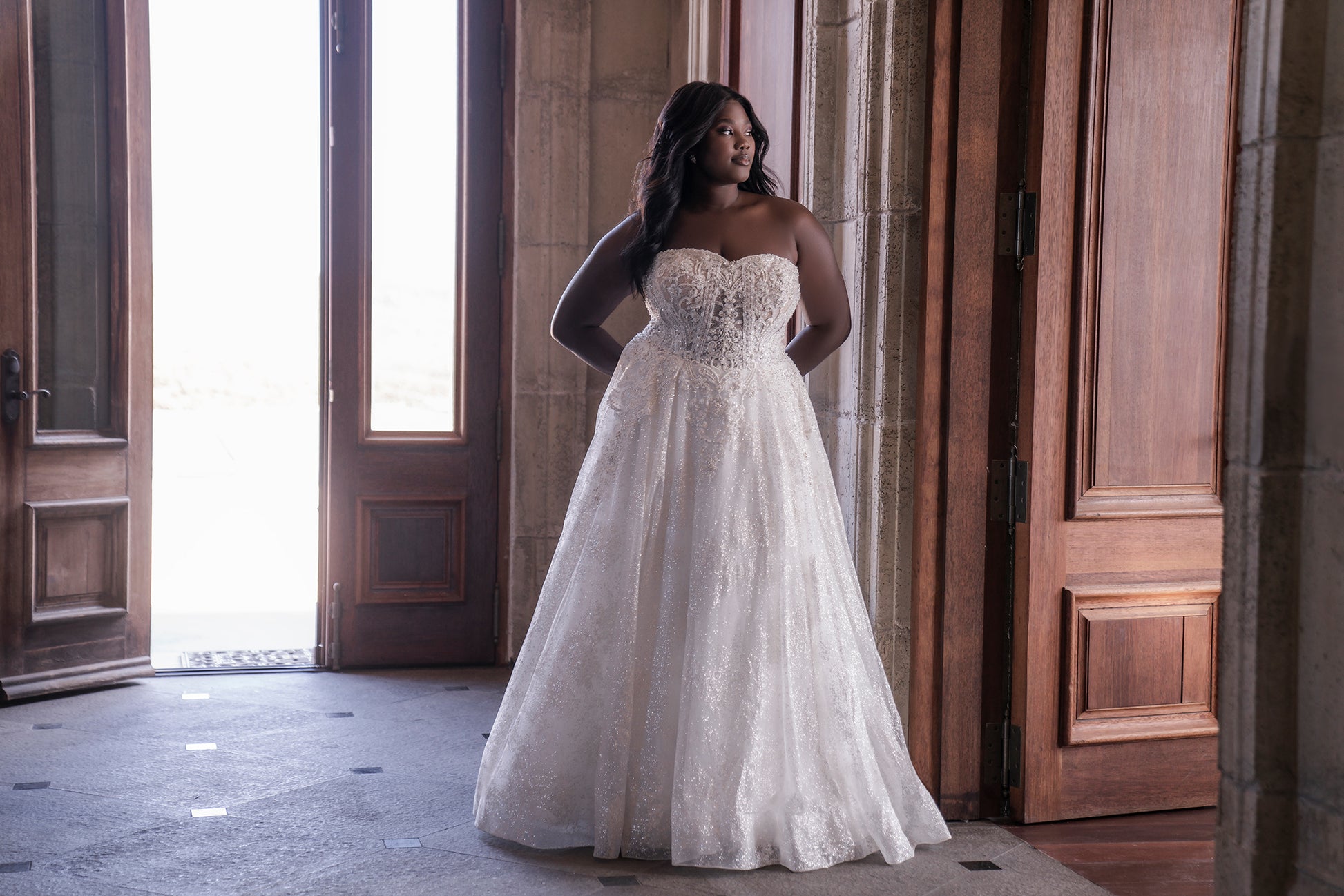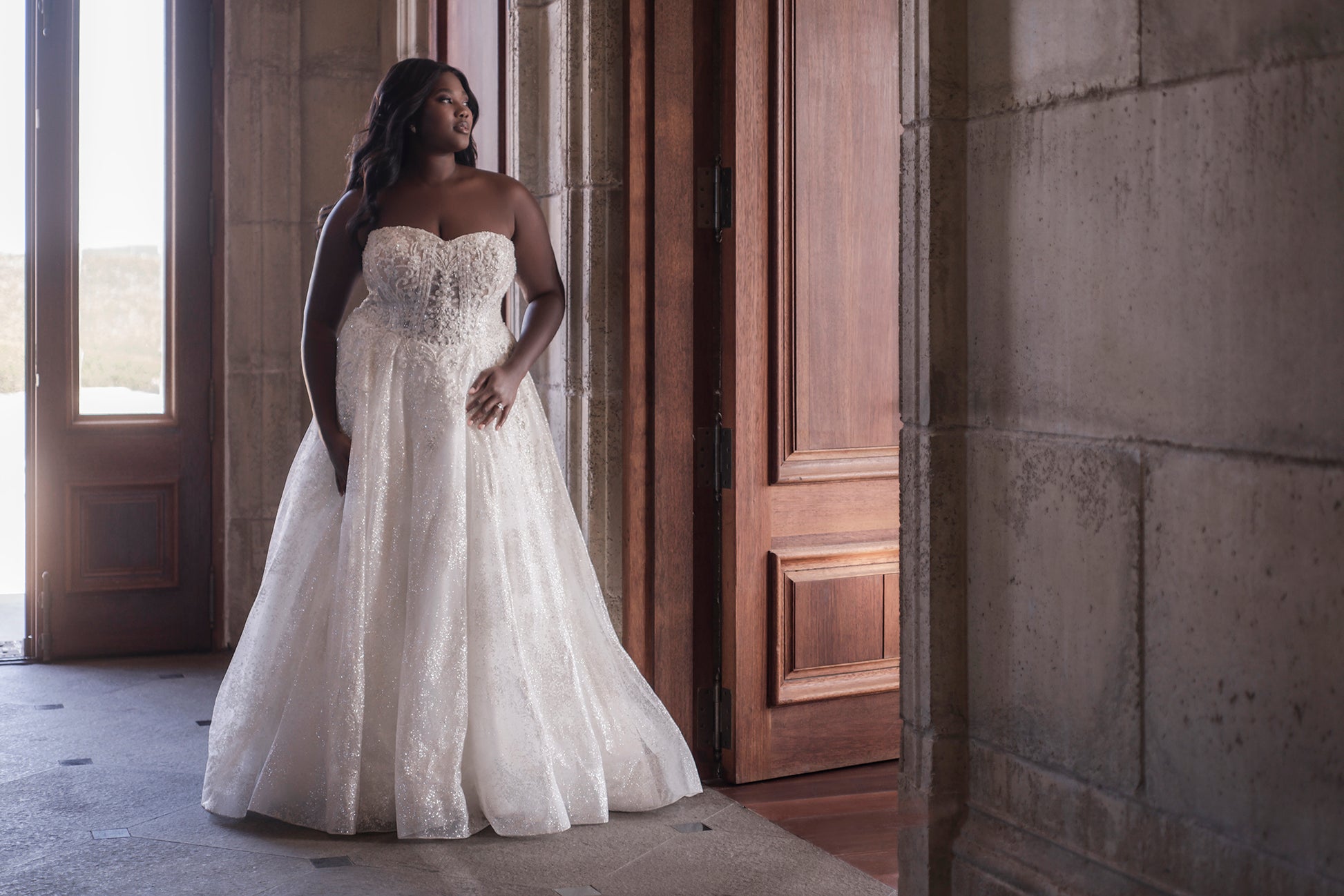 Before you schedule a bridal appointment or order your dress, it’s important to know that wedding dress size charts will vary based on country and designer, and even by silhouette. Wedding size charts often to not follow the typical measurements of ready-to-wear sizes, so don’t be alarmed if you measure a size different than your usual dress size. Please consult with an authorized Allure Bridals retailer before ordering your dress to guarantee the perfect fit for your wedding day.