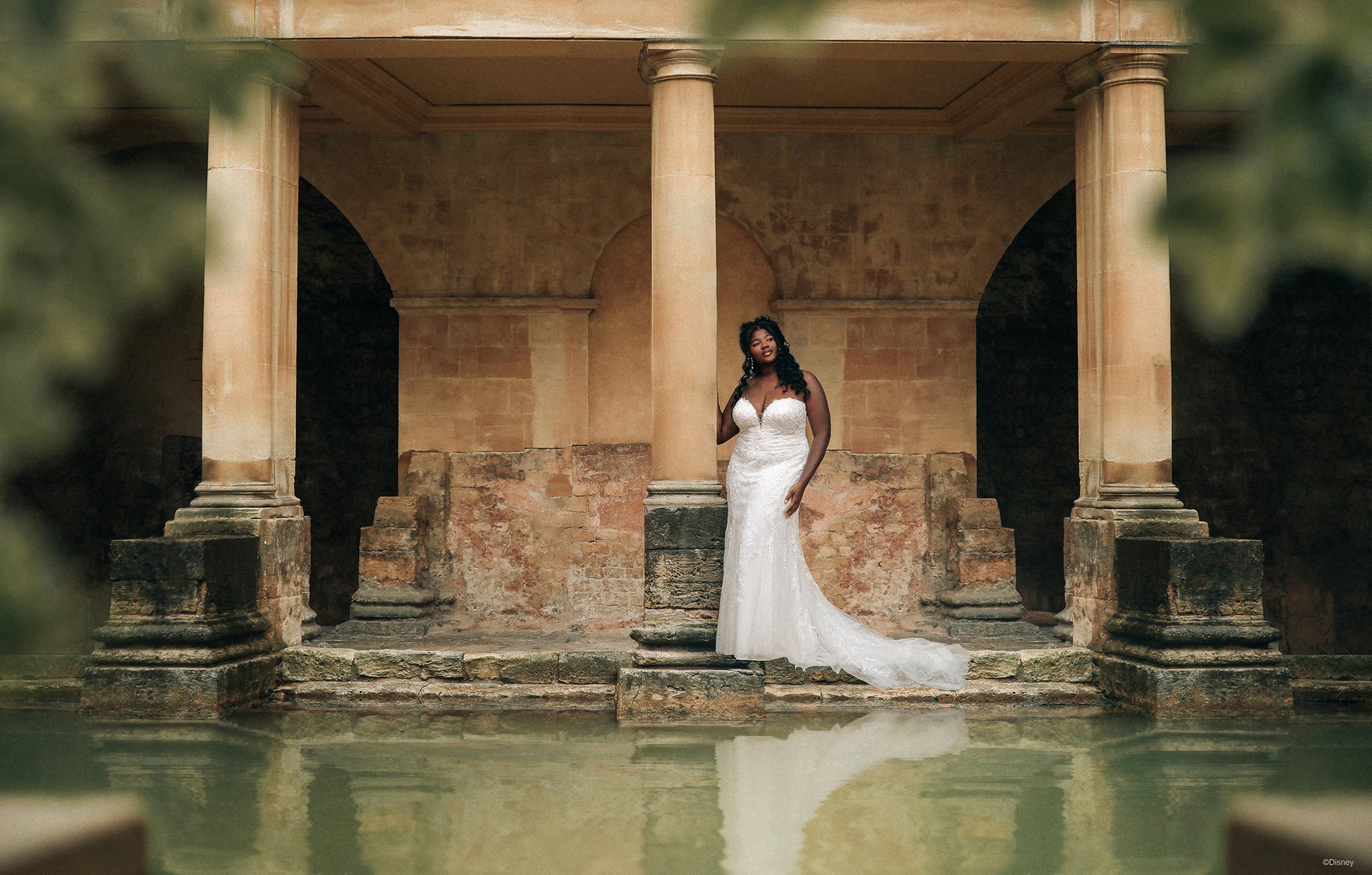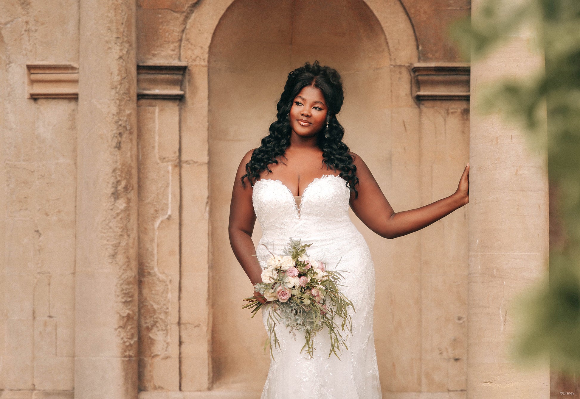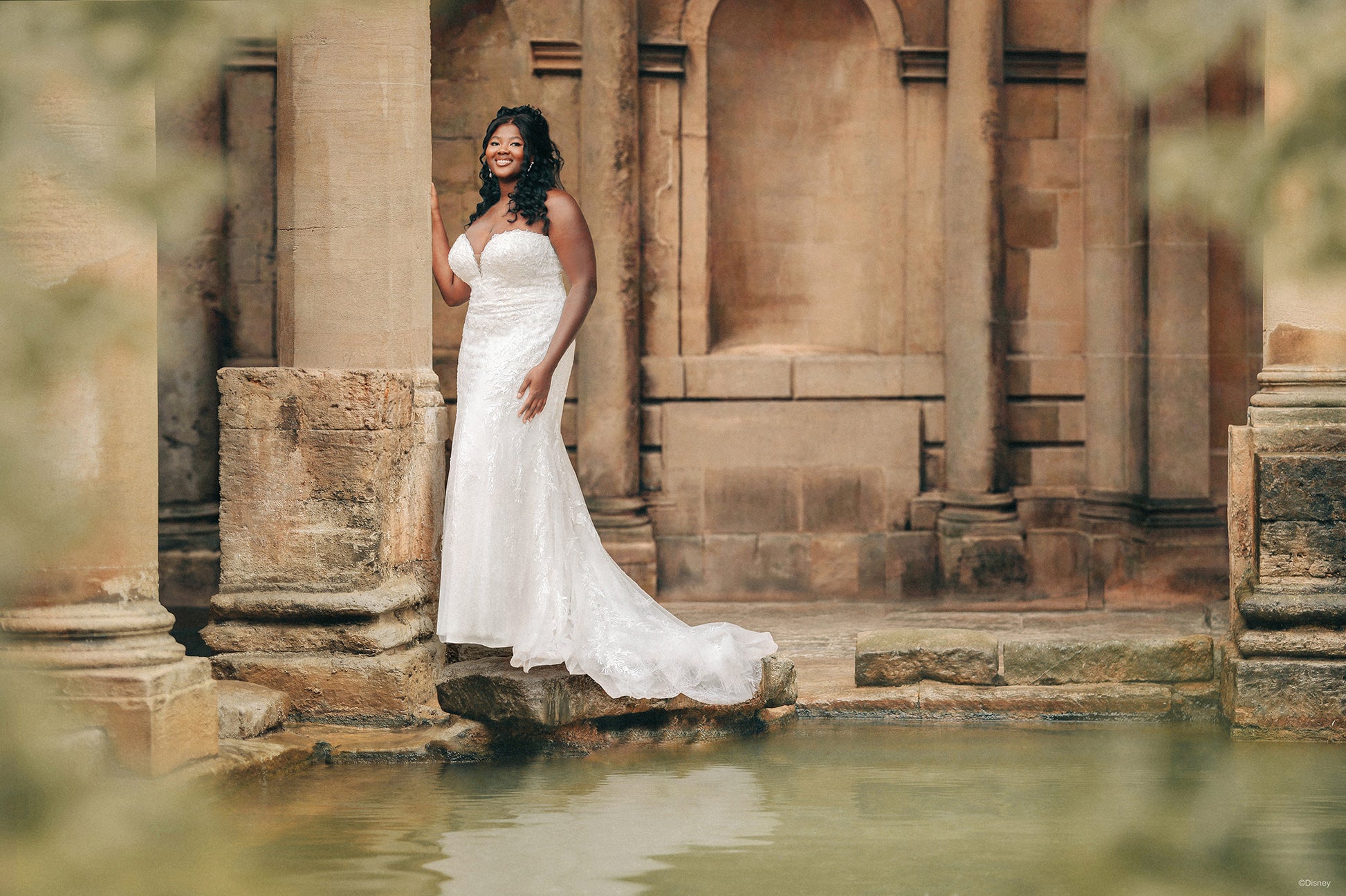 Capturando la confianza y la alegría de vivir de Tiana, este vestido entallado y con vuelo está forrado con encaje Chantilly, apliques de encaje con forma de enredadera y brillantes cuentas que evocan luciérnagas nocturnas. Este vestido Disney Fairy Tale Weddings D368 también está disponible con mangas desmontables D368SL, que se venden por separado. Encuentra el vestido y las mangas desmontables cuando busques en tu tienda Disney Fairy Tale Weddings hoy mismo. Read Less