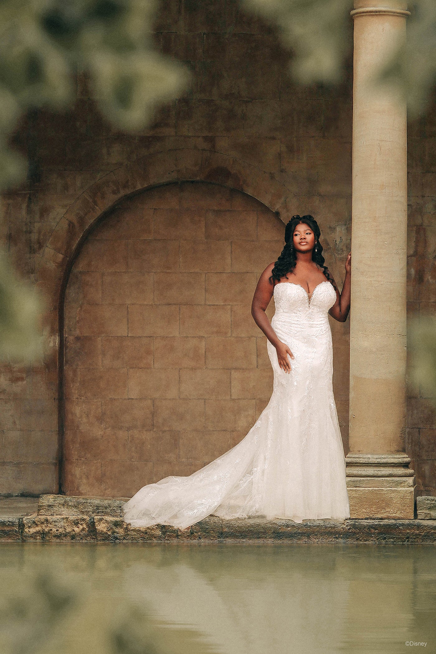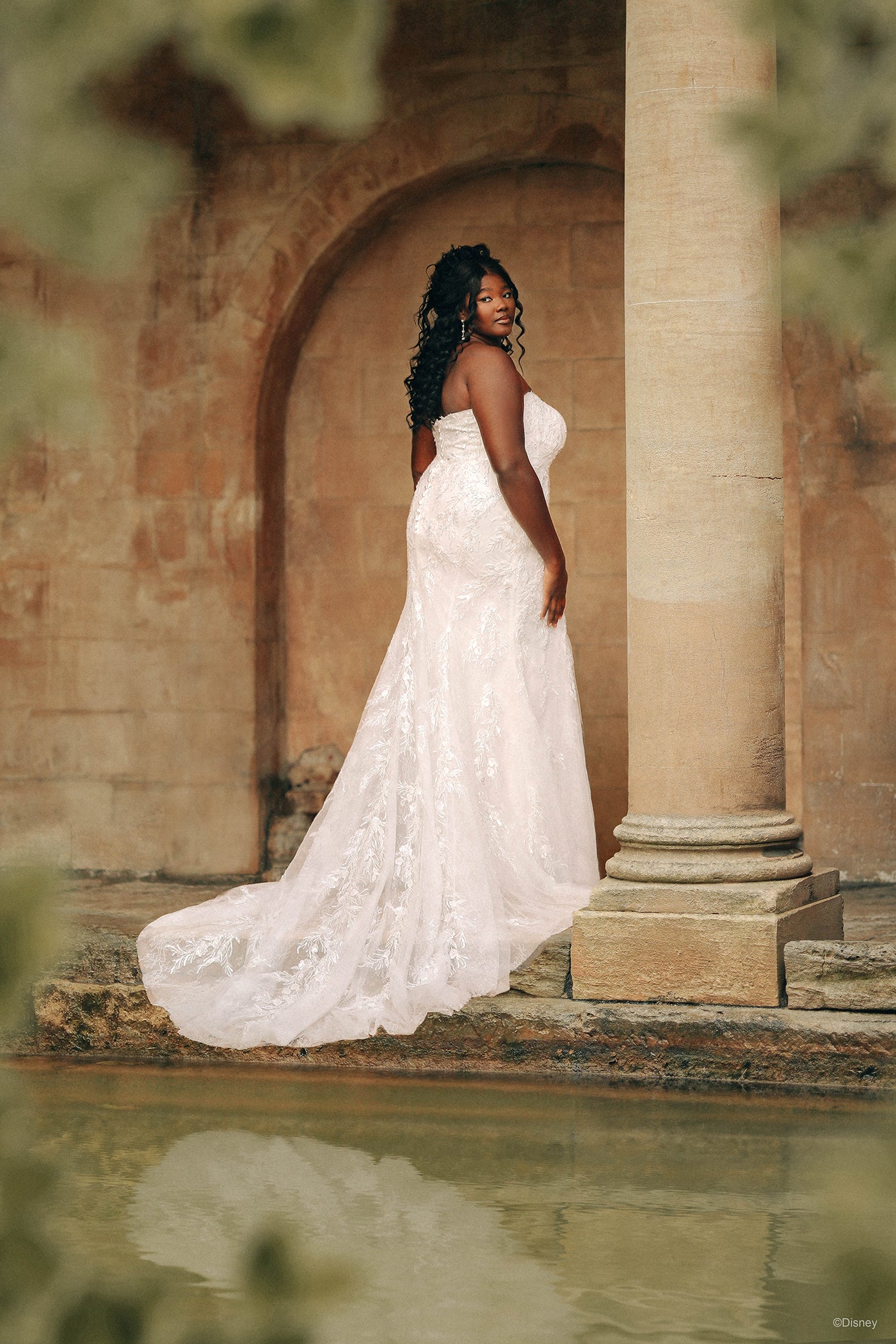 Capturando la confianza y la alegría de vivir de Tiana, este vestido entallado y con vuelo está forrado con encaje Chantilly, apliques de encaje con forma de enredadera y brillantes cuentas que evocan luciérnagas nocturnas. Este vestido Disney Fairy Tale Weddings D368 también está disp... Read More