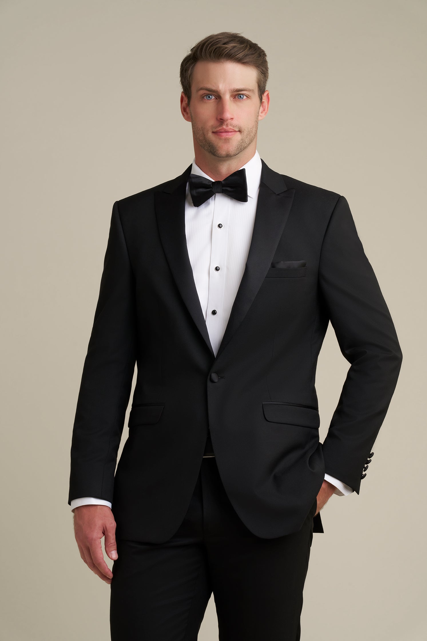 En Allure Bridals, diseñamos nuestro esmoquin negro con solapa de muesca para favorecer a cualquier caballero y hacerlo brillar en eventos especiales. Un esmoquin negro es imprescindible por su versatilidad; nunca pasa de moda y queda bien en todos. Nuestro esmoquin cuenta con una clásica solapa de muesca, una opción atemporal y tradicional. Para comprar el esmoquin negro con solapa de muesca, visite nuestra página web para encontrar una de nuestras tiendas de trajes y esmóquines. También disponible en tallas grandes, altas y juveniles. Read Less