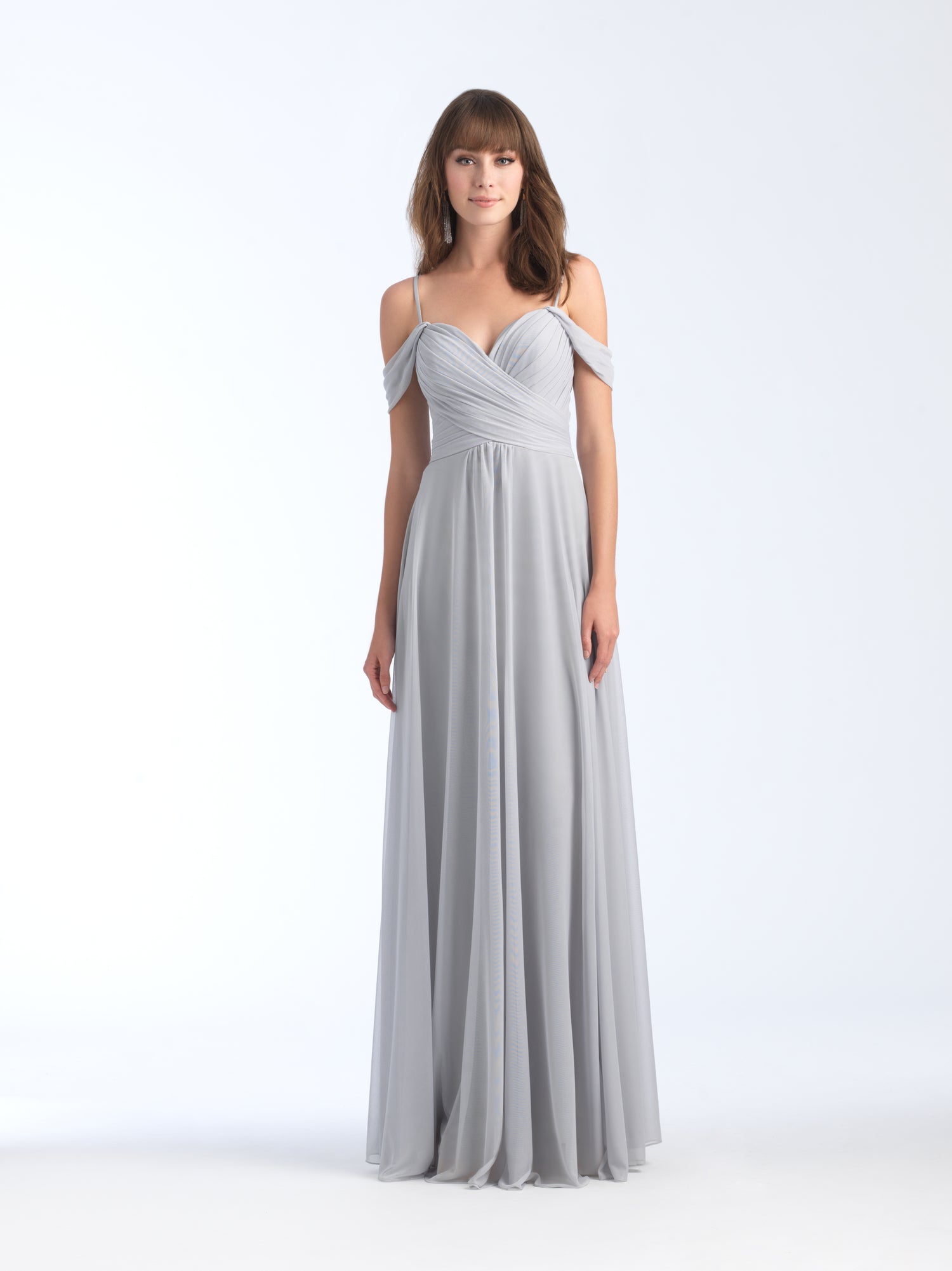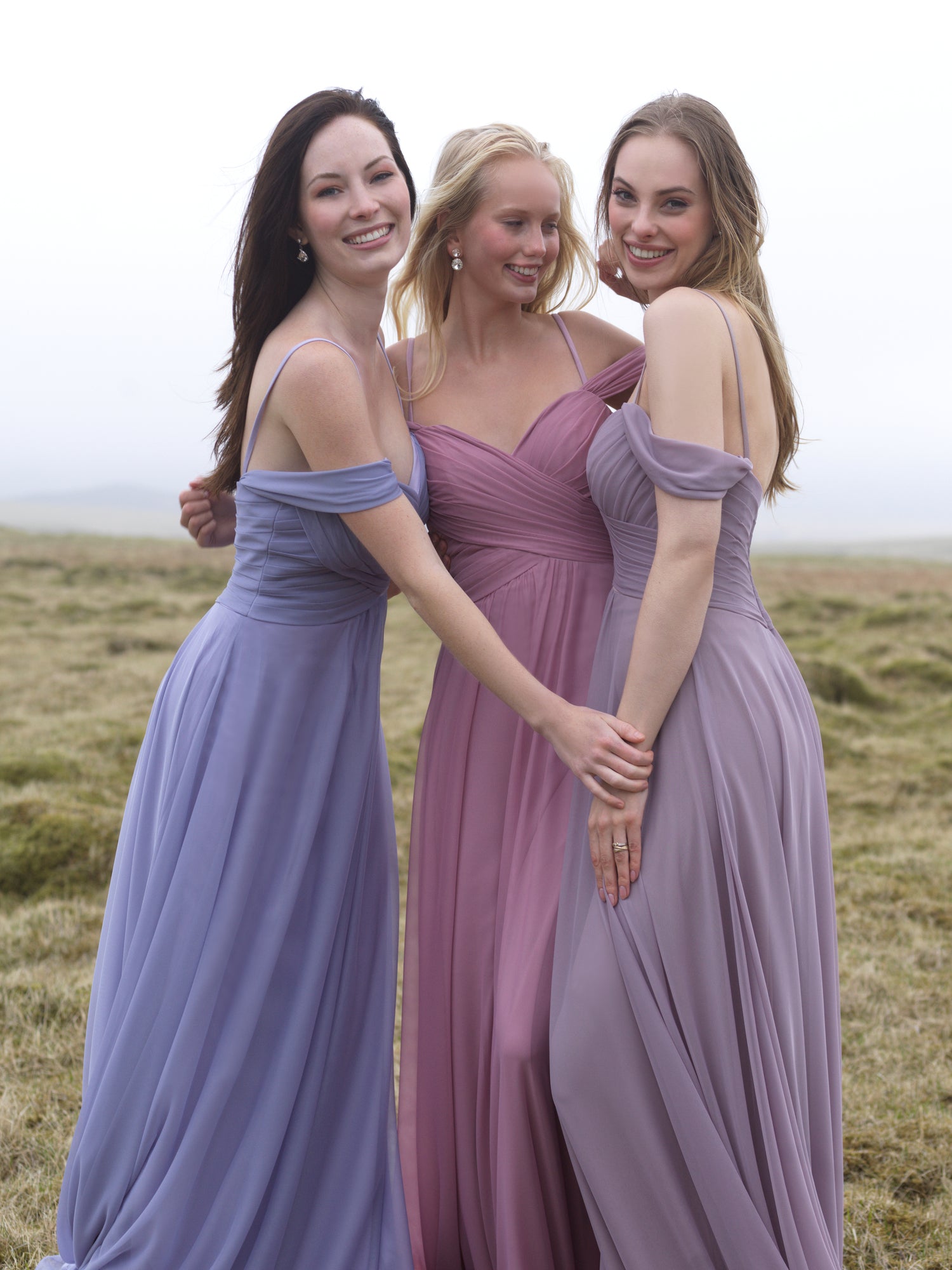 Cette robe en mousseline extensible à épaules dénudées est froncée le long du corsage.