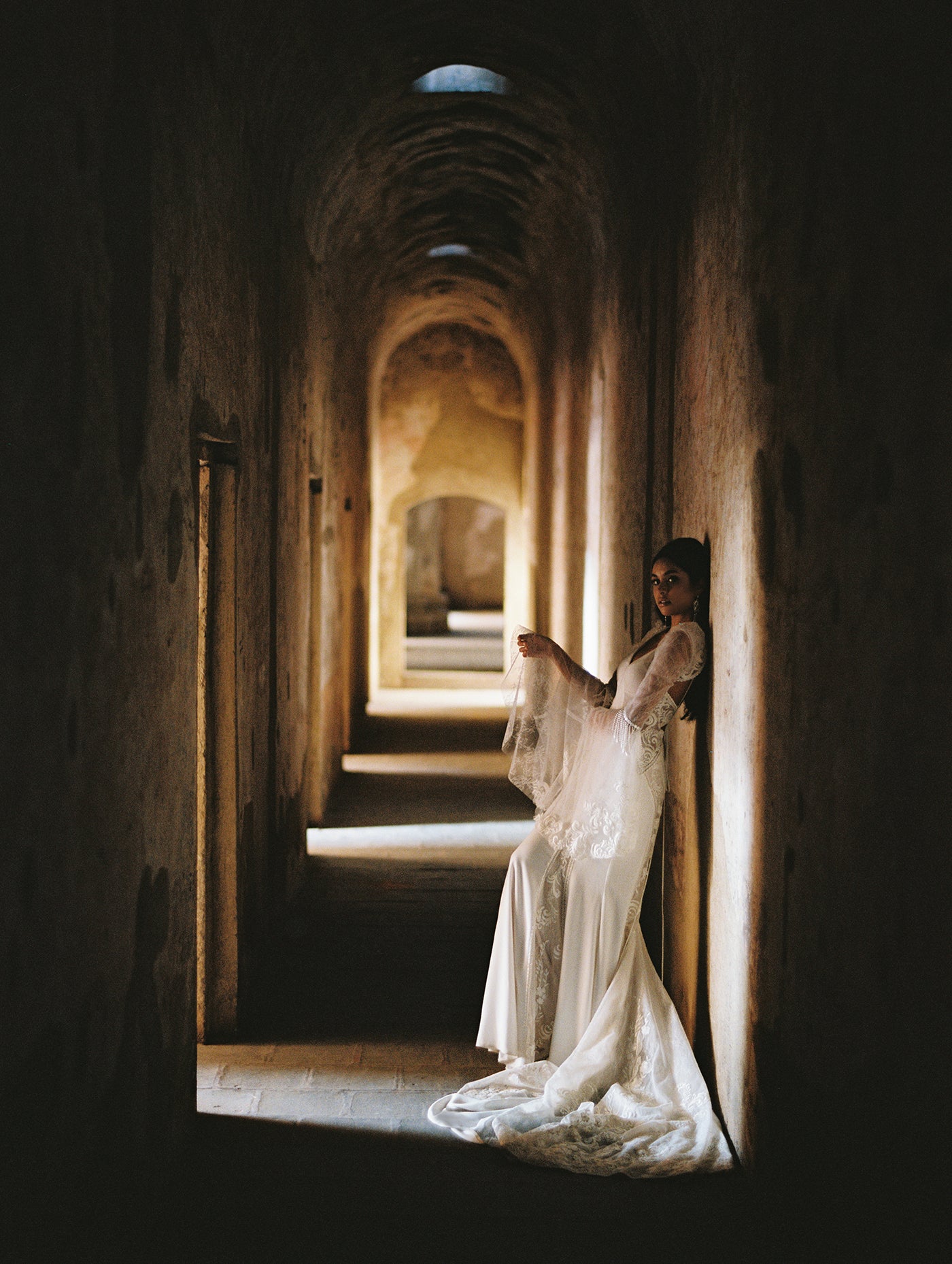 Le dos papillon ouvert de Franklin accentue parfaitement ses détails en dentelle brodée sur la silhouette en crêpe.
