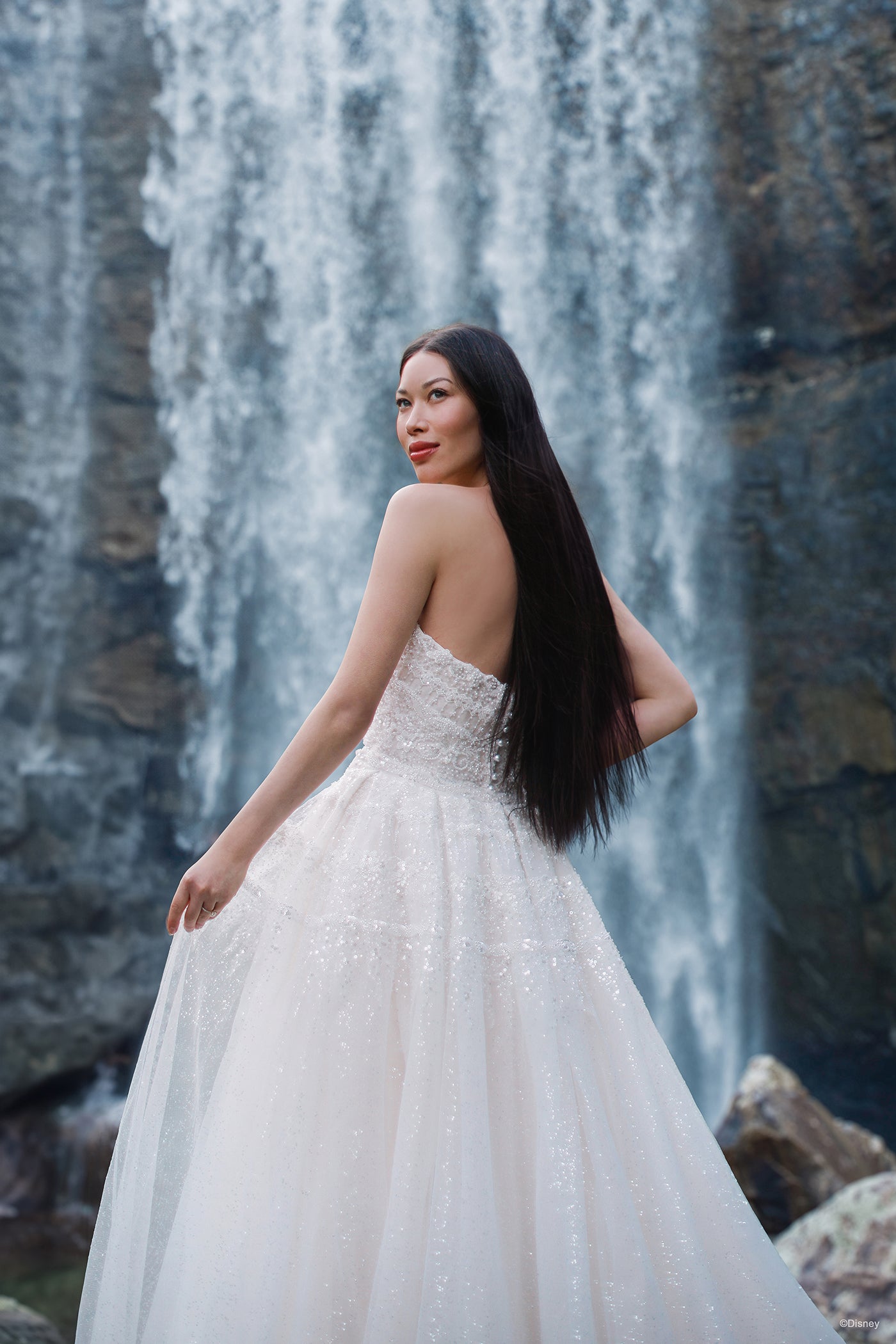 Une traîne amovible composée de tulle, inspirée de Pocahontas de Disney.
