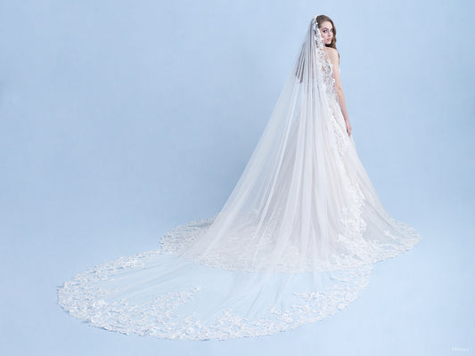 Cette robe inspirée de Cendrillon donne vie à un rêve de conte de fées avec une élégance intemporelle et une touche de magie. Sa silhouette trapèze gracieuse, ses manches longues et sa taille naturelle allient classicisme et modernité. Scintillante grâce à ses délicats appliqués de perles et de sequins sur un tulle scintillant, la robe s'illumine à chaque mouvement, faisant écho à la légendaire transformation de Cendrillon. Disponible en platine, ivoire et bleu platine, elle offre une teinte fraîche et chatoyante rappelant sa robe scintillante sous le ciel nocturne. Pour la mariée rêvant d'une histoire unique, cette robe célèbre les vœux, l'émerveillement et le véritable amour.