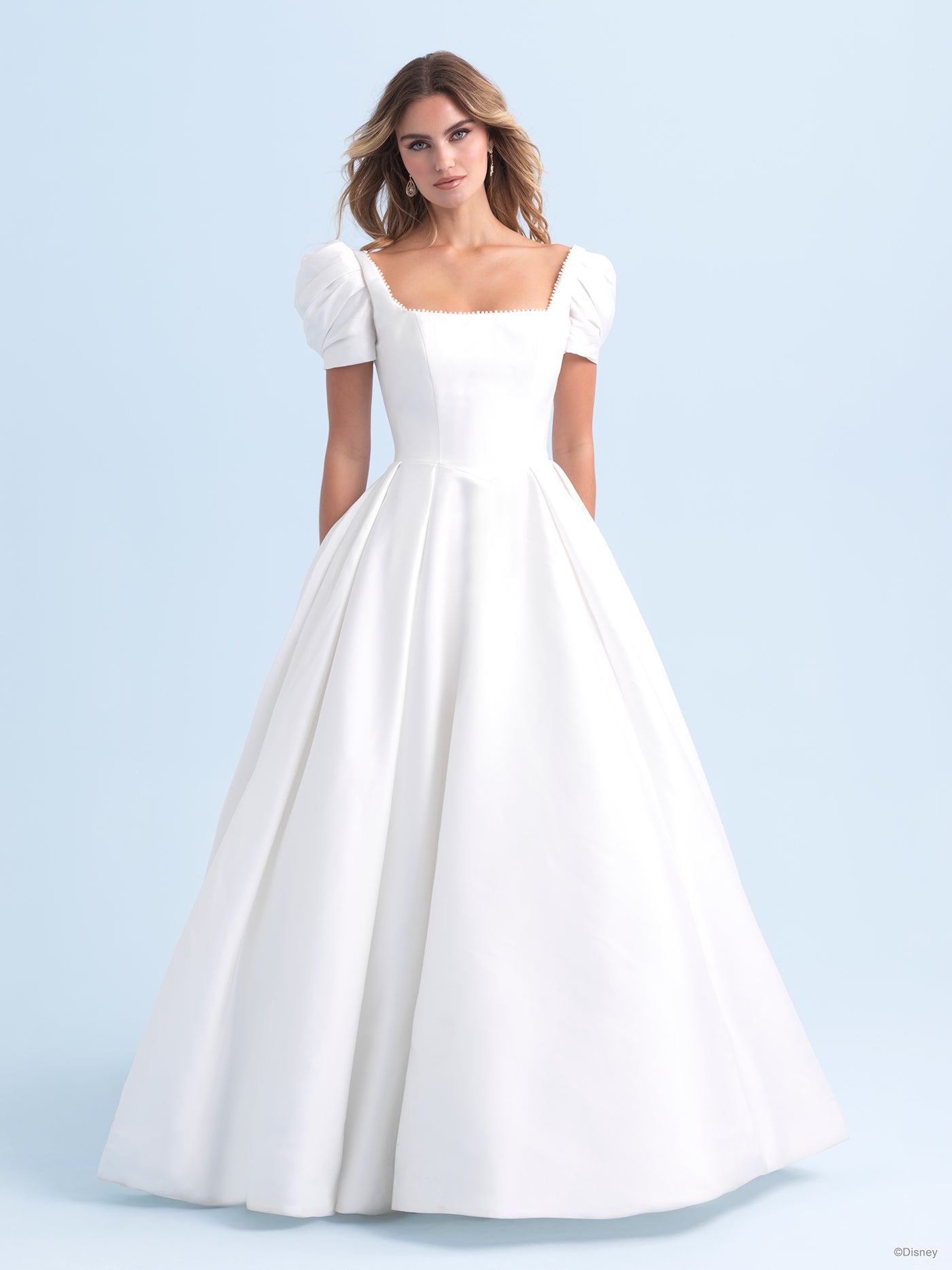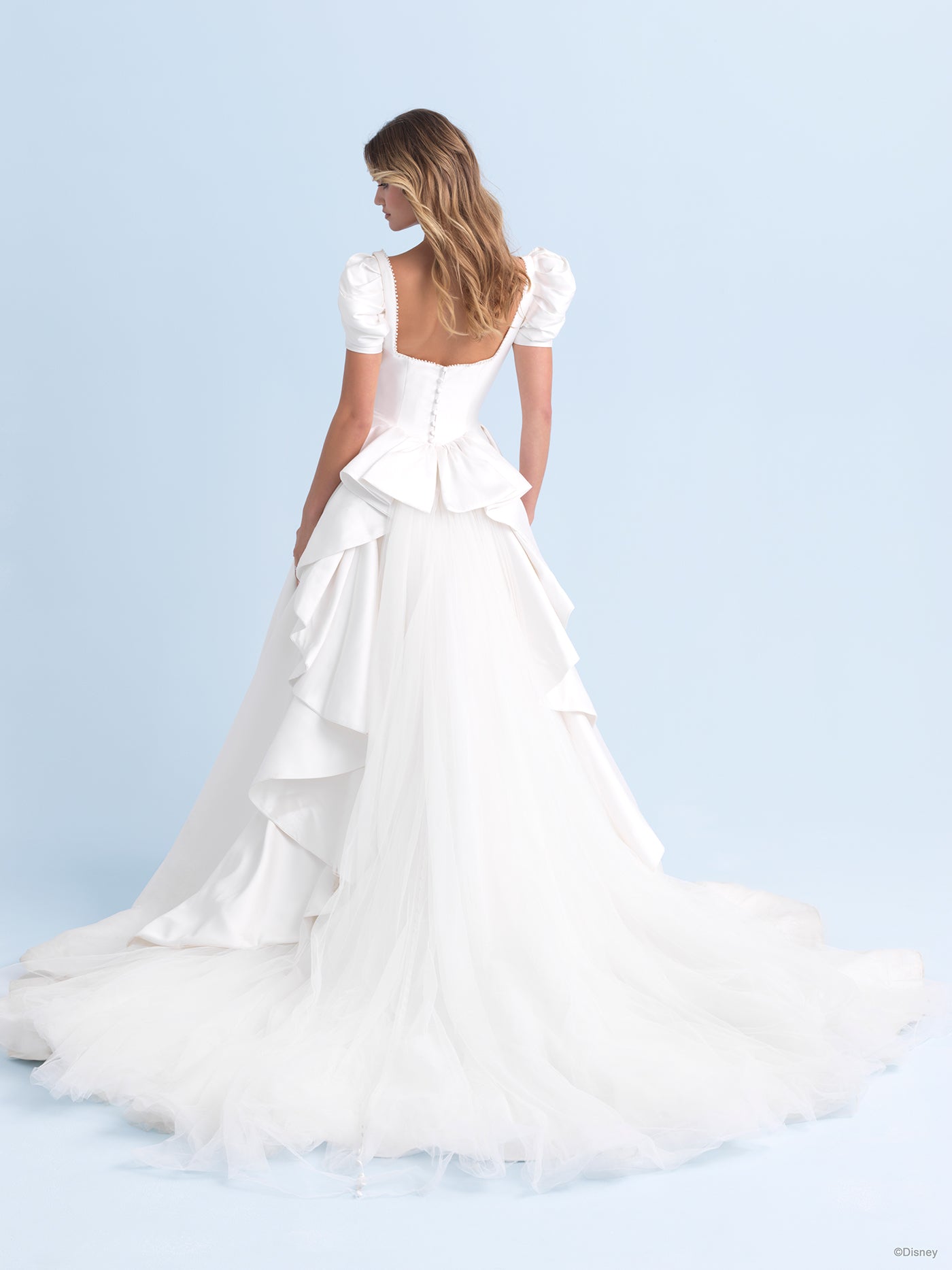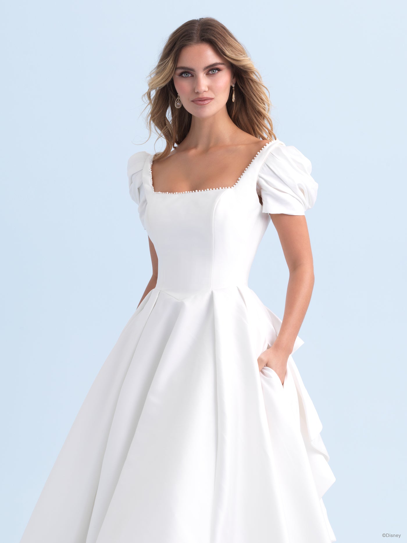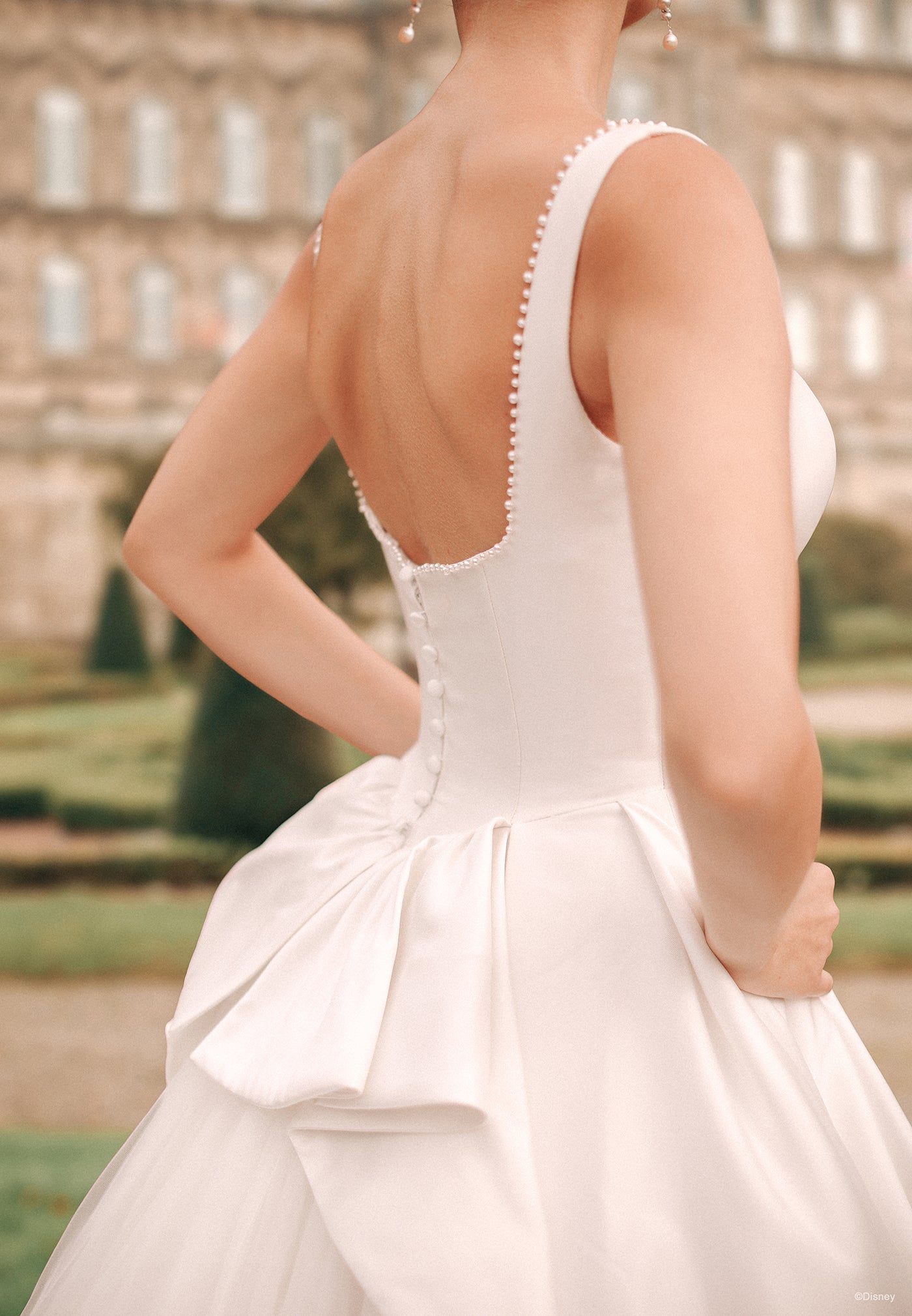 Le célèbre conte de fées de Cendrillon commence par un simple souhait, une robe exquise et le rêve de toute une vie. Des perles ornent l'encolure carrée, associée à des manches amovibles, tandis que la taille basque de notre robe se termine par une magnifique traîne à volants.