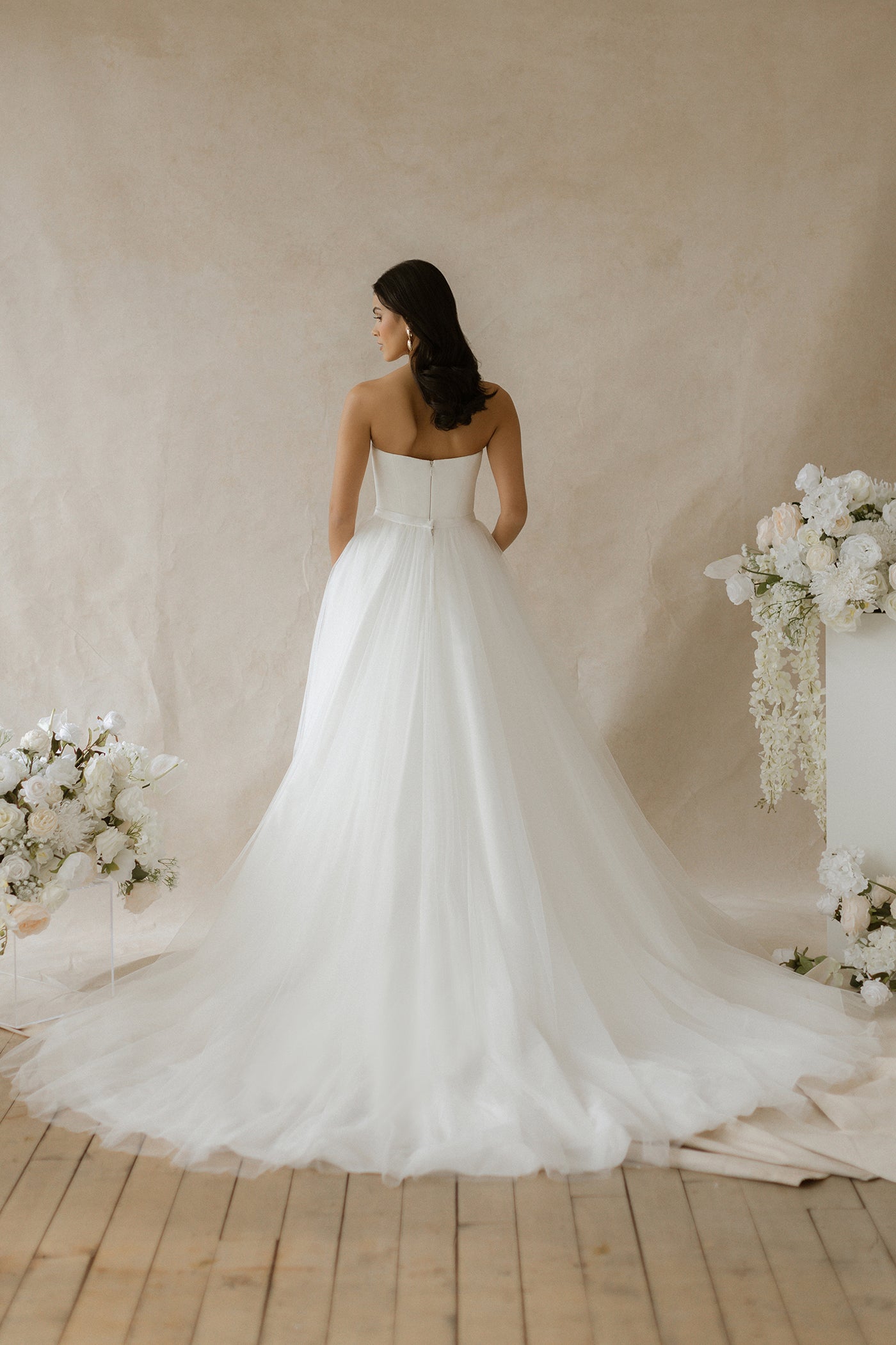 Douce et romantique, cette jupe amovible est confectionnée en tulle aérien qui flotte à chaque pas. Une ceinture en satin raffiné apporte une touche raffinée, transformant ainsi une robe ajustée en une silhouette ample et onirique.