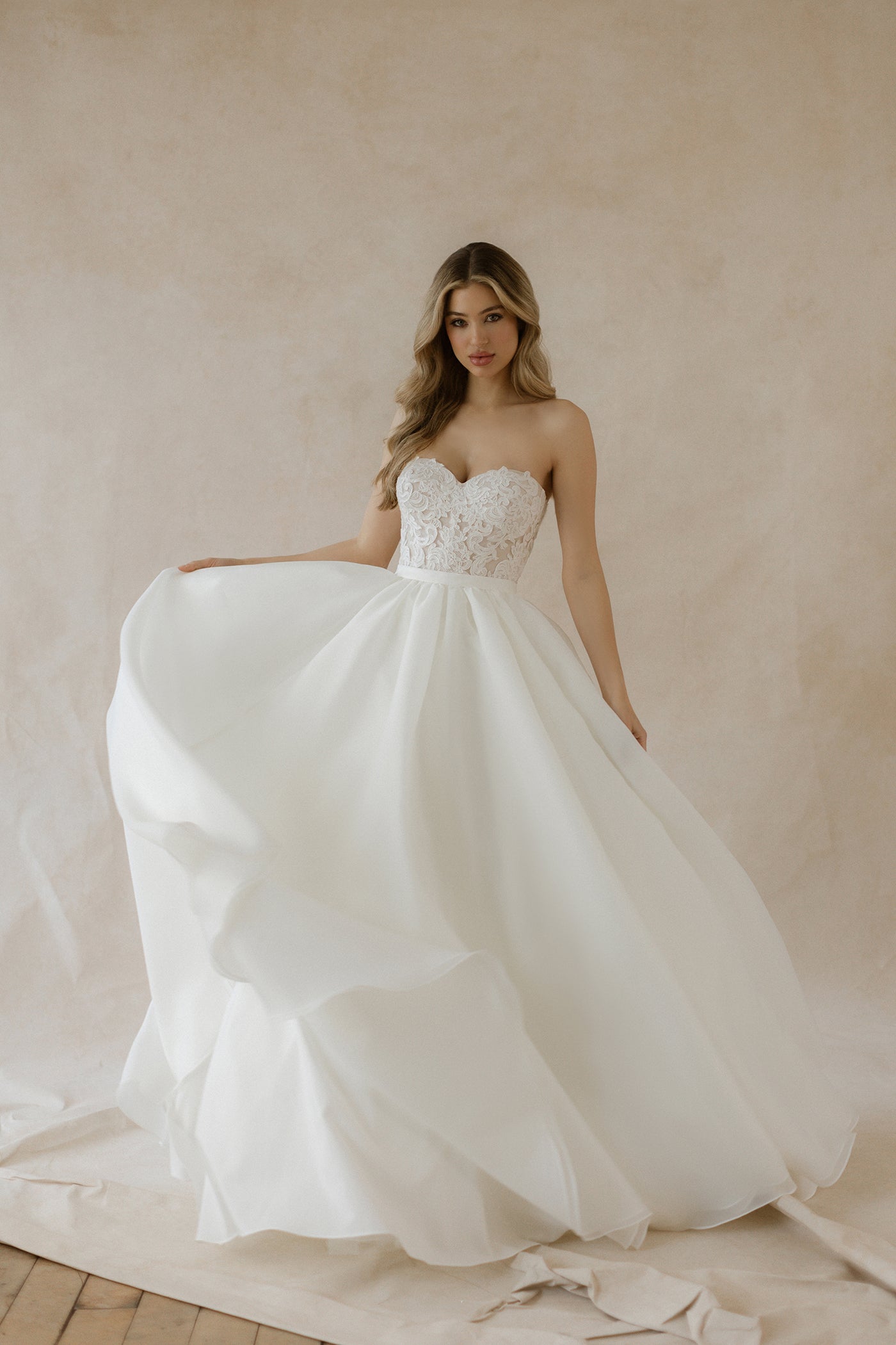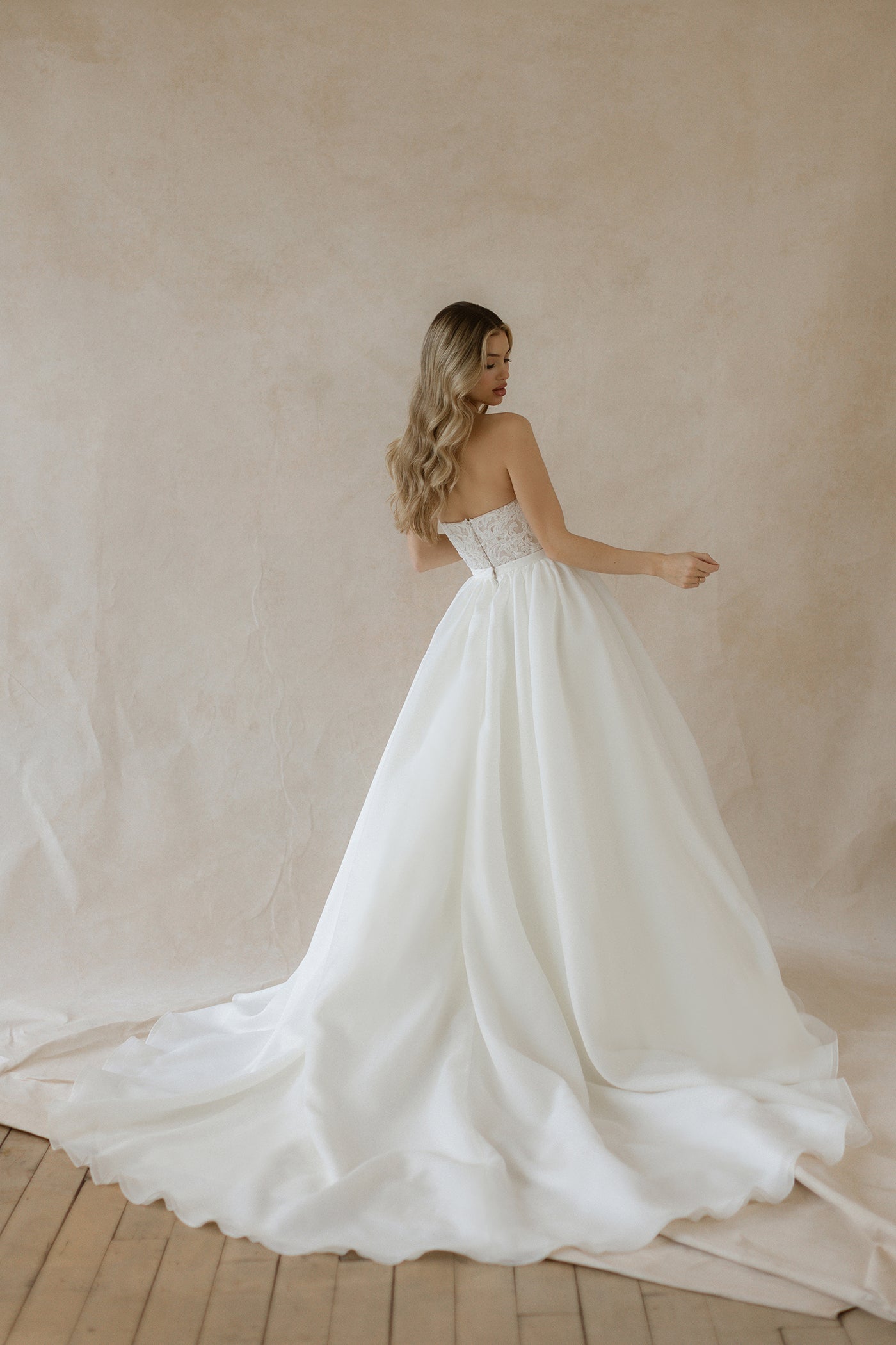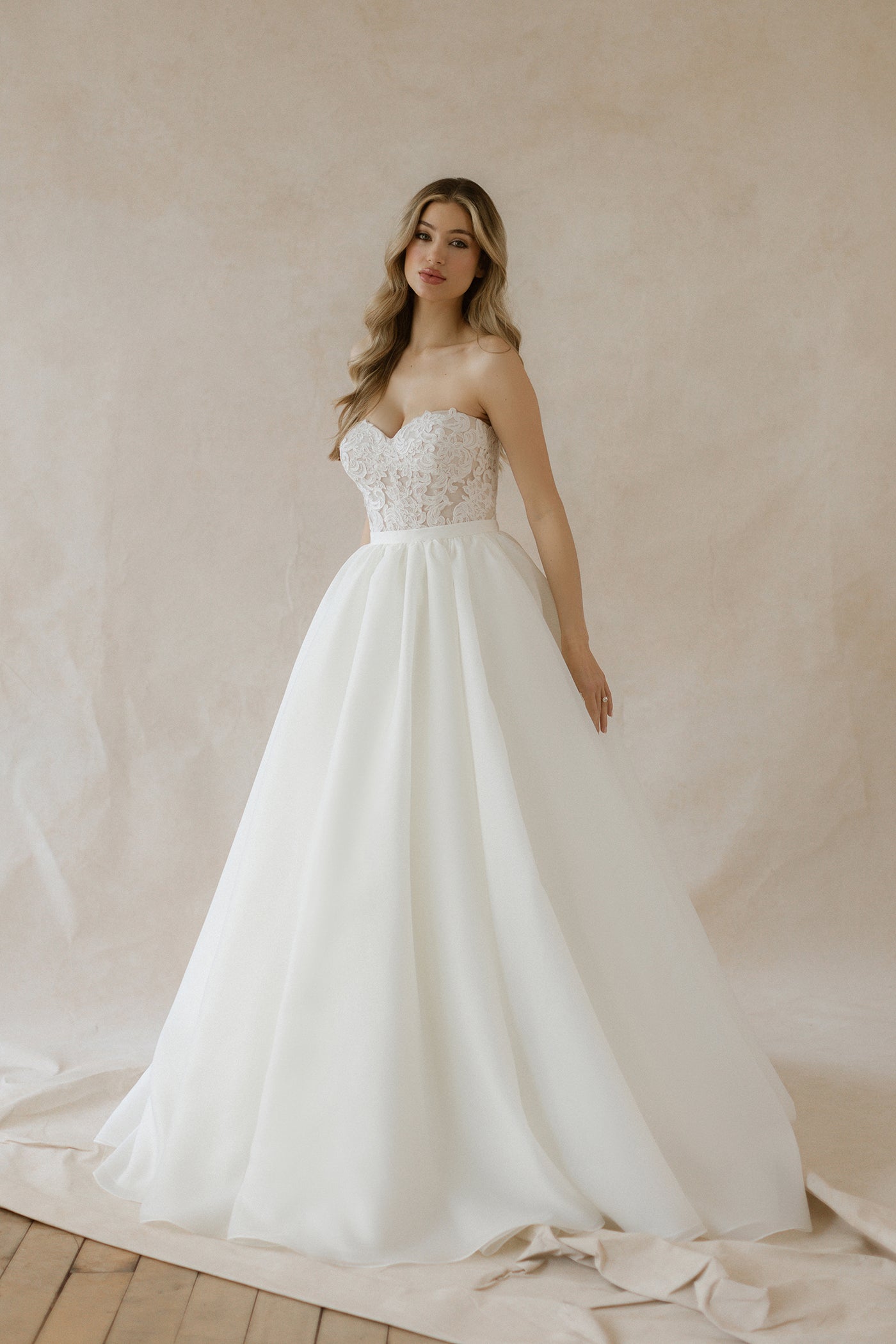 À la fois fluide et aérienne, cette jupe amovible en organza apporte un volume structuré sans alourdir. L'éclat subtil de l'organza apporte une touche de formalité, créant une surjupe spectaculaire qui se marie à merveille avec des robes élégantes ou en dentelle.