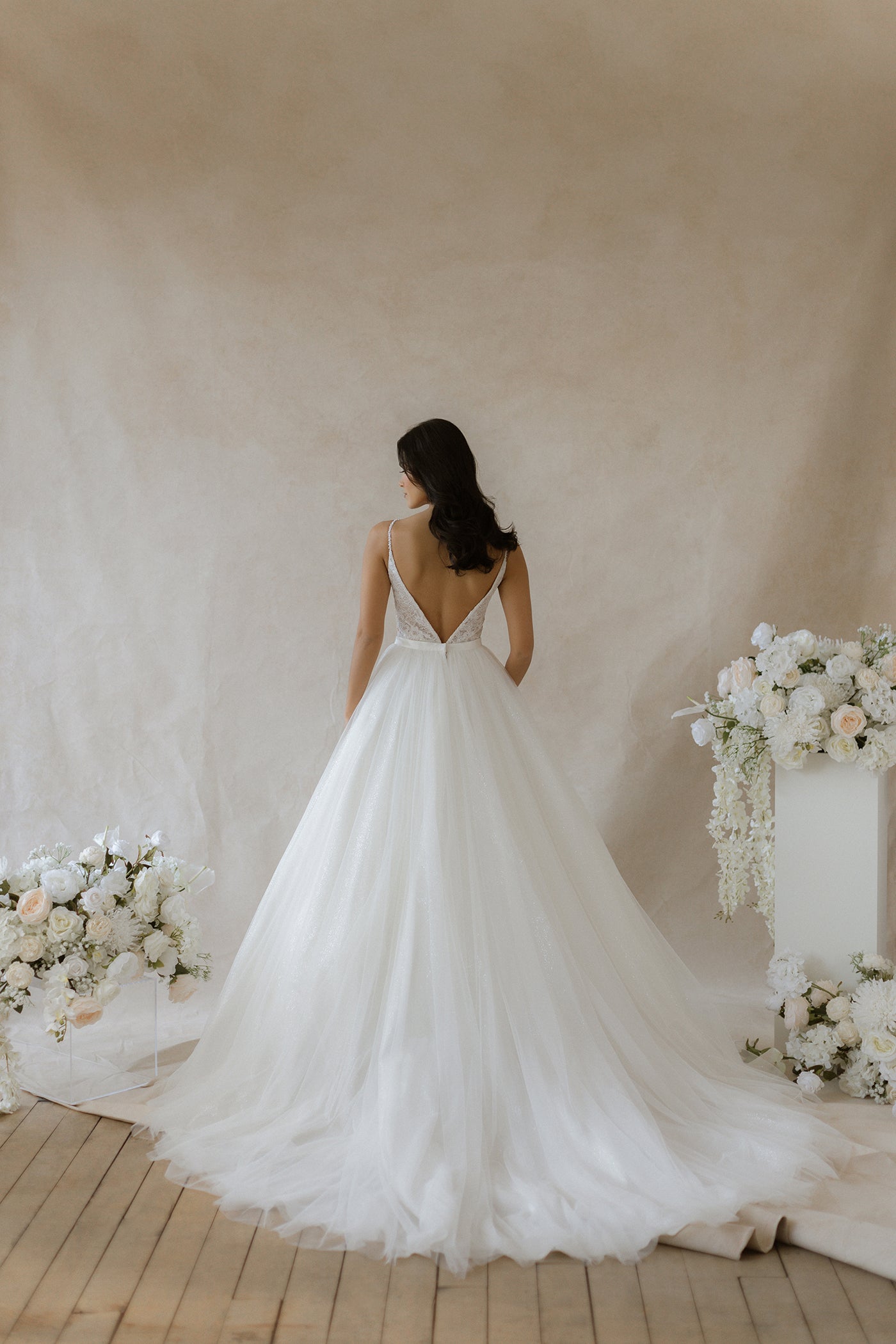 Pour une touche d'éclat, cette jupe amovible est composée de plusieurs couches de tulle pailleté qui captent la lumière sous tous les angles. Une ceinture en satin offre une finition raffinée, parfaite pour ajouter une touche de fantaisie à votre look.