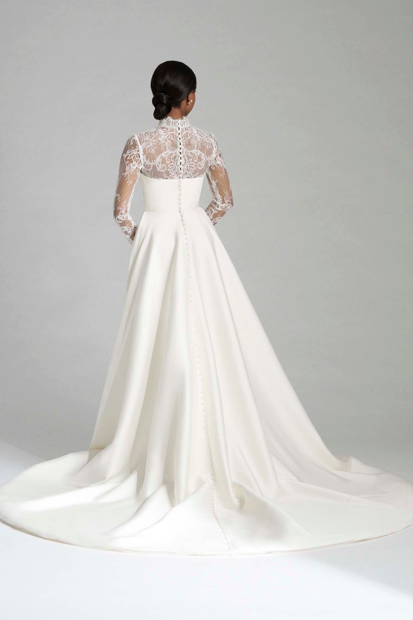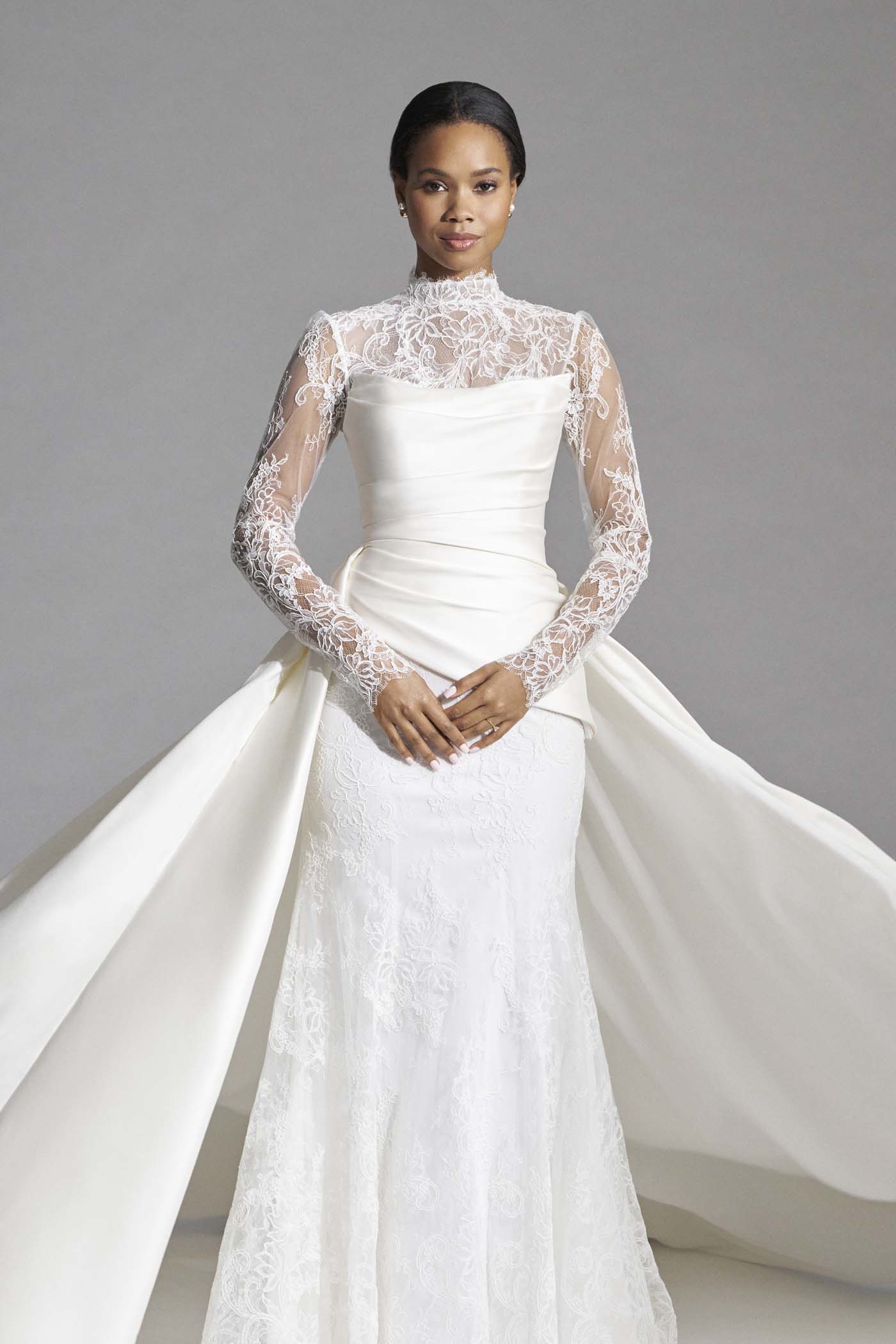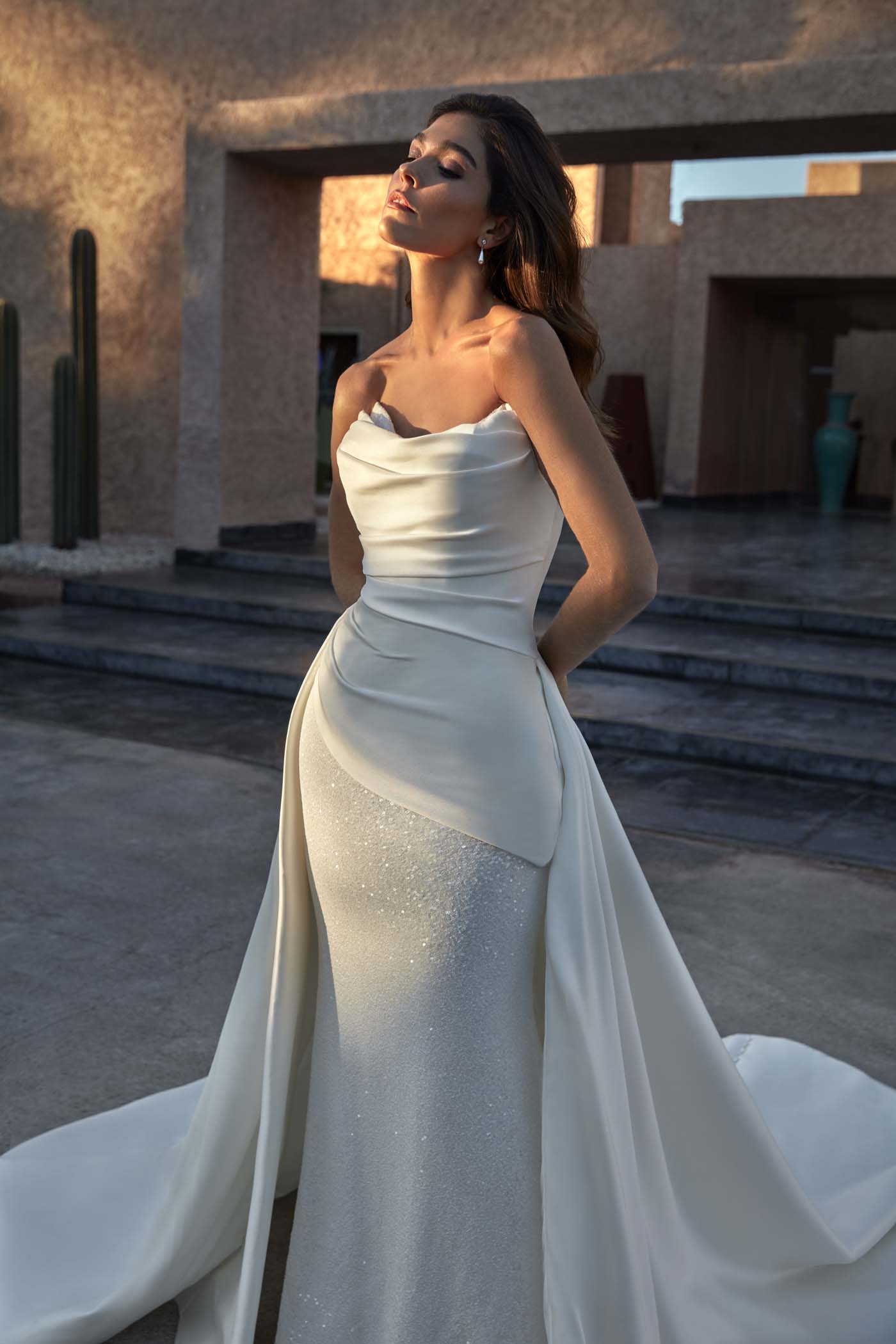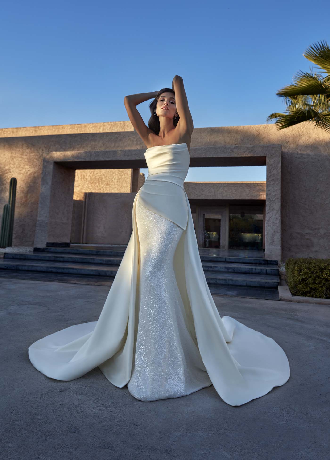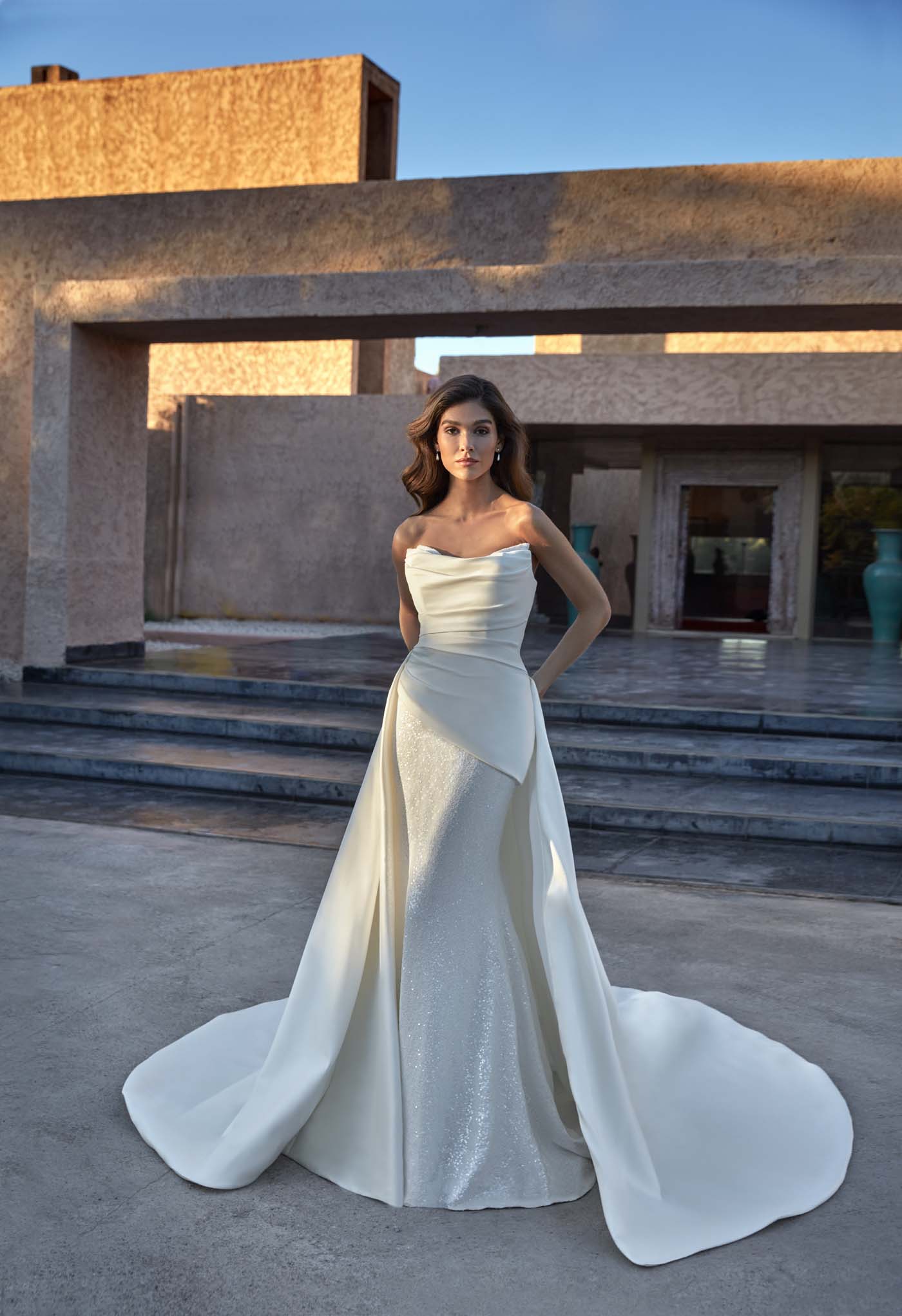 Sublimez n'importe quelle robe avec ce corsage et sa traîne structurés en mikado, un accessoire naturellement chic qui ajoute instantanément une touche théâtrale et de profondeur. Le corsage ajusté sculpte la taille et encadre le décolleté, tandis que la traîne ample apporte une élégance architecturale et audacieuse. Que vous souhaitiez transformer une silhouette minimaliste ou peaufiner un look existant, cette pièce est la pièce maîtresse du style nuptial moderne. Photographié avec les modèles MJ1151 et C789. Read Less