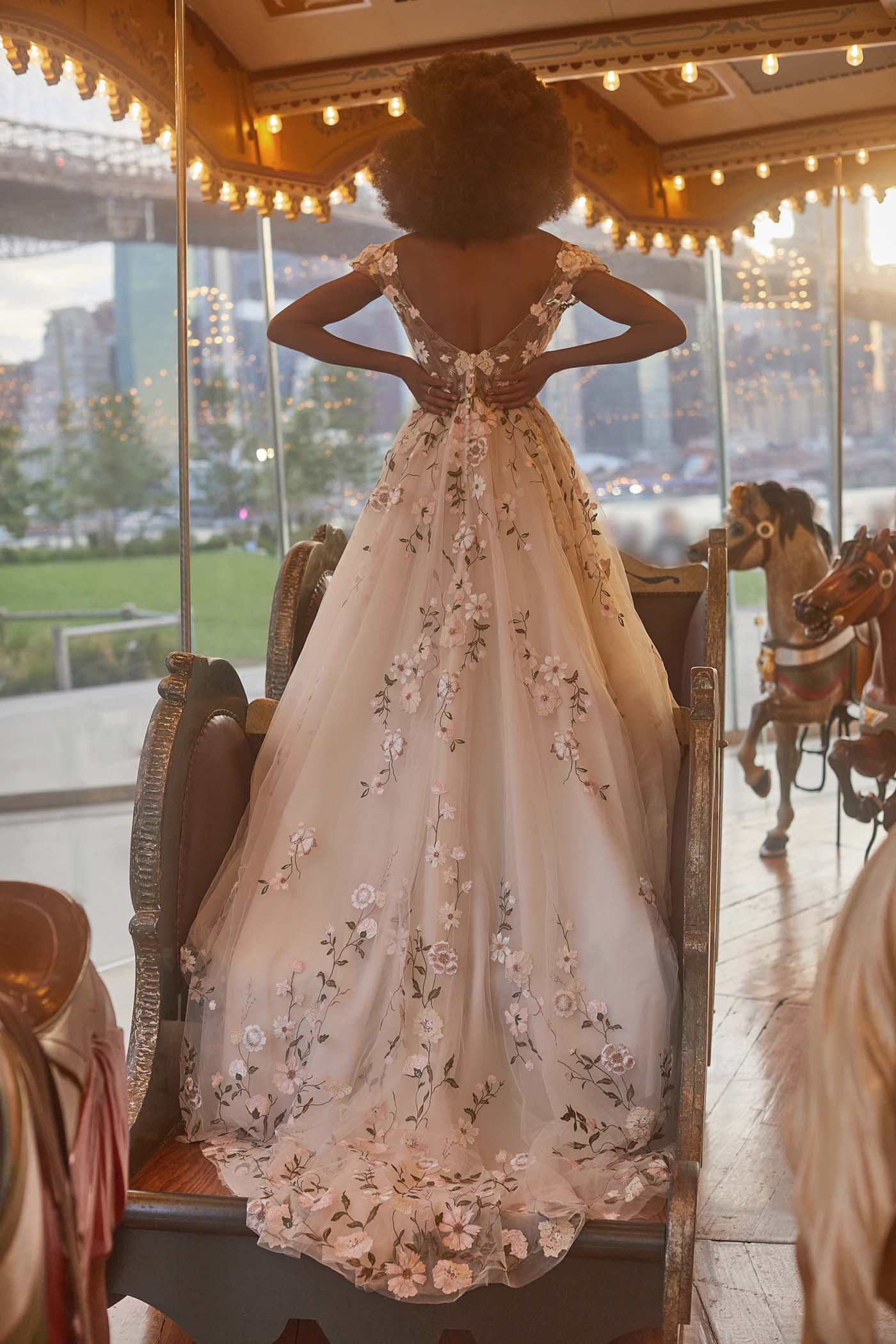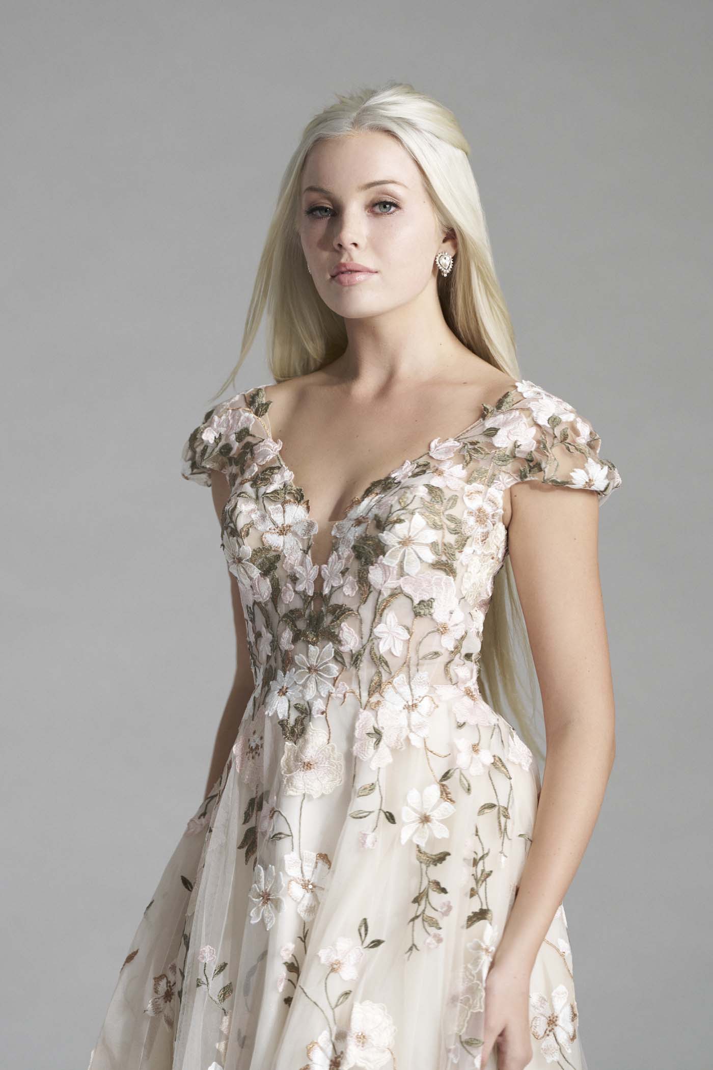 All the romance of realistic blossoms and trailing vines are embodied in our Madison James Johnny Gown - perfect for a secret garden wedding. Magical floral motifs decorate the sheer bodice and flow down the skirt of the MJ900 Johnny dress, covering you in a cascade of flowers. The char... Read More
