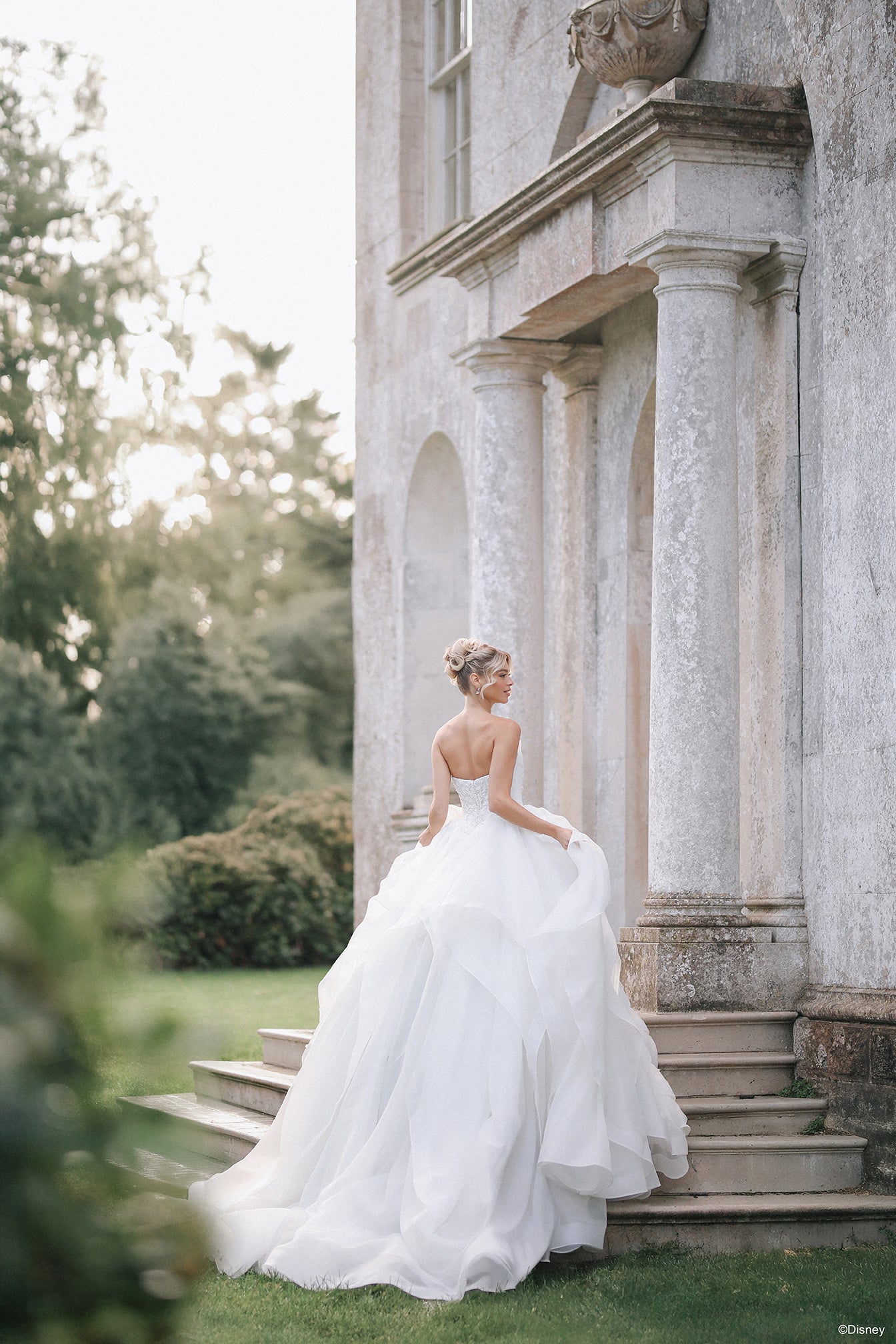 Shimmering in soft platinum with hints of cool blue, this organza ballgown evokes the moment Cinderella’s dreams take shape beneath the starlit sky. The beaded bodice sparkles like a wish granted, while delicate scrolls mirror the graceful curves of her enchanted carriage. A basque wais... Read More