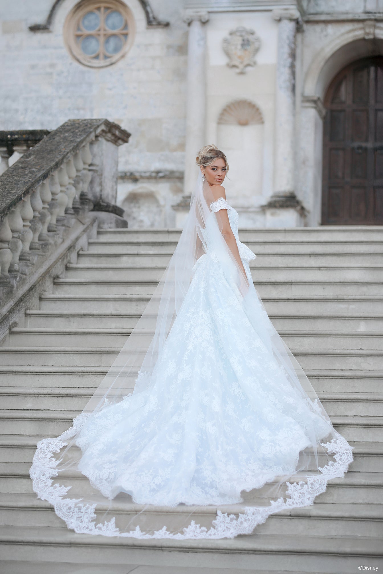 Complete your fairytale look with this cathedral-length veil, designed to perfectly complement the Cinderella-inspired gown. Crafted from airy tulle and adorned with intricate lace along the edge, it mirrors the gown’s romantic detailing with effortless grace. Flowing elegantly behind you, this veil adds a touch of timeless enchantment — the finishing piece for a bride ready to make her own grand entrance. Read Less