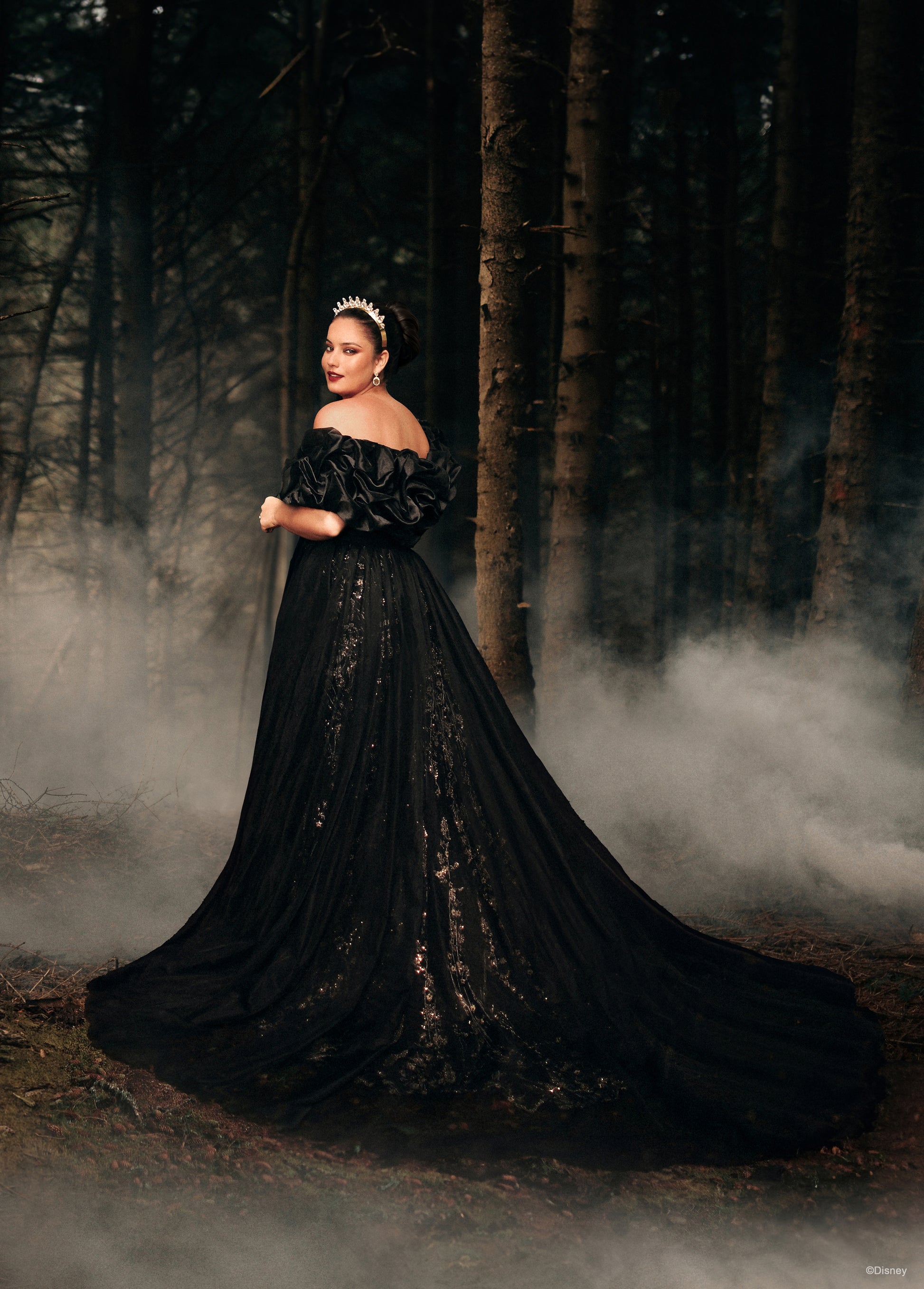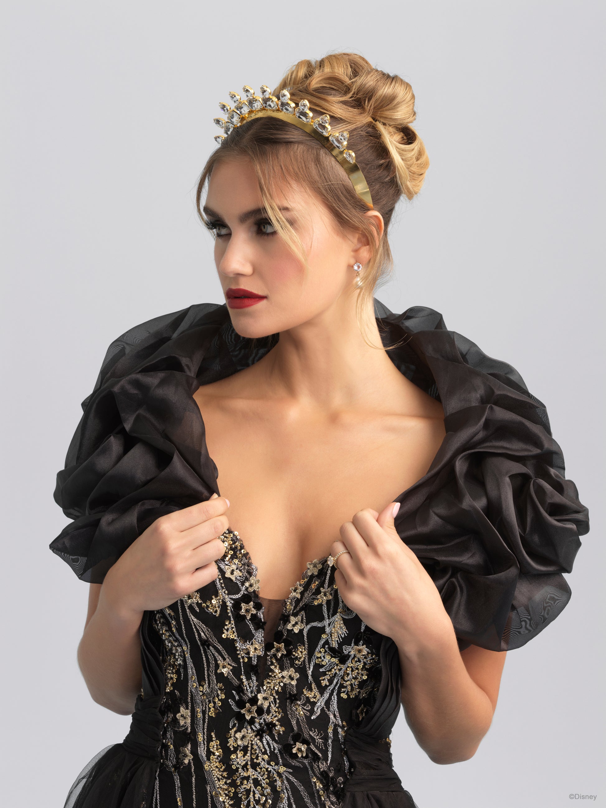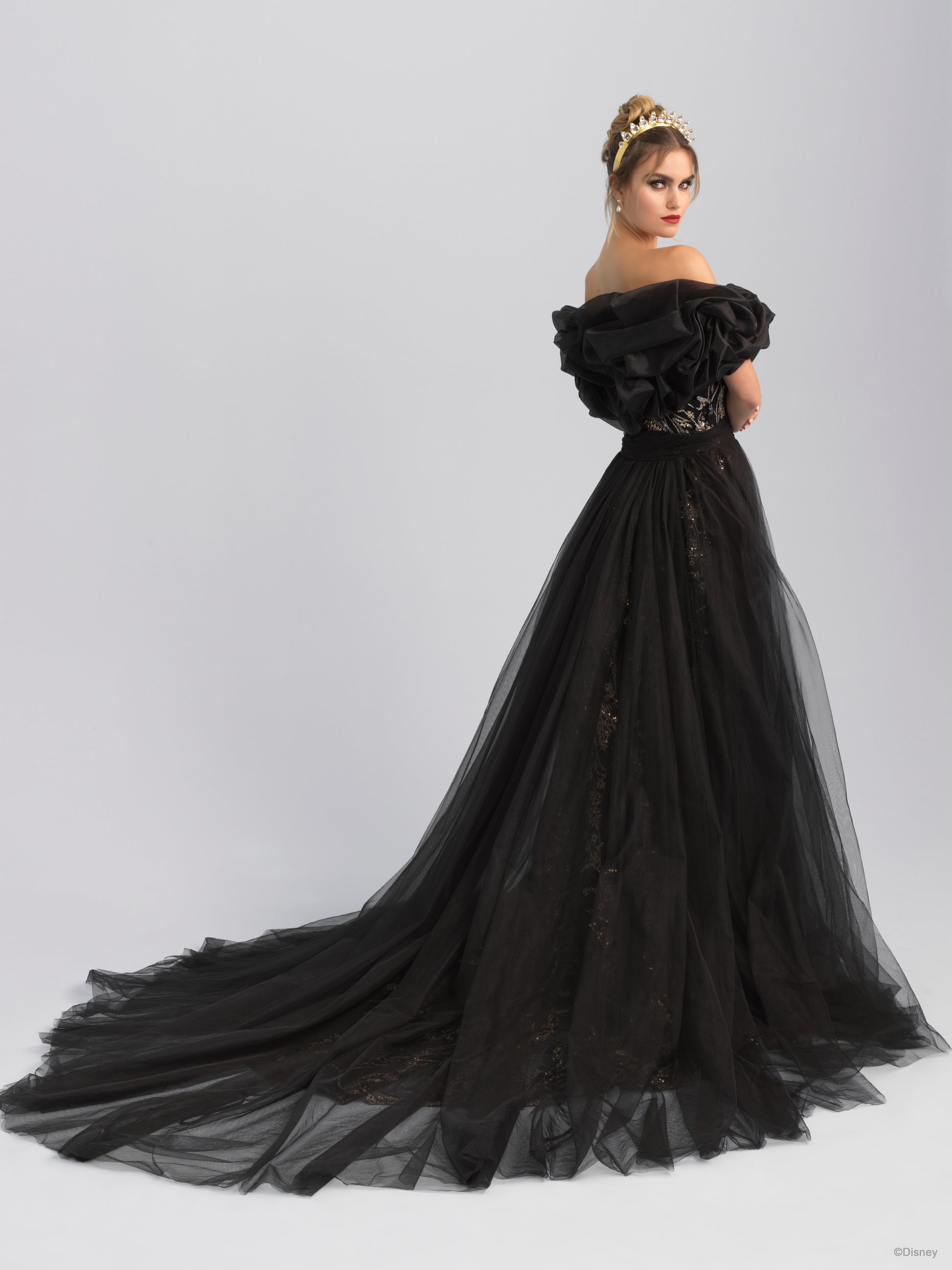 A ruffled, wraparound cape sleeve, inspired by the evil Queen herself.