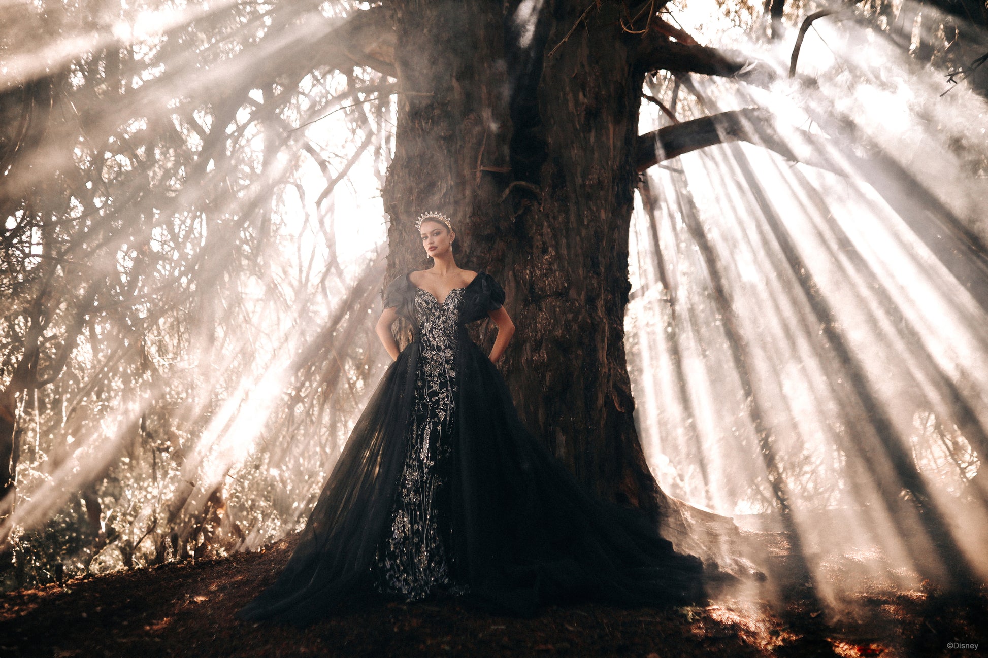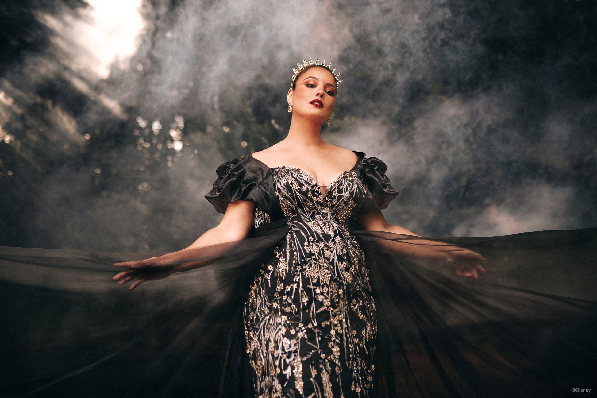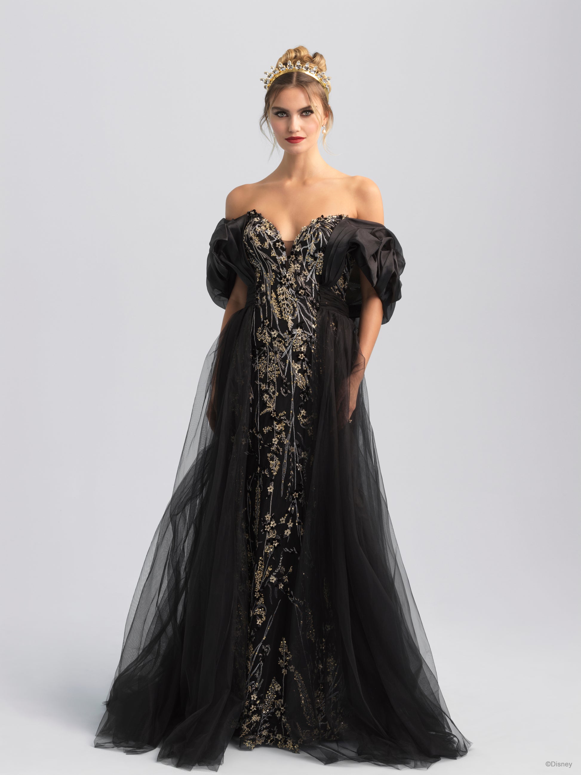 A ruffled, wraparound cape sleeve, inspired by the evil Queen herself.