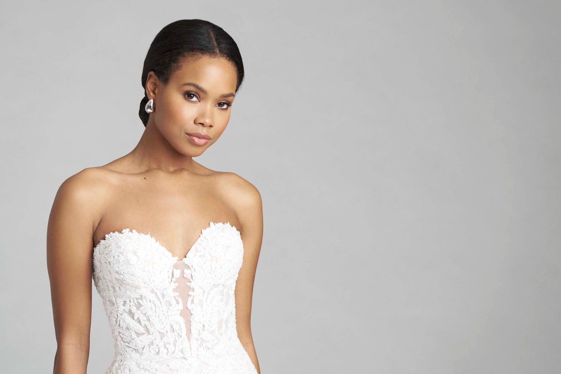 Prima di prenotare un appuntamento per la prova dell'abito da sposa o di ordinare il tuo vestito, è importante sapere che le tabelle delle taglie degli abiti da sposa variano in base al paese e al designer, e anche in base alla silhouette. Le tabelle delle taglie per i matrimoni spesso non seguono le misure standard degli abiti prêt-à-porter, quindi non allarmarti se misura una taglia diversa dalla tua solita taglia di vestito. Ti preghiamo di consultare un rivenditore autorizzato Allure Bridals prima di ordinare il tuo vestito per garantire la vestibilità perfetta per il giorno del tuo matrimonio.