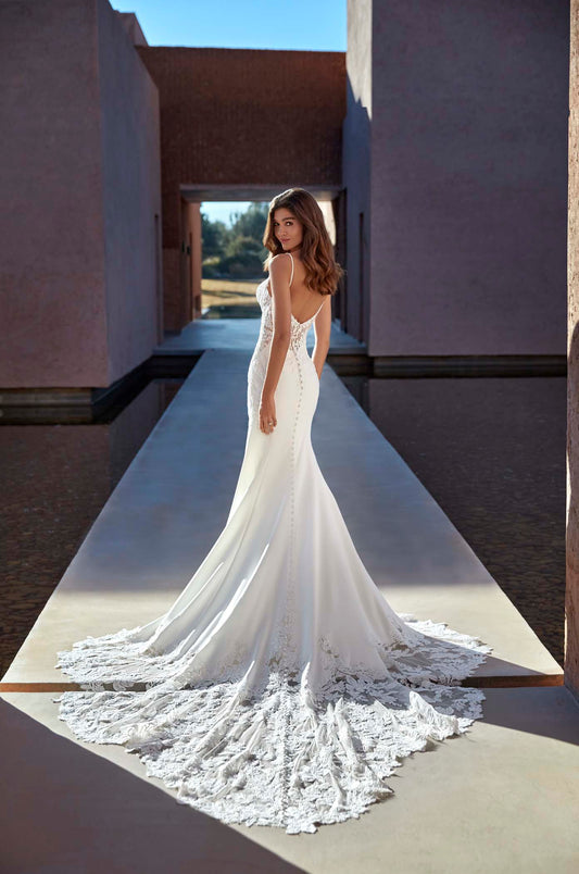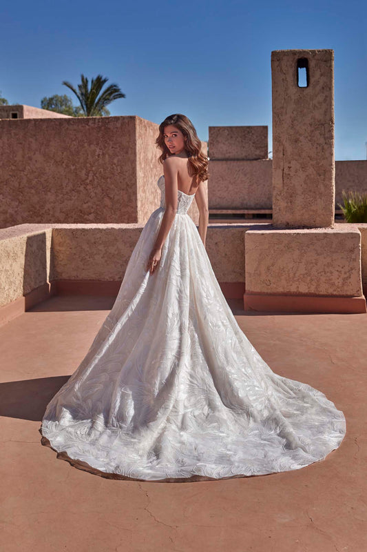 Born from the interplay of light and texture, the Madison James “Lustre” collection was captured in the golden glow of Marrakech, where desert landscapes meet the shimmer of hidden oases. This season brings shimmer to the forefront—sequin embroidery, sparkle tulle, and liquid textures mirror the play of light on water, creating gowns that seem to glow from within. Sculpted silhouettes, sheer corsetry, and modern necklines offer a confident balance of softness and structure. From clean, high-shine finishes to layered lace and textural tulle, every gown in the collection is designed to move with elegance and reflect the light—just like the bride wearing it.