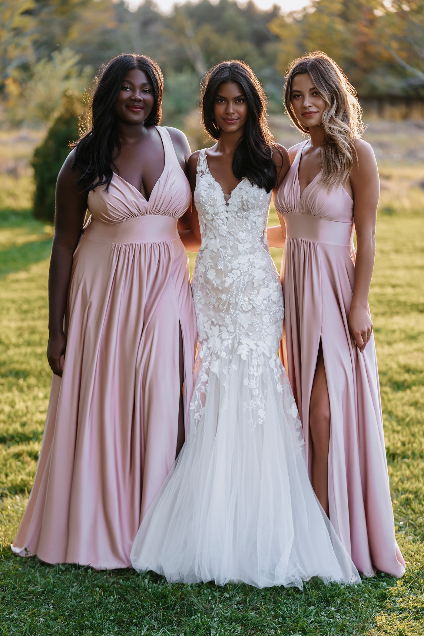Timeless, flirtatious, and versatile, the Allure Bridesmaids 1699 gown boasts gorgeous movement and a classy silhouette in the same masterful design. Silky stretch jersey ensures this glamorous A-line look is not only beautiful but ultra comfortable. It looks as good in an elegant chapel as it does on a sunny beach. No matter what theme you’re going for on your big day, the Allure Bridesmaids 1699 is a stunning choice for your bridal party. Read Less