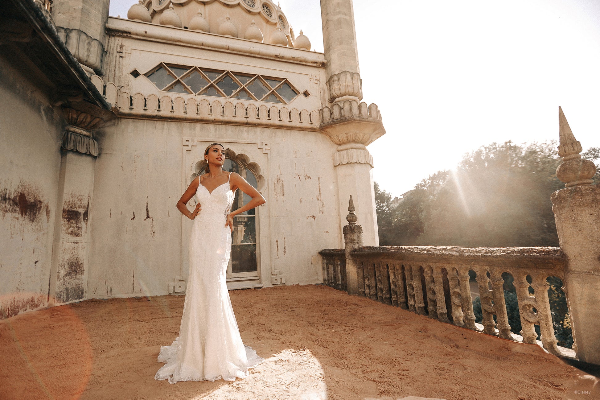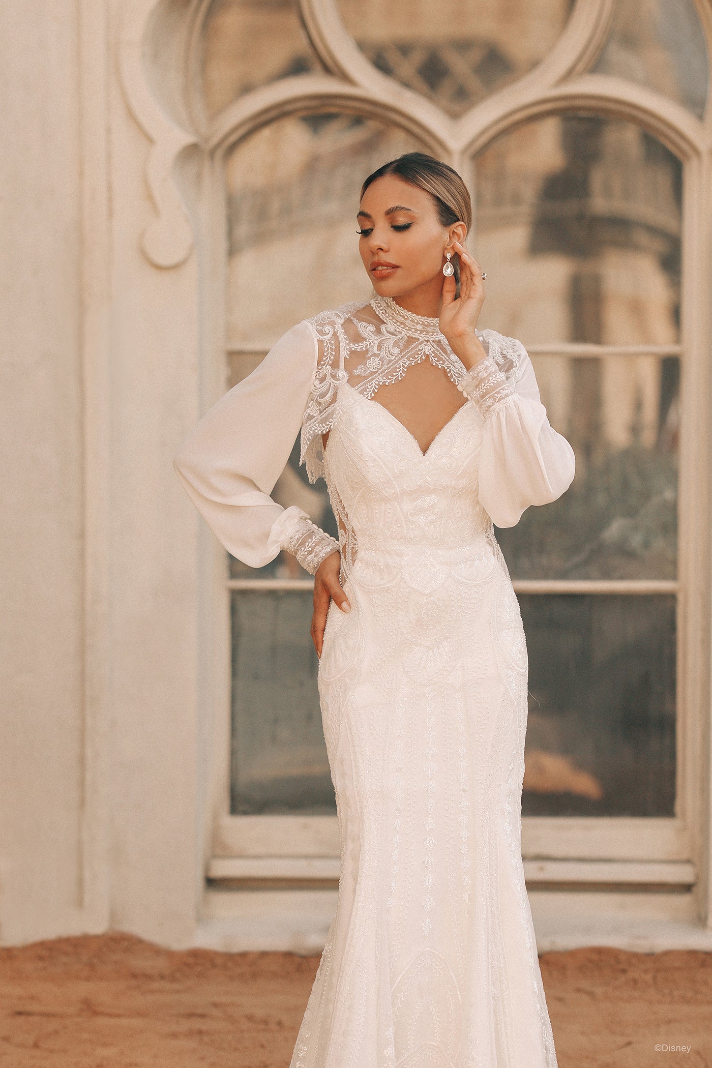 To honor the 30th anniversary of Aladdin, this Jasmine-inspired gown embodies the richness and intricacy of the palace and details seen throughout the film; iridescent sequins cover the embroidered lace seen throughout, while sheer illusion cutouts illuminate the detail of the lacework. A matching jacket finishes the look. This Disney Fairy Tale Weddings D324 gown is also available with jacket D324J sold separately. Shop both gown and jacket when you search for your local Disney Fairy Tale Weddings retailer today. Read Less
