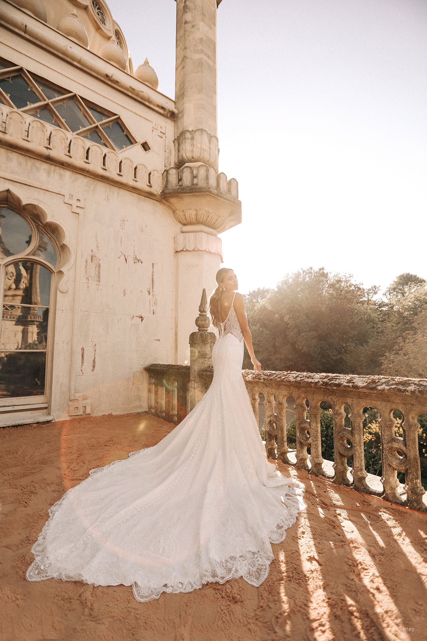 To honor the 30th anniversary of Aladdin, this Jasmine-inspired gown embodies the richness and intricacy of the palace and details seen throughout the film; iridescent sequins cover the embroidered lace seen throughout, while sheer illusion cutouts illuminate the detail of the lacework.... Read More