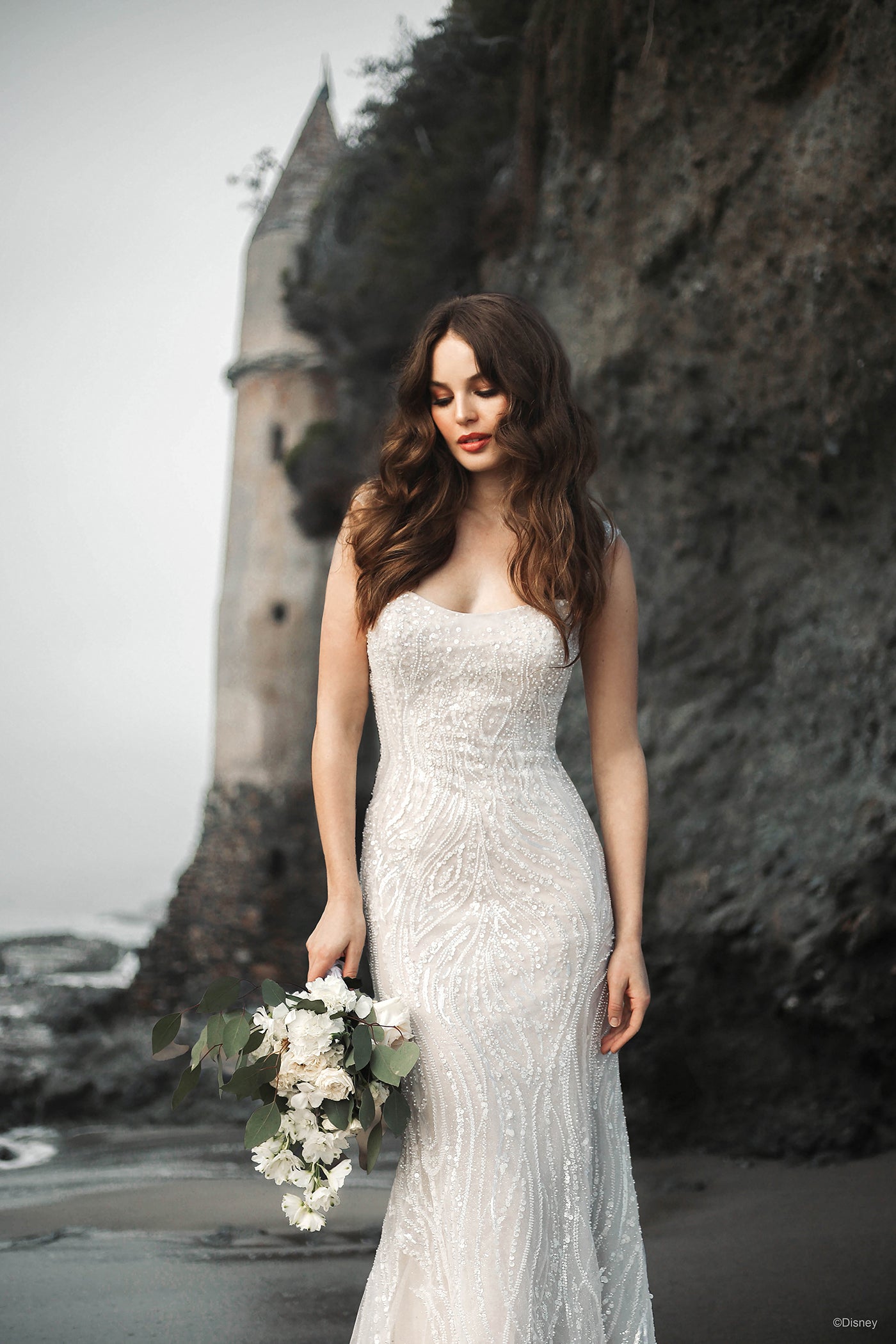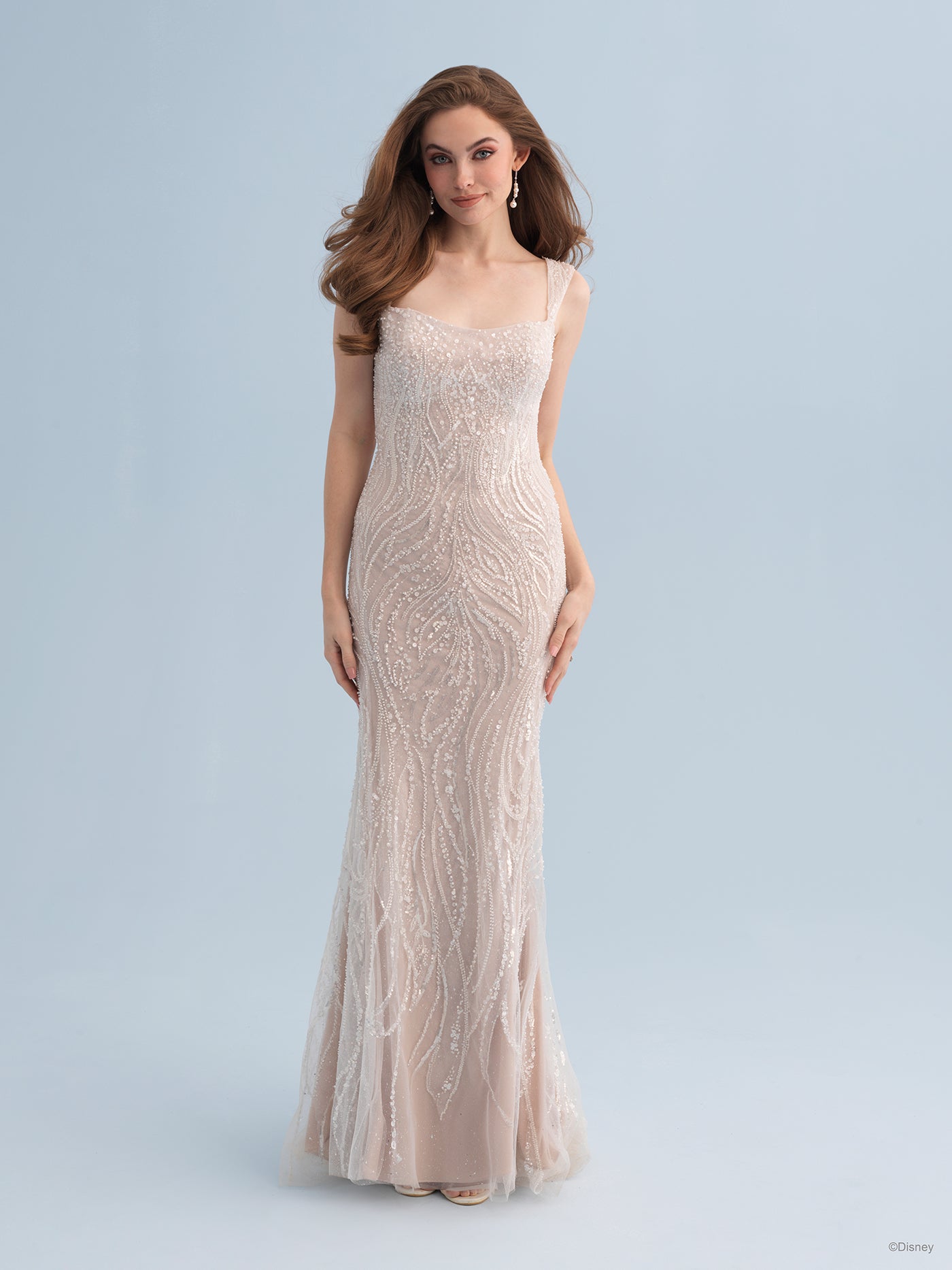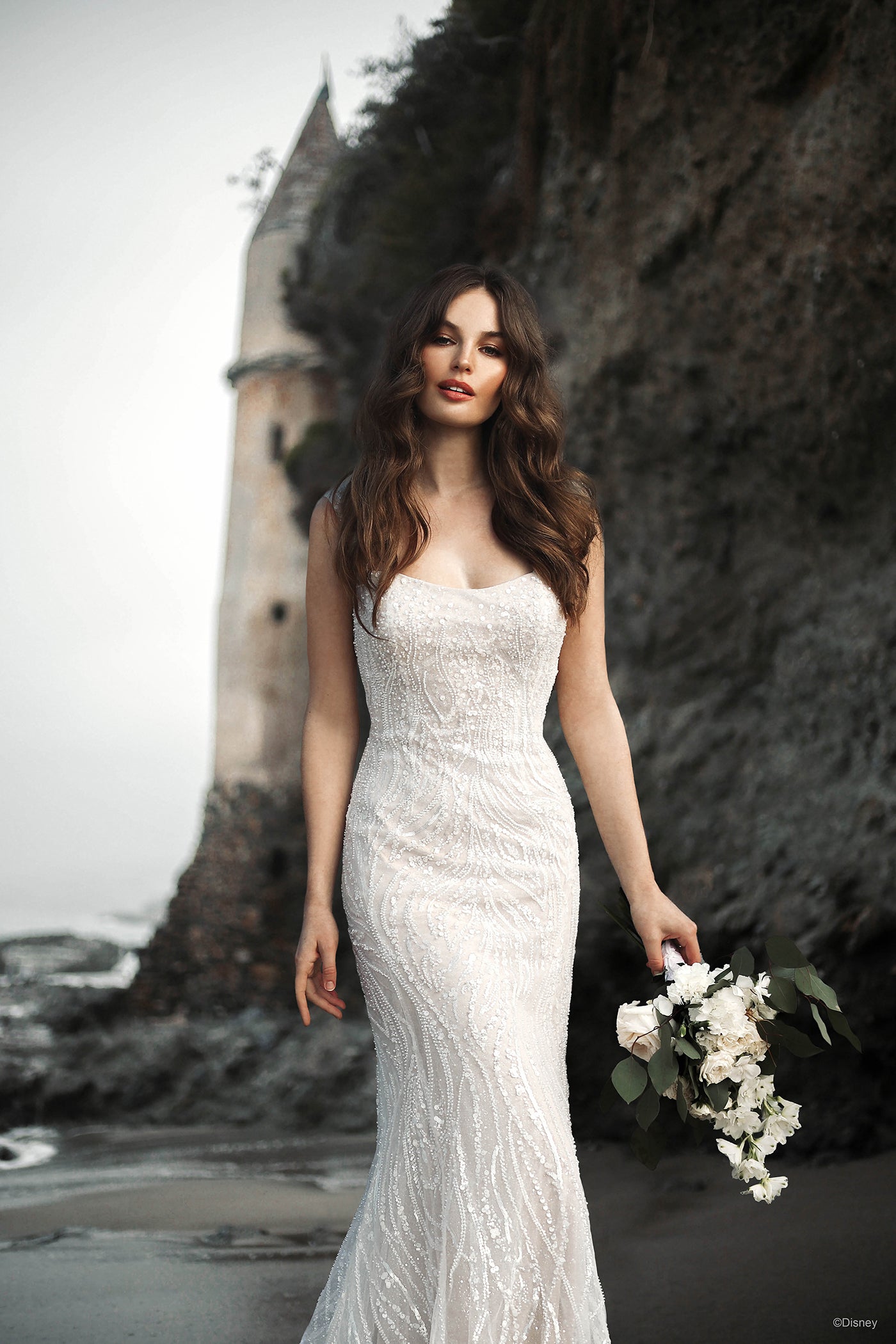 Make your wedding day complete with a gown inspired by a hero who followed her heart no matter the cost. Our D360 Ariel wedding dress is a gorgeous choice for the bride who takes her happily ever after into her own hands. Inspired by The Little Mermaid’s Ariel, this wedding dress features intricate, flowing sequin and pearl designs that evoke the beauty of the ocean waves. Ocean-like shimmer with sequins and pearled beading trail along the bodice and tulle skirt of the Ariel-inspired sheath gown, which is finished with a delicate, translucent bow at the back and features a modified sweetheart neckline and tapered straps. Find yours at an Allure Bridals retailer near you. Show with Veil DV23, sold separately. Read Less