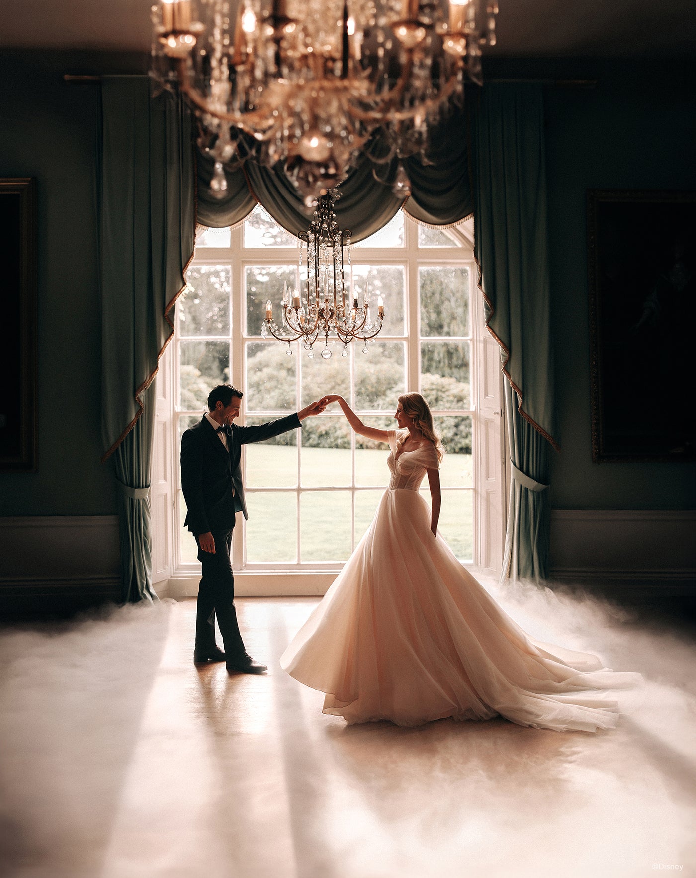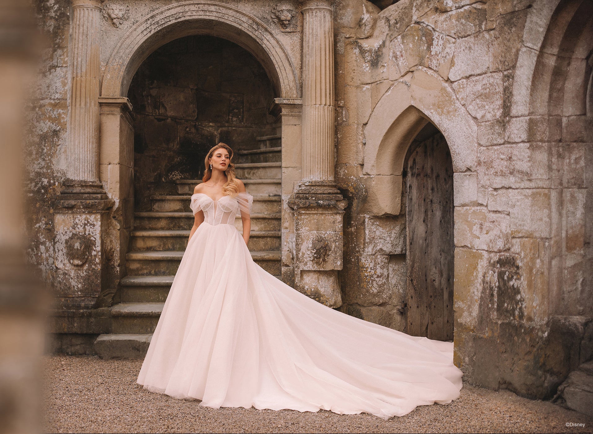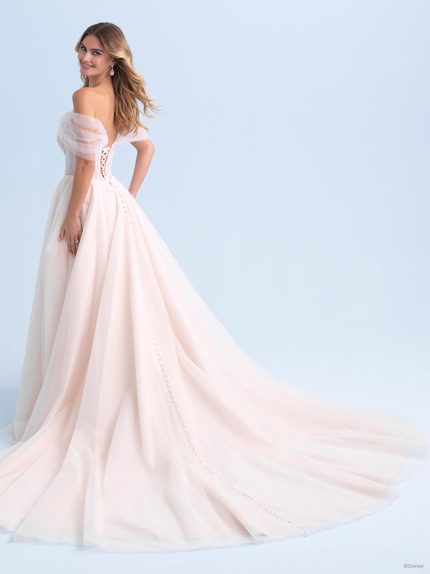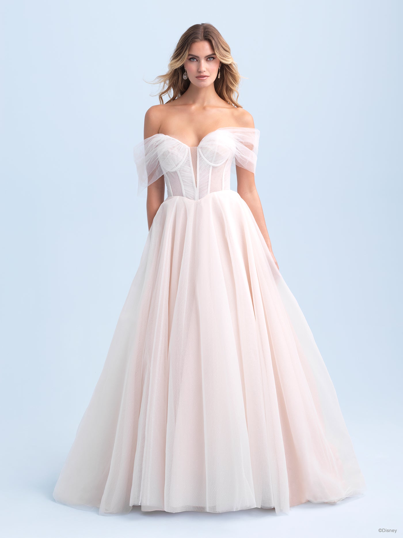 Cloudlike and ethereal, this Aurora-inspired off-shoulder gown is pulled straight from an enchanted dream. Pairing "Sleeping Beauty's" medieval woodland aesthetic with modern cottagecore femininity.
