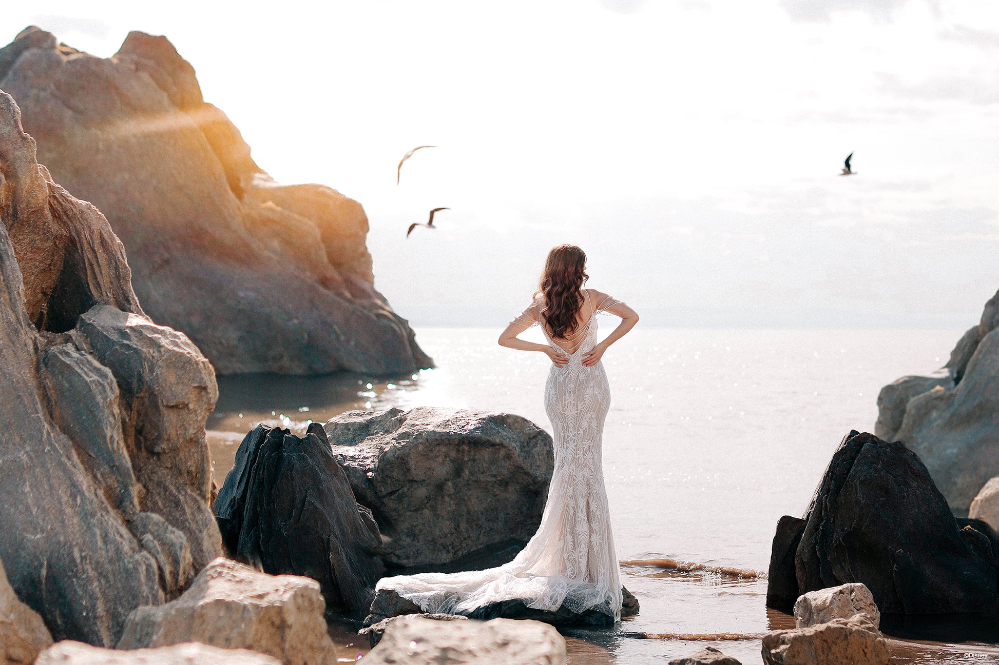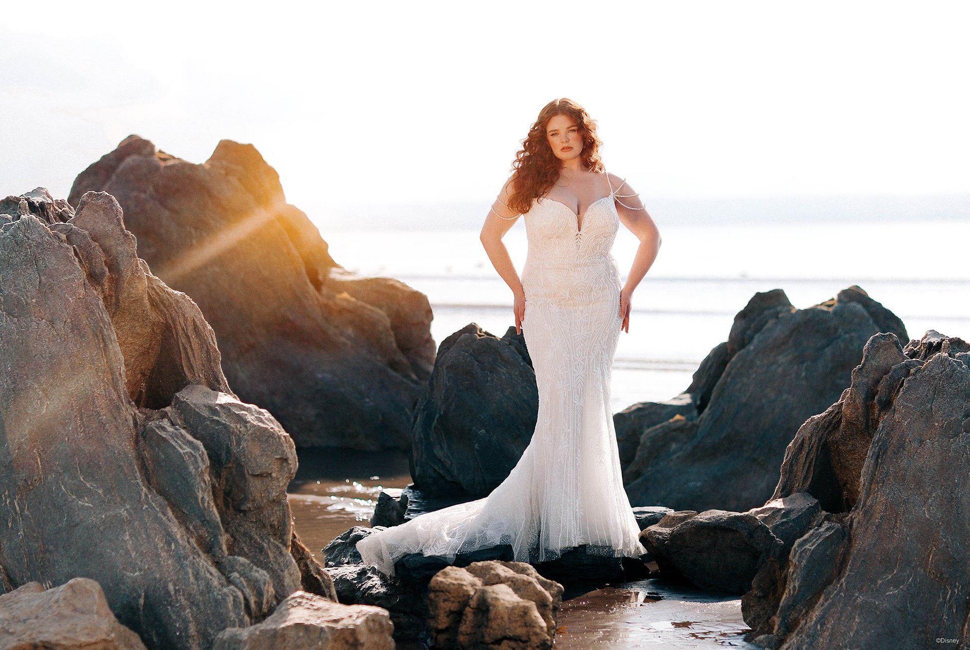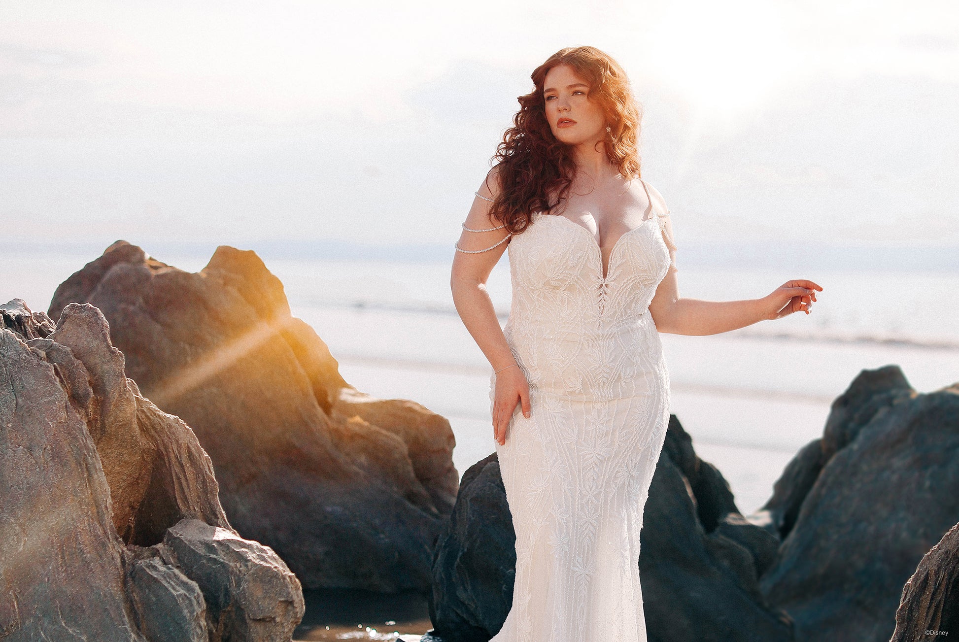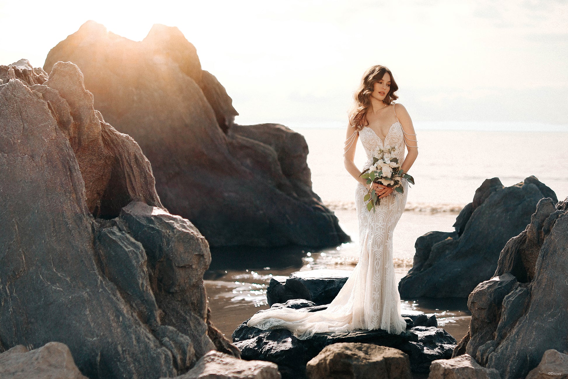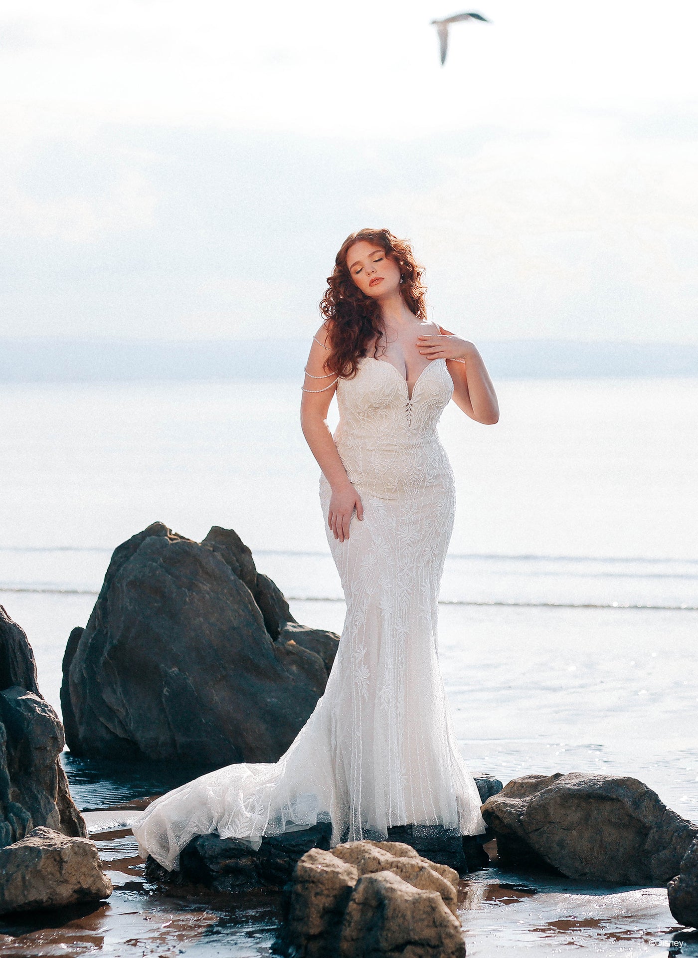 Beautiful, regal, and radiant, the DP350 Ariel dress sparkles like the morning sun illuminating the ocean waves. This Ariel Platinum gown is a beauty of a sheath silhouette with ocean-inspired pearlescent off-shoulder drape, accented by a sweetheart neckline and v-back.