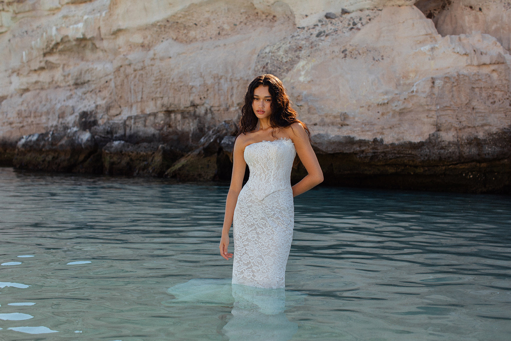 Designed as a seamless bridal duo, the Perla bodice combines timeless lace with contemporary elegance. A softly scooped neckline is delicately trimmed with eyelash lace, while the basque waist flows effortlessly into the coordinating Perla skirt. Perfect for brides seeking a cohesive, sophisticated wedding day look, this ensemble blends classic romance with modern refinement. Read Less