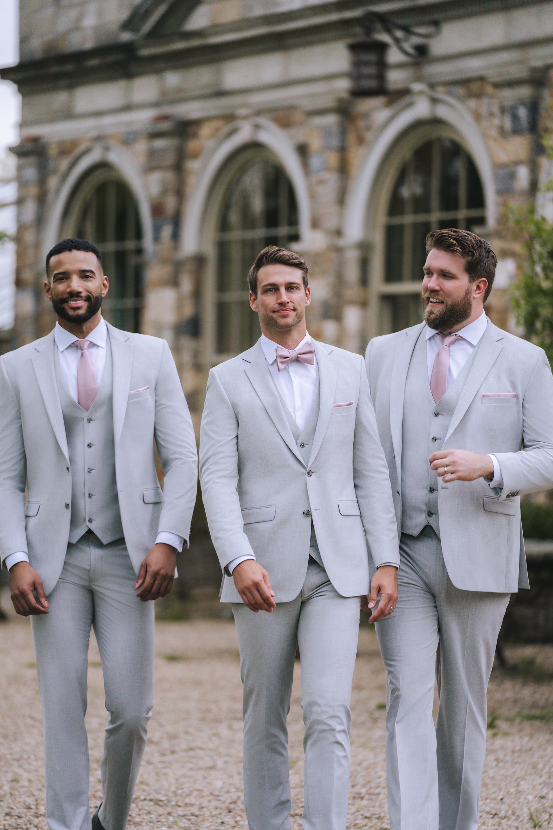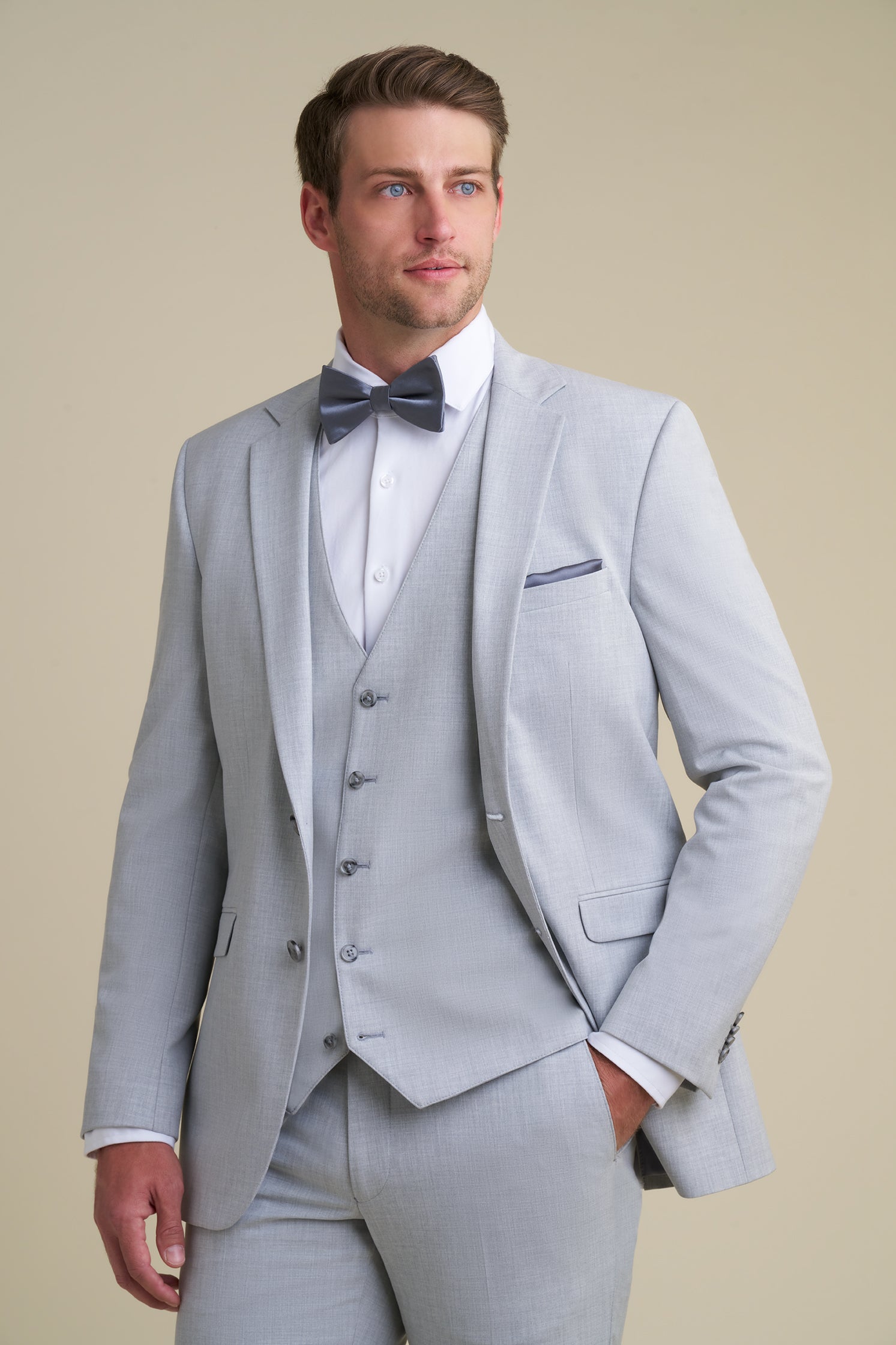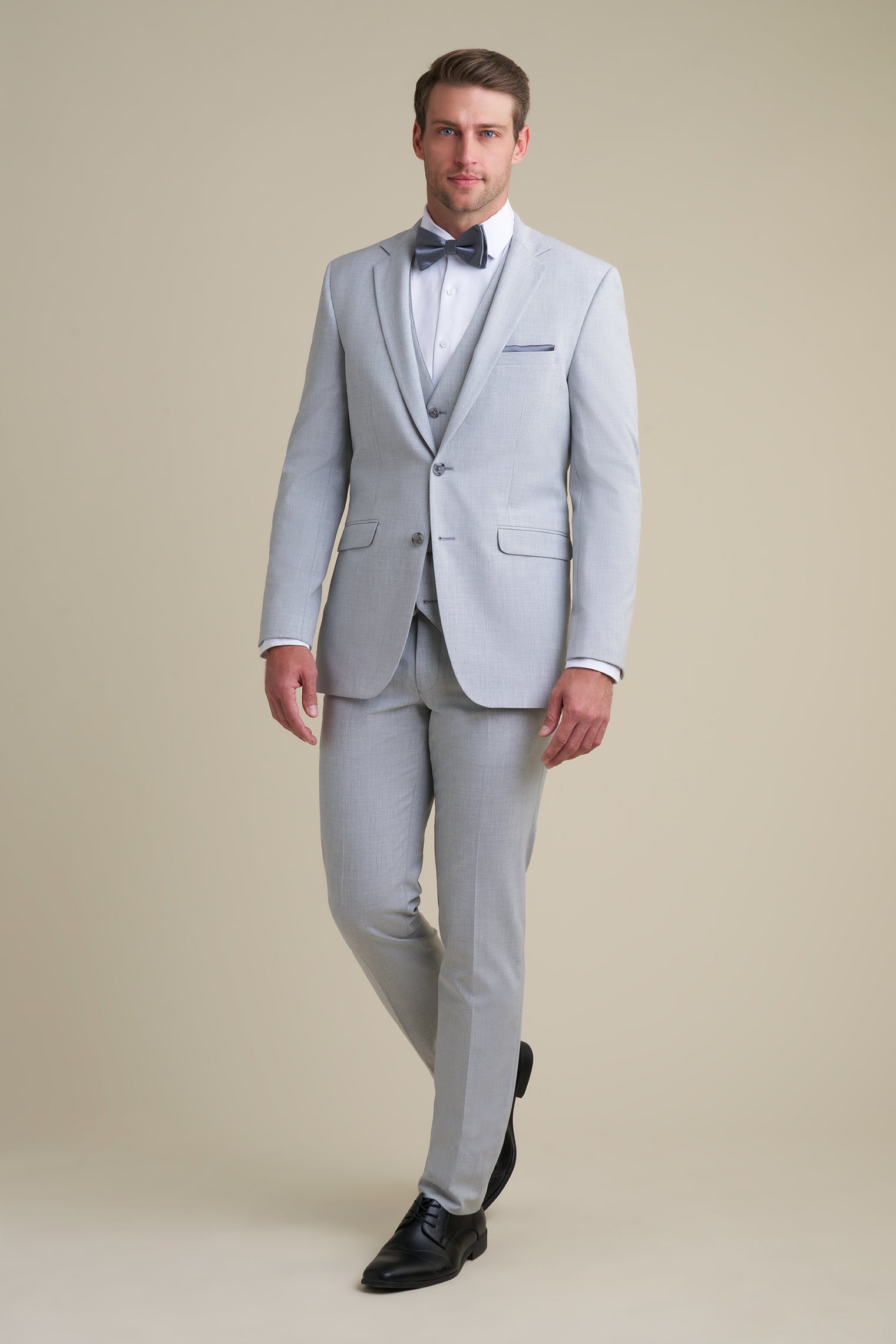 Light gray is a popular suit color choice for modern and fashionable grooms. It exudes a sense of sophistication and elegance while still maintaining a contemporary edge. At Allure Bridals, we designed the light gray notch lapel suit in two cut options—modern and slim fit—so every gentleman can find his preferred option. Get a suit that's timeless and that you can re-wear to countless formal events. Also available in Big and Tall or Youth sizes. Read Less