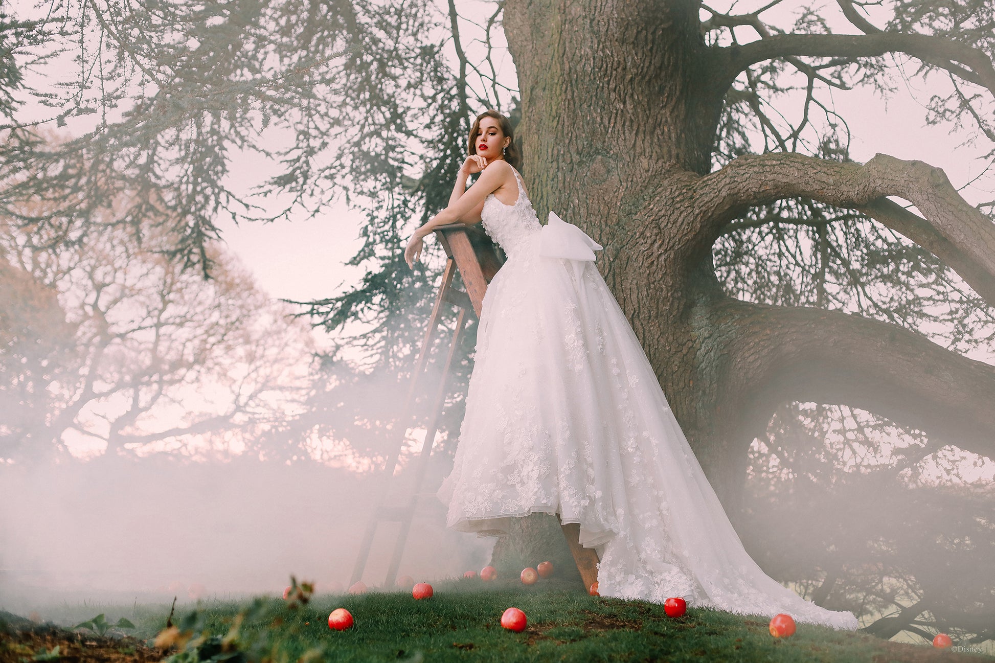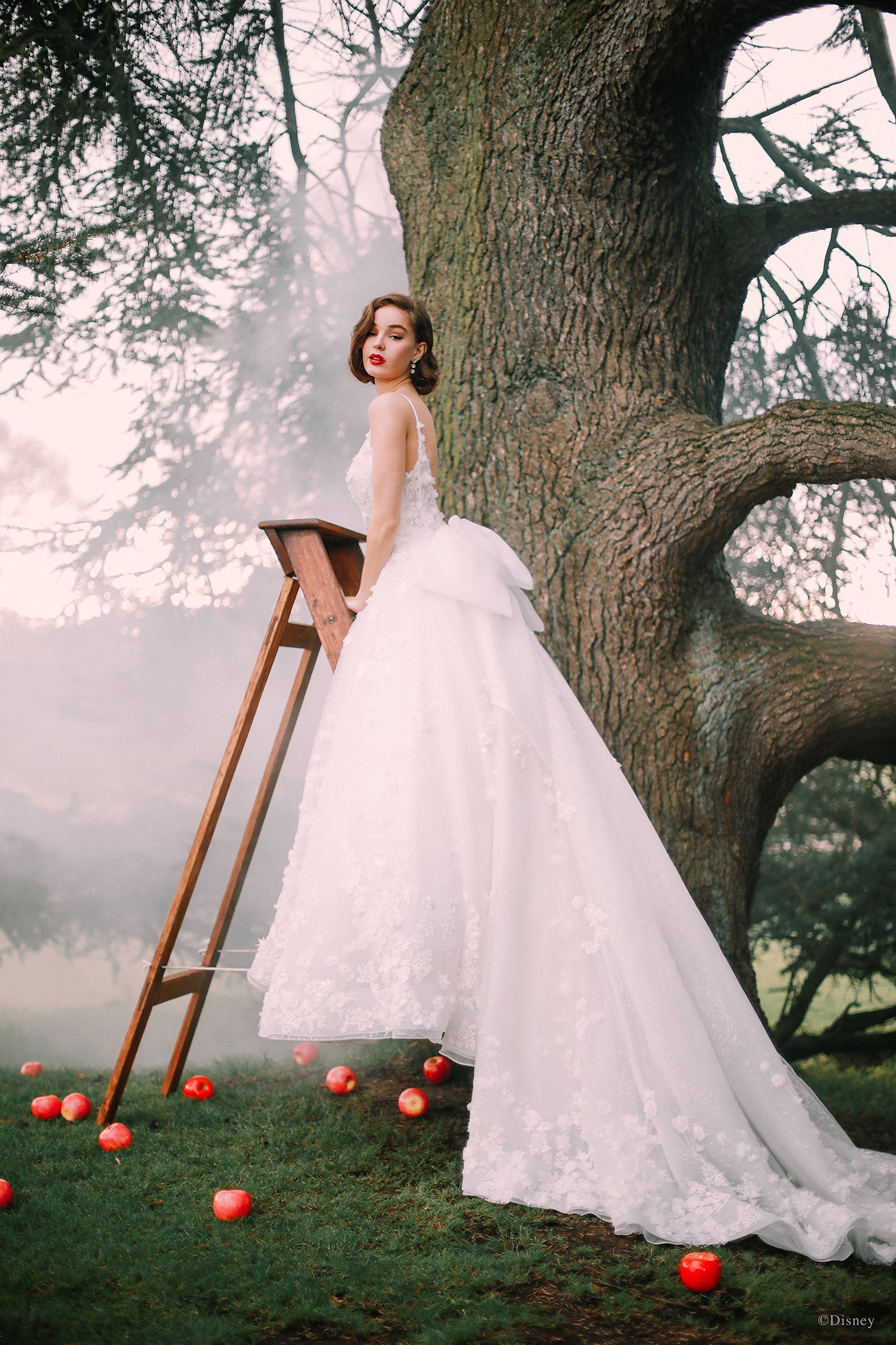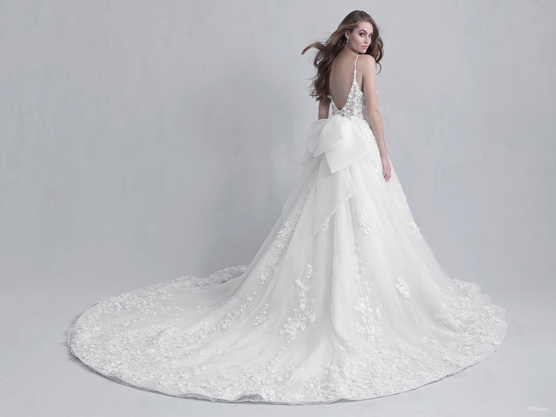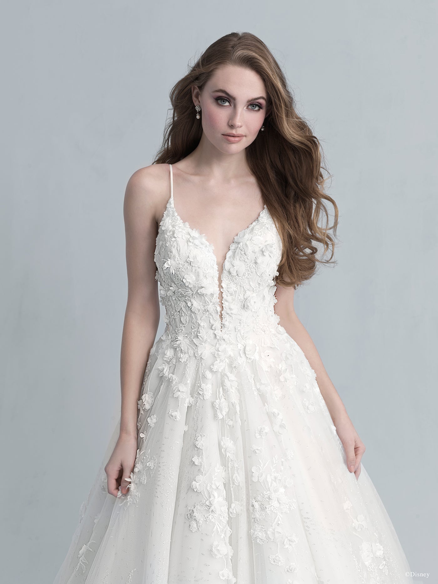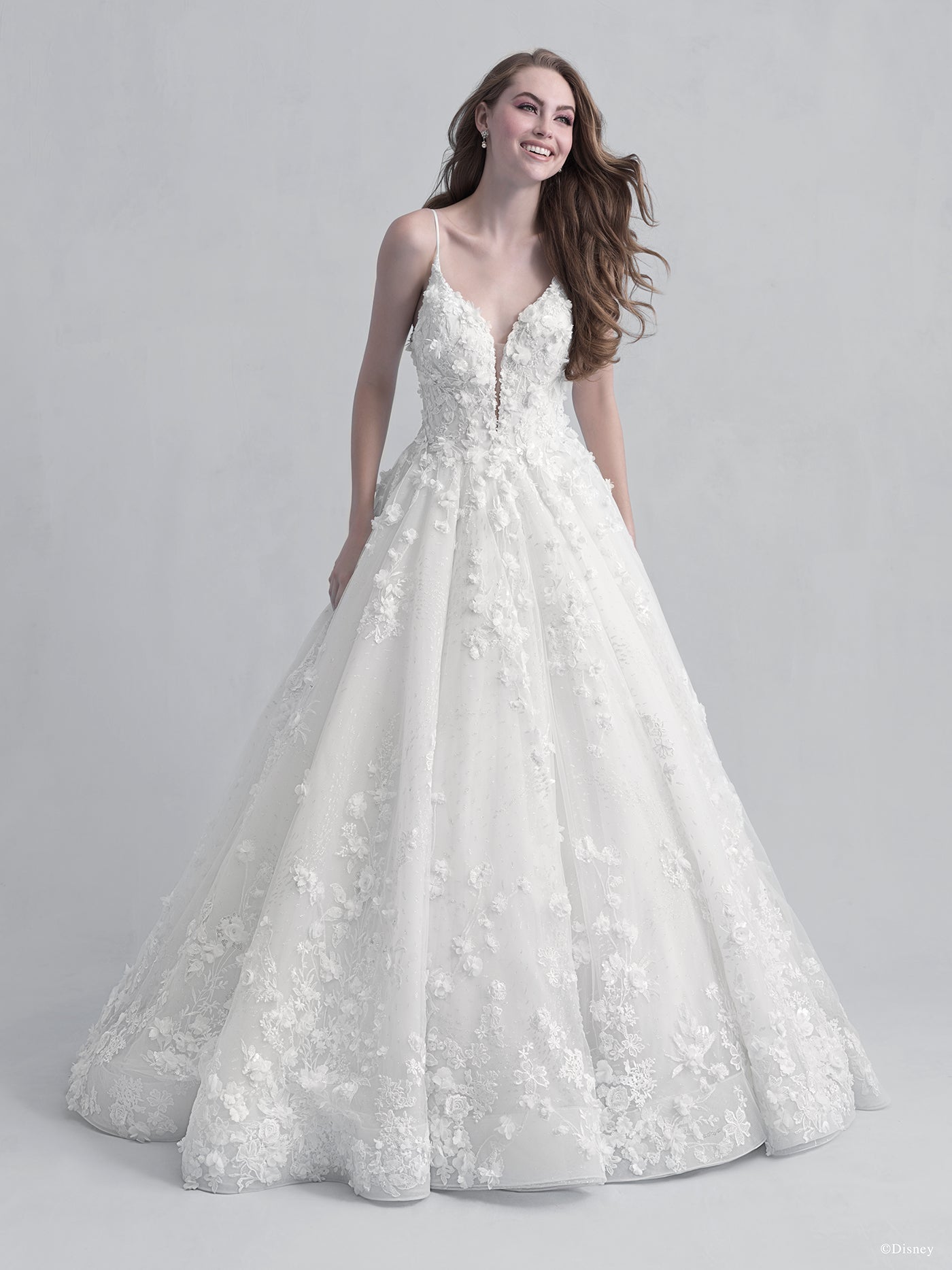 Capturing Snow White's grace and beauty, this Platinum ballgown features embroidered lace, seed beads, crystals and three-dimensional 'apple blossoms' scattered across sparkle tulle. A sweetheart neckline and organza bow is the finishing touch to this romantic, timeless gown. Shown with... Read More